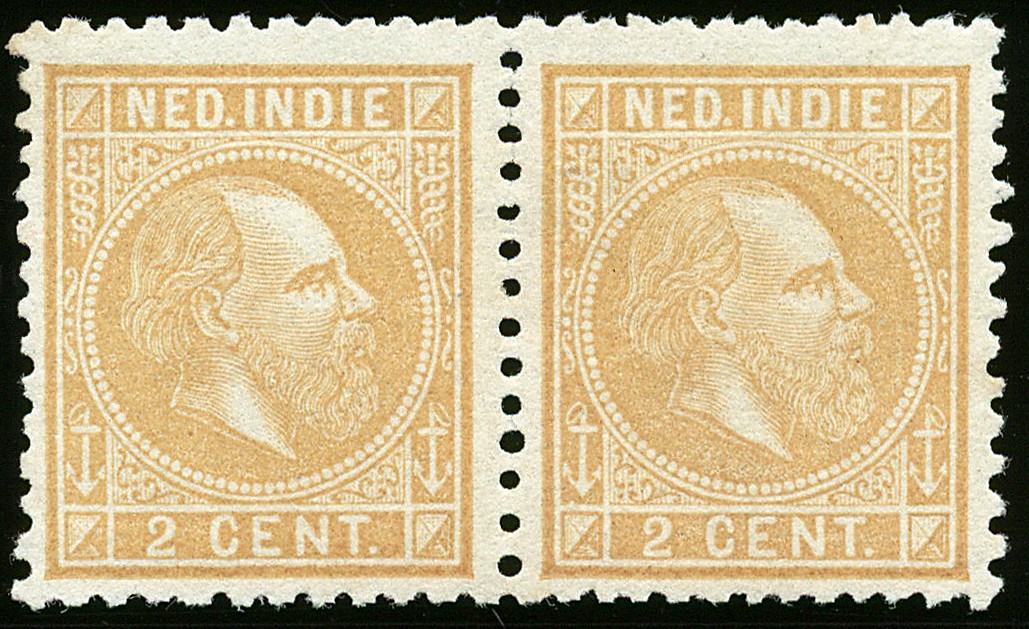 6Fb + 6Gb, 2 cent strogeel gecombineerde tanding 11½ x 12, 12½ x 12, ongebruikt zonder gom (zoals uitgegeven), prachtpaar met cert. NKD (2017) € 1250