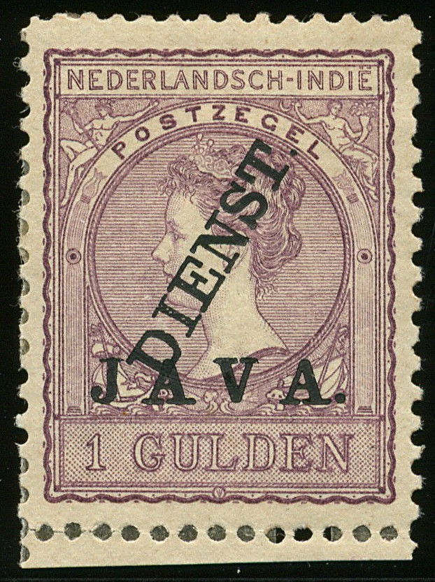 PC.54a, 1 Gulden Veth met proefoverdrukken uit 1907, JAVA. horizontaal+DIENST. diagonaal, gegomd, prachtex. en hoogst zelden aangeboden! Fl. 250++