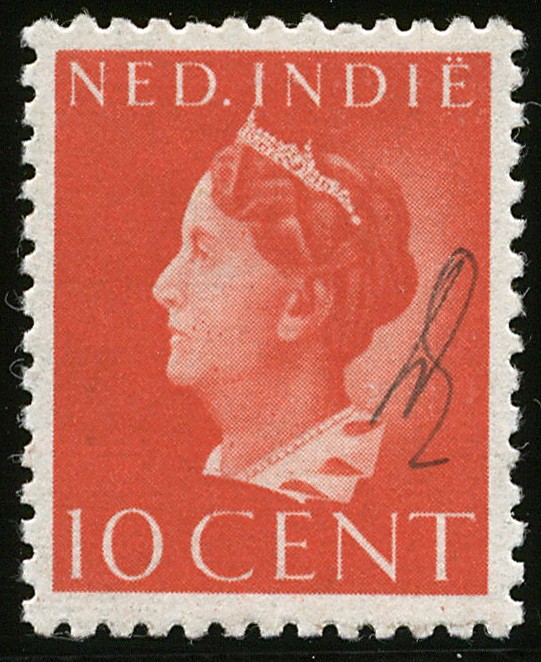 Sumatra. Palembang. Initial of postmaster Dahlan in bluish black ink, used locally in Tandjong Radja, on 10 cent Van Konijnenburg no. 515z-43bk, unused. € 250