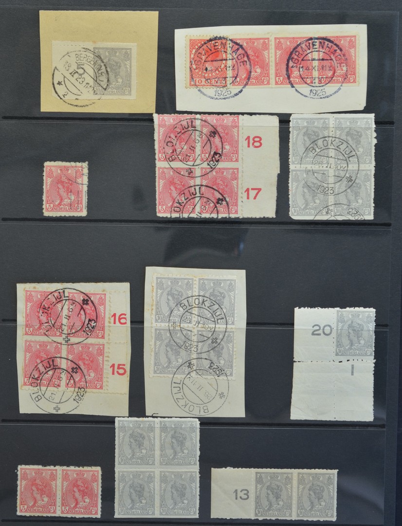 82/83, 5 en 10 cent o/* particulier doorgestoken los of op briefstukjes w.o. met stempels van Bergen (N.H.), Blokzijl en ´sGravenhage, op insteekkaart