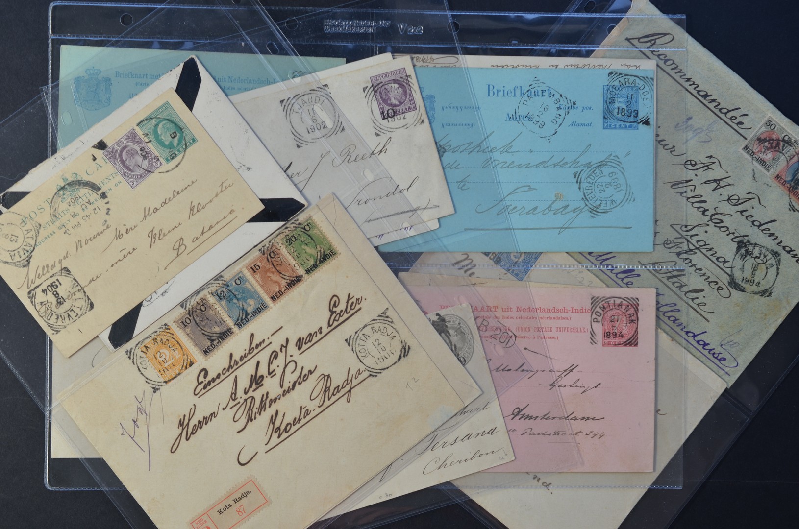 NED.- INDIË POSTHISTORIE, vierkantstempels op 19 poststukken (diverse aangetekend) w.o. Baros, Edi, Indrapoera, Lho Seumawe en Tapan (veldpost)