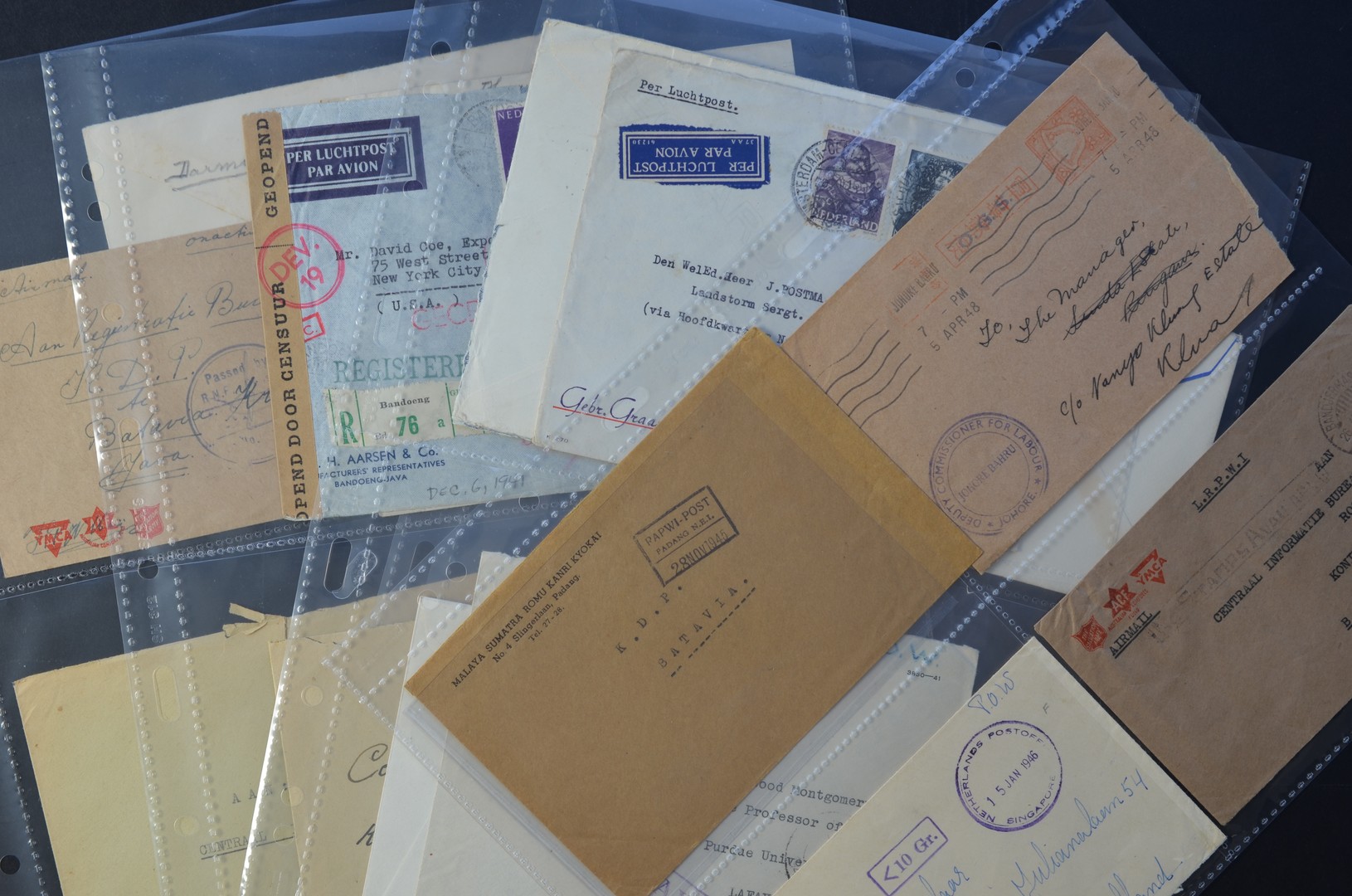 NED.- INDIË POSTHISTORIE, diverse poststukken 1941 (3x) en 1945-48 (17x waarvan 4x incoming mail), incl. ex-krijgsgevangenen, noodstempels, gefrankeerd met postzegels, no stamps available, RAPWI, AMACAB, censuur, etc.
