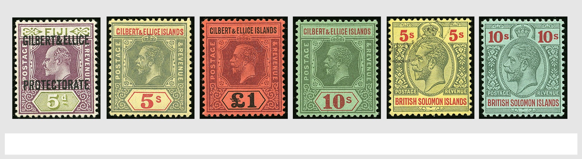 ENGELSE KOLONIËN, Solomon Islands en Gilbert en Ellice 1907-1935, vrijwel geheel ongebruikte verz. met Gilbert en Ellice S.G.1/24 en 35, Solomon S.G.37