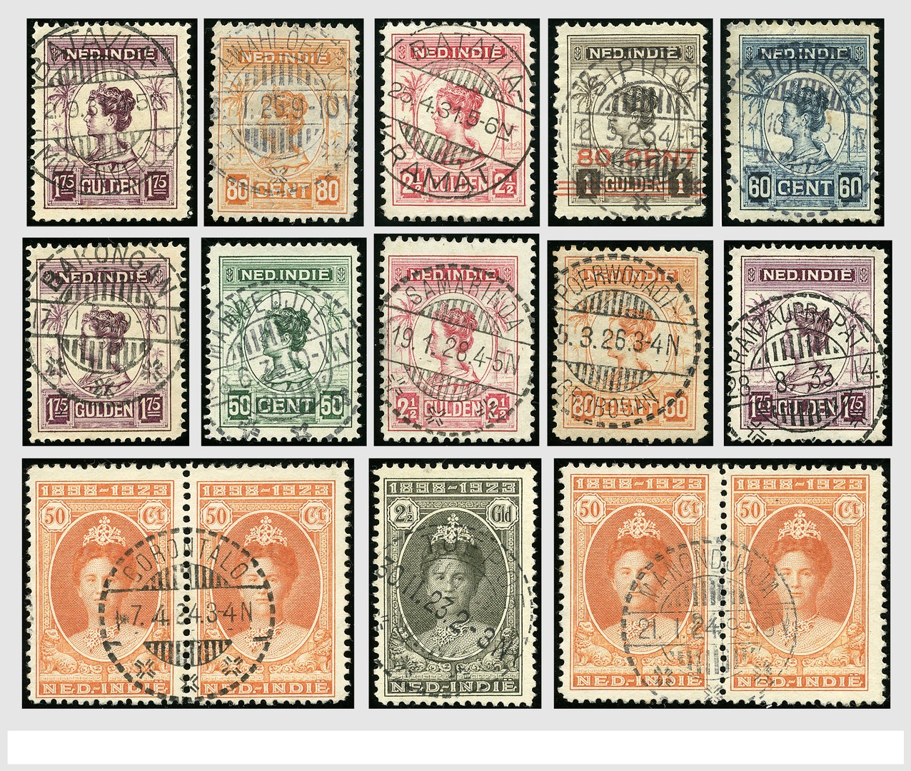 NED.- INDIË POSTHISTORIE, vrij uitgebreide collectie meest vooroorlogse langebalkstempels 1917-42 van A t/m W op losse zegels en zegels op knipsels, keurig gerangschikt op alfabetische volgorde, met veel volledige afstempelingen waarbij ook van kleinere bijpost- en hulppostkantoren, ook diverse typen, in 3 Leuchtturm-insteekboeken. Prachtcollectie om verder uit te bouwen!