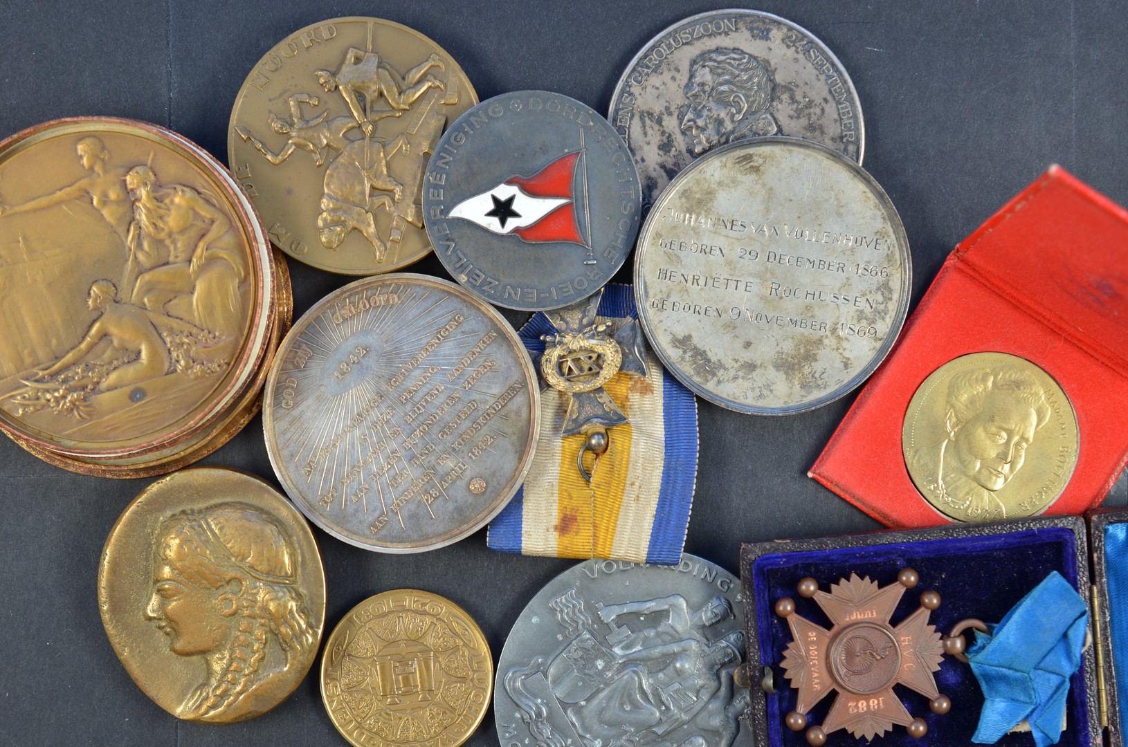 NEDERLAND, kaveltje met diverse penningen en Onderscheidingen waarbij zilver