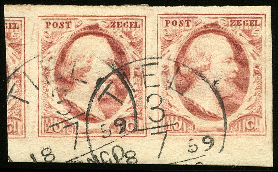 2h-Pl.V-99/100. Zeer breed gerand onderrand (hoek) paar met groot deel buurzegel, waarop scherpe afst. Tiel C