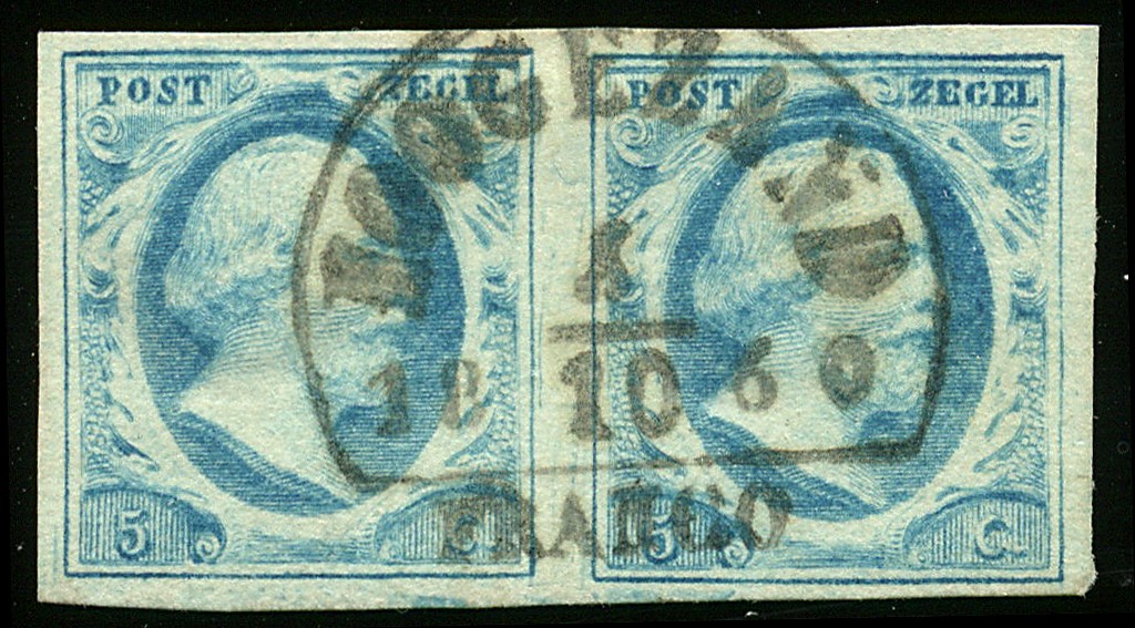 HOOGEZAND B (EY.175) op 5 cent nr. 1n-Pl.IV-98/99. Prachtpaar met centrale en volledige afst.