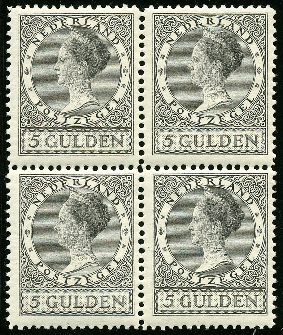 163A/65A, Koningin Wilhelmina 1, 2½ en 5 Gulden, Lt.12½ in postfrisse prachtblokken van vier € 2600