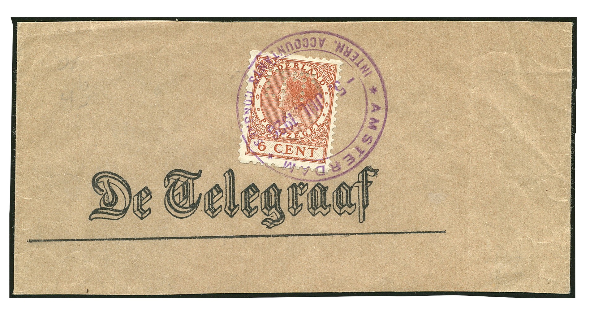 R7, krantenbandje van 'de Telegraaf' (perforatie DT op Roltanding nr.7), 5 juli 1926 met het stempel Intern. Accountants Congres-Amsterdam