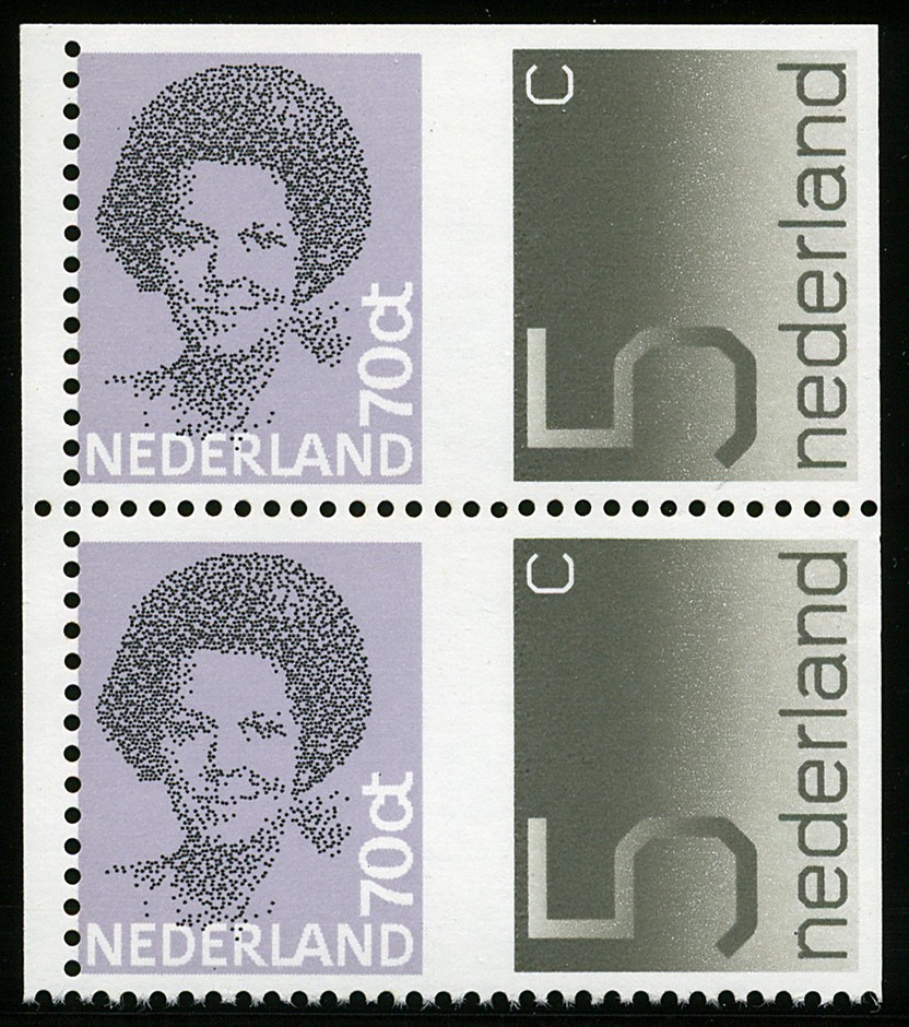 Combinatie afkomstig uit PB27, 2 x 70 en 2 x 5 cent met varieteit: tussen de zegels ongeperforeerd, postfris prachtex.