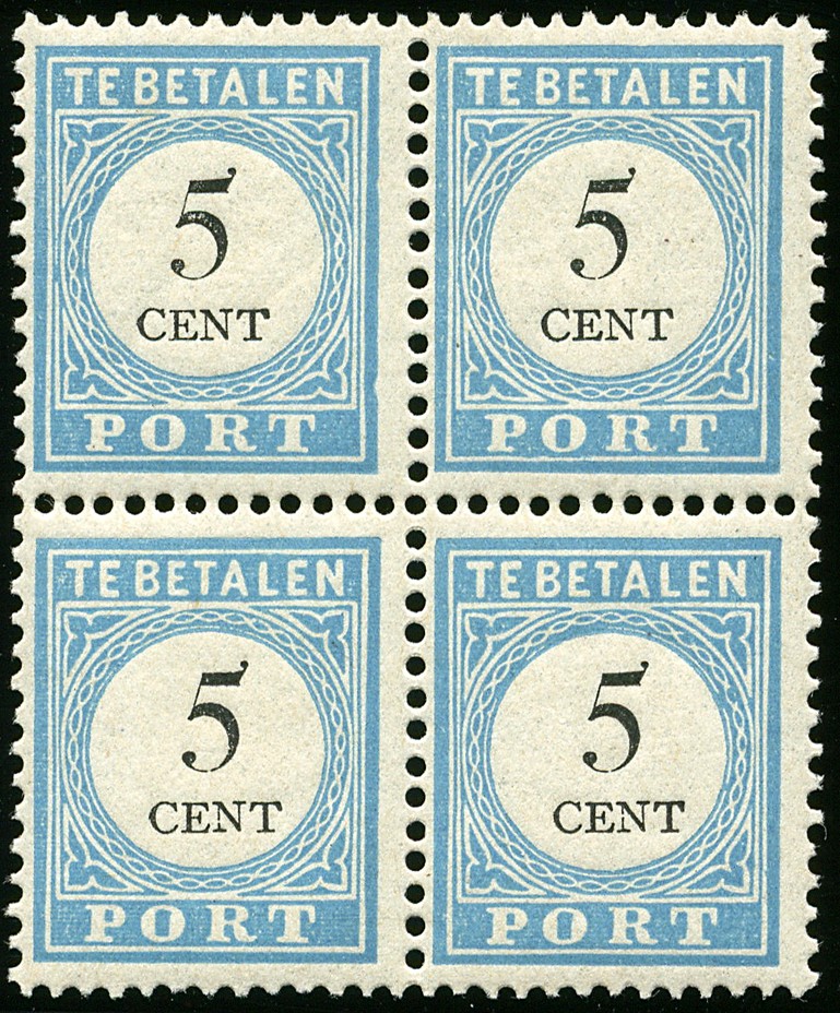 P6BIII, 5 cent lichtblauw, Kt.12½ x 12, in luxe postfris blok van vier met cert. NVPH (2008) € 4000