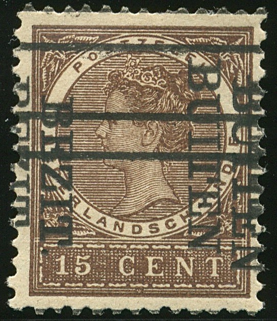 90fab, 15 cent met opdrukvariëiteit ´Dubbele opdruk met strepen dubbel´, ongebruikt prachtex. Keur ´Ned. Bond´. Geen notering voor ongebruikt