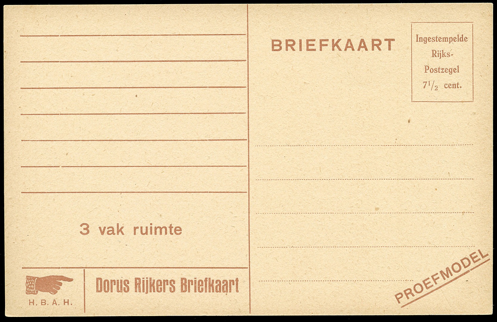 Particulier bedrukte bk. Dorus Rijkers proefmodel DR ´3 vak ruimte´ onder. Prachtkaart
