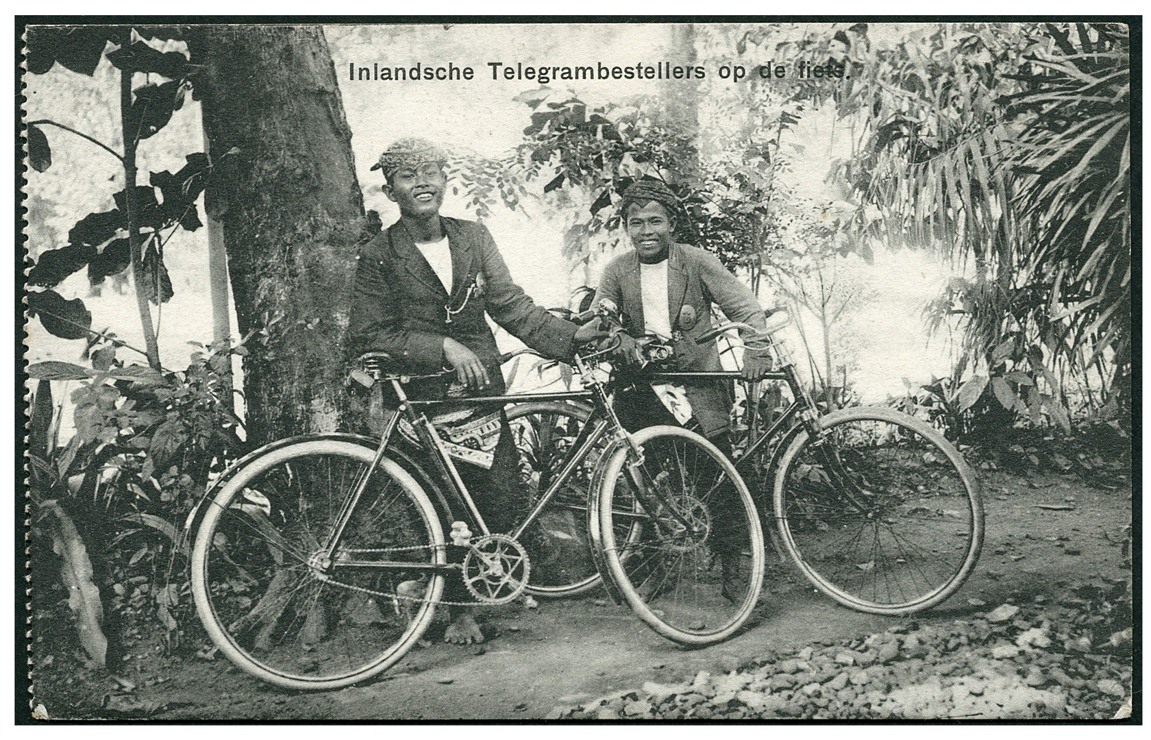 Prentbk. met afb. van ´Inlandsche Telegrambestellers op de fiets´ van Semarang 18-11-1919 naar Terneuzen