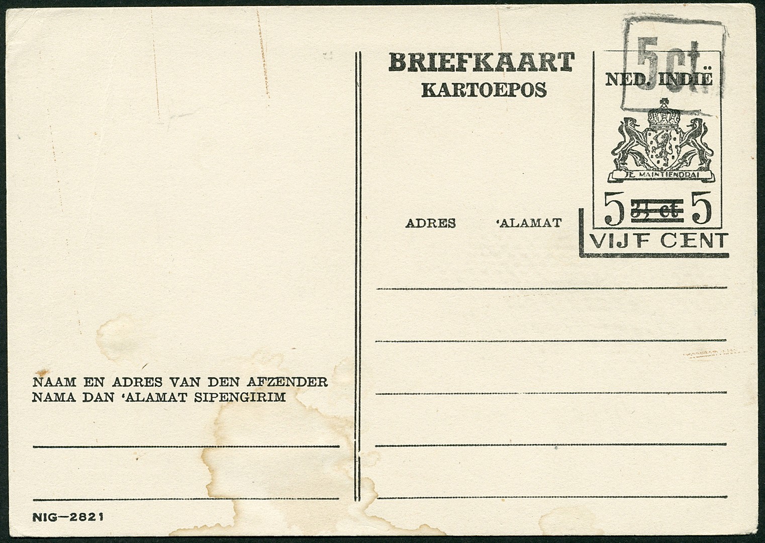 Bk. G76b-z-1 (vochtvlek) met een curieuze opdruk ´5ct.´ in kader, volgens Bulterman misschien een proef. Door ons nog niet eerder gezien