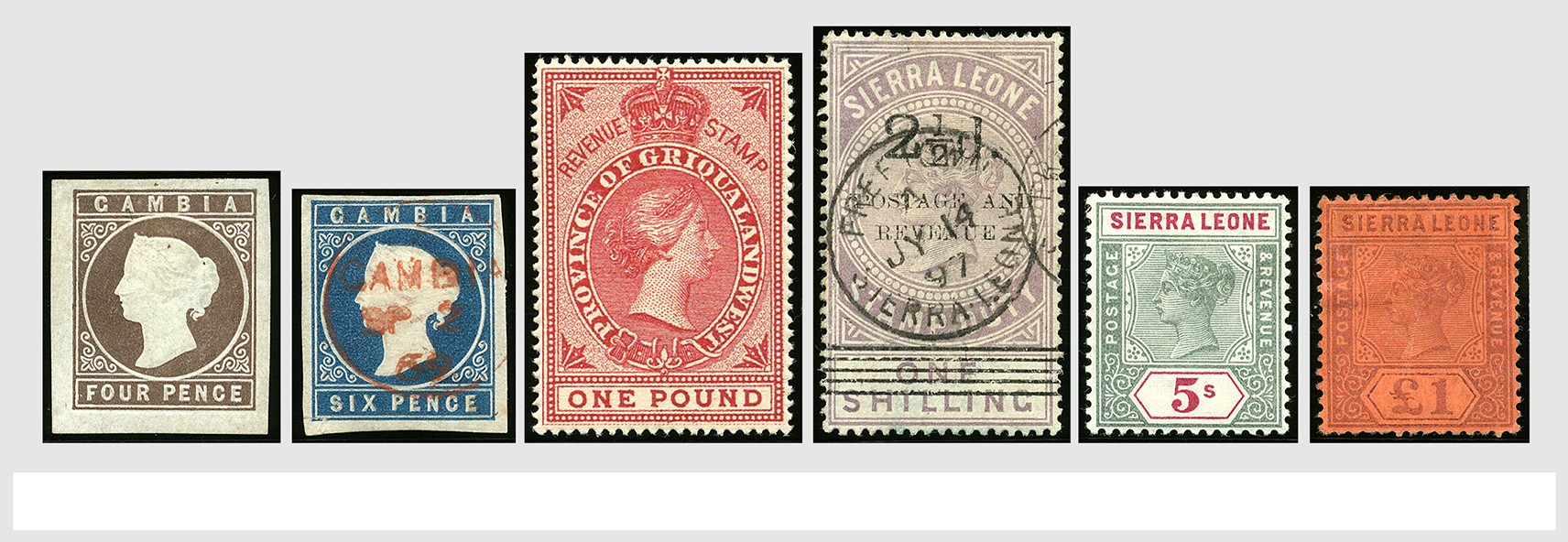 ENGELSE KOLONIËN, Sierra Leone, Gambia, Gold Coast 1861-1898, o/* verzameling op albumbladen met o.a. Gambia S.G.2/3, 19A