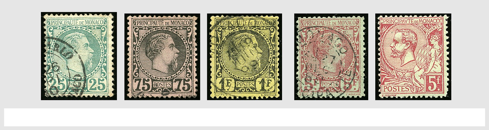 MONACO 1885-1901, o/* verzameling op albumblad met o.a. Mi.1/10