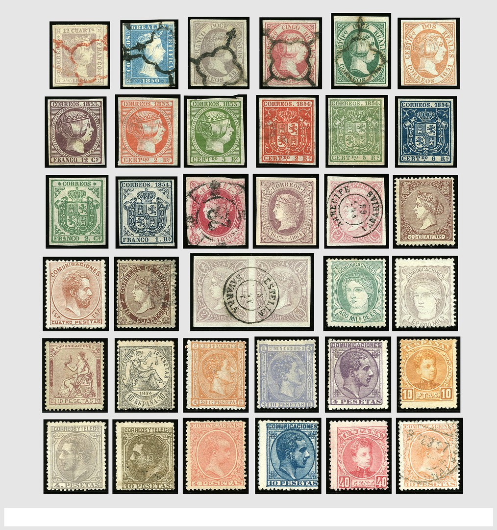 SPANJE 1851-1901, o/(*)/*, uitgebreide en vrijwel complete verzameling op albumbladen, waarbij enkele falsificaties, proeven, reprints, etc., tevens enkel mooie eenheden en een zestal certificaten. Een prachtige verzameling, zelden zo compleet aangeboden