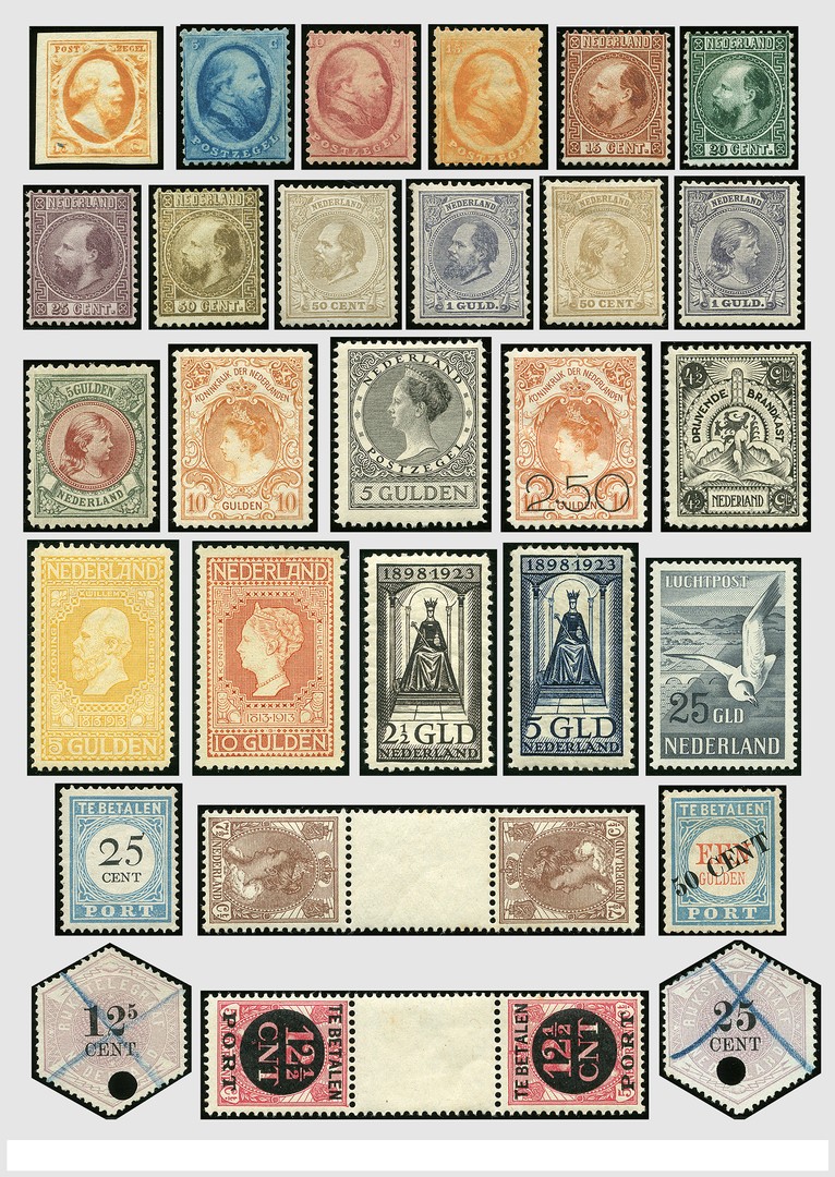 1852-1959, o/(*)/*/**, vrijwel geheel ongebruikte resp. postfrisse verzameling in Leuchtturm album met veel goed materiaal o.a. 1/3 (*), 4/6 *, 7/12 (*), 45/48, 49, 61 b/c, 77/80, 90/101, 104/05, 130/31, Veth met en zonder watermerk, ook leuk Back of the Book, LP.12/13, Port cpl. incl. 67a/68b, Ineternering 1/2, Dienst 1/8, Postbewijs 1/7 gebruikt, Brandkast 1/7, Telegram cpl. gebruikt. Ondanks enkele kleine kwaliteitsbemerkingen een pracht object met aanzienlijke cataloguswaarde!