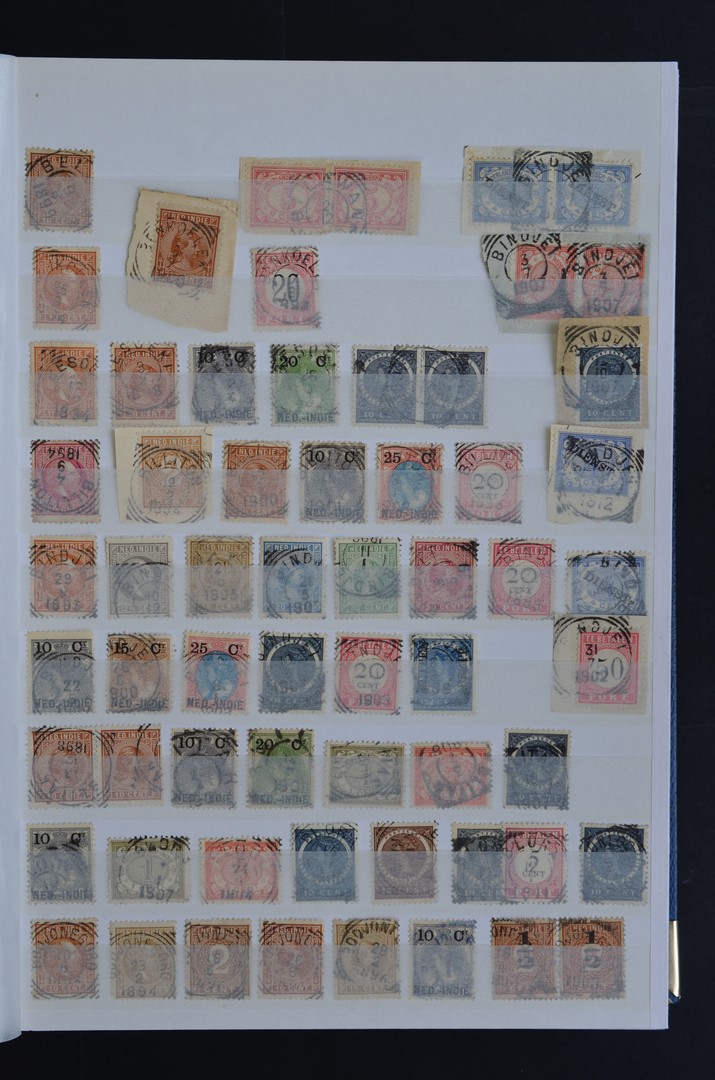 NED.- INDIË POSTHISTORIE, vierkantstempels, aardige verzameling, zonder zeldzame kantoren maar wel met veel mooie afdrukken w.o. Singkep en Stagen, van de grote kantoren diverse typen, op volgorde in insteekboek
