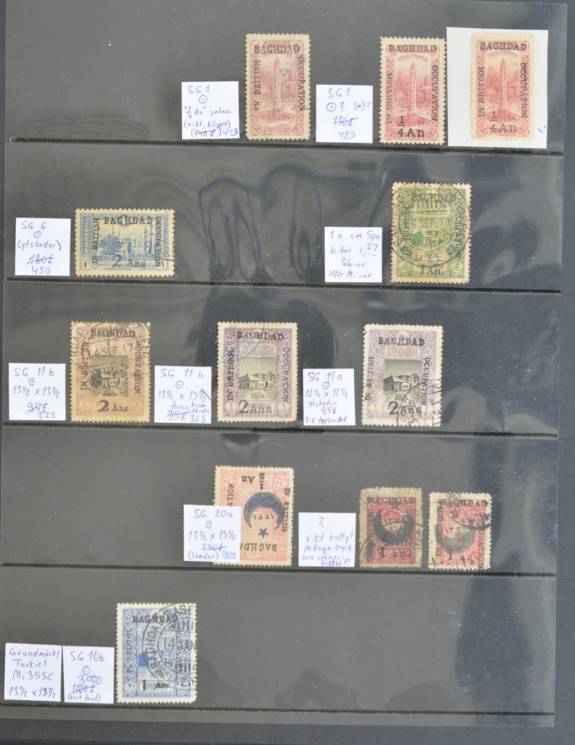 IRAK 1917-1919, uitgiften voor Baghdad en Mosul o/* zegels, blokken en veldelen met opdrukken, wb. mogelijk vals, maar zeker ook echt (en kostbaar) op insteekbladen, in ringband
