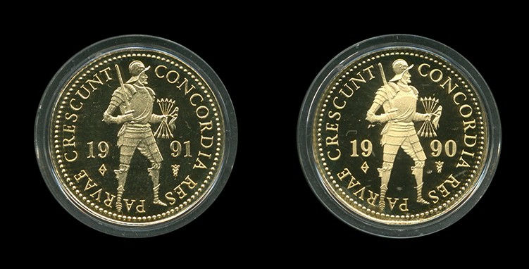 NEDERLAND, Gouden Dukaat 1990 en Gouden Dukaat 1991, beide proof