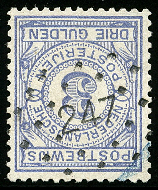 247 = Dieren op 3 gulden Postbewijs. Vrijwel prachtex. met mooie, scherpe afst. Tot op heden onbekend op de 3 gulden (Jans, p.557)