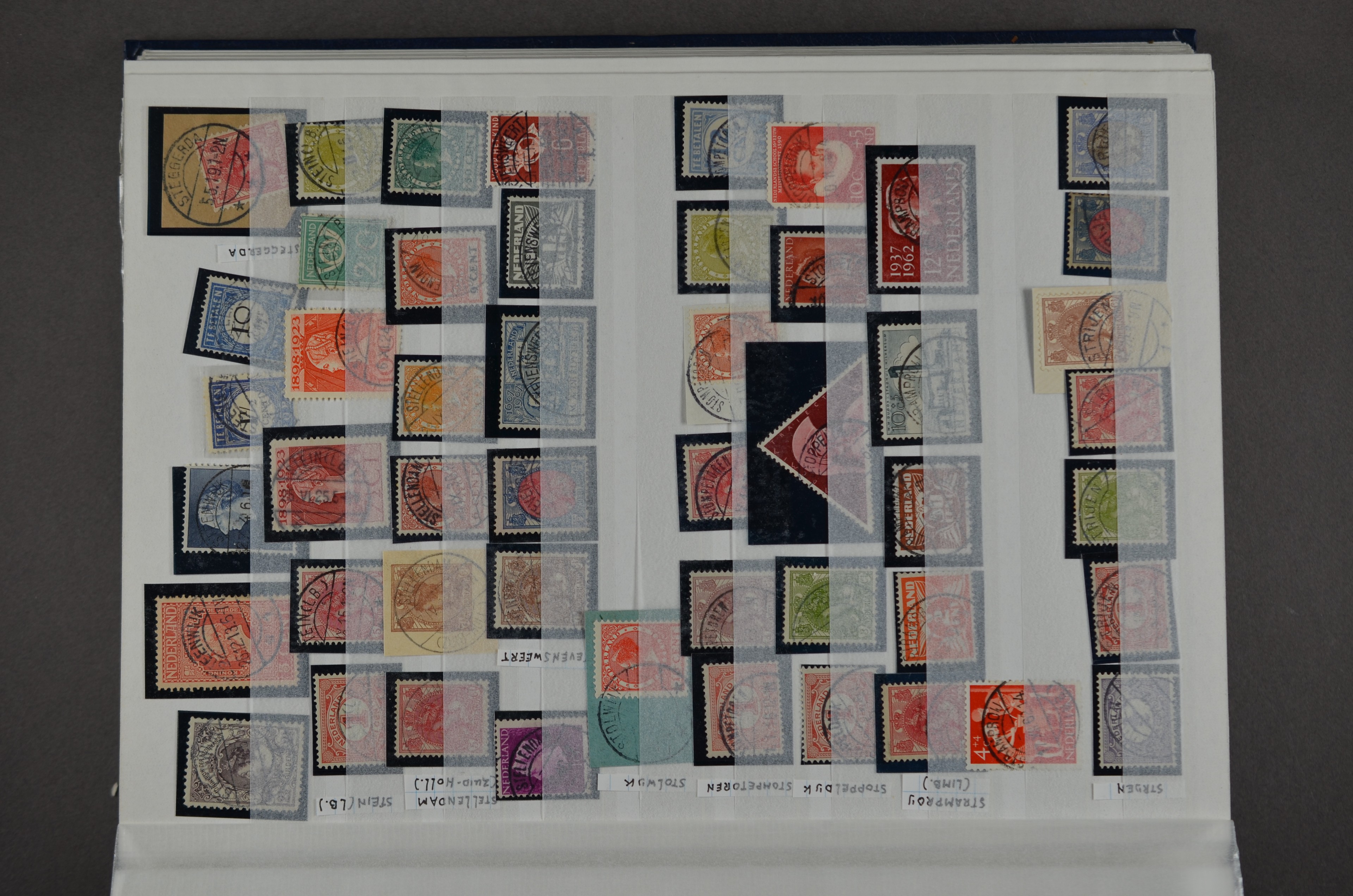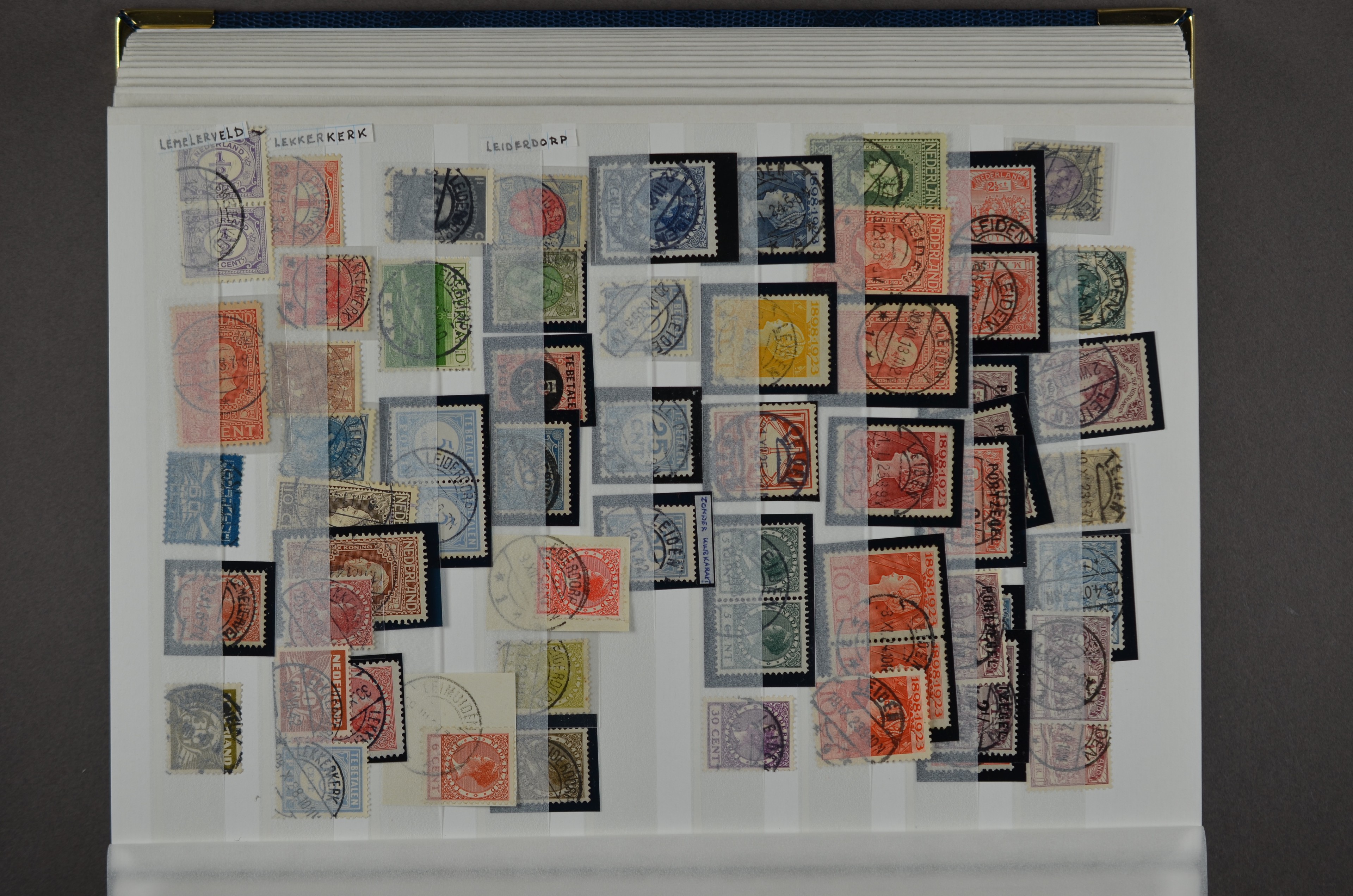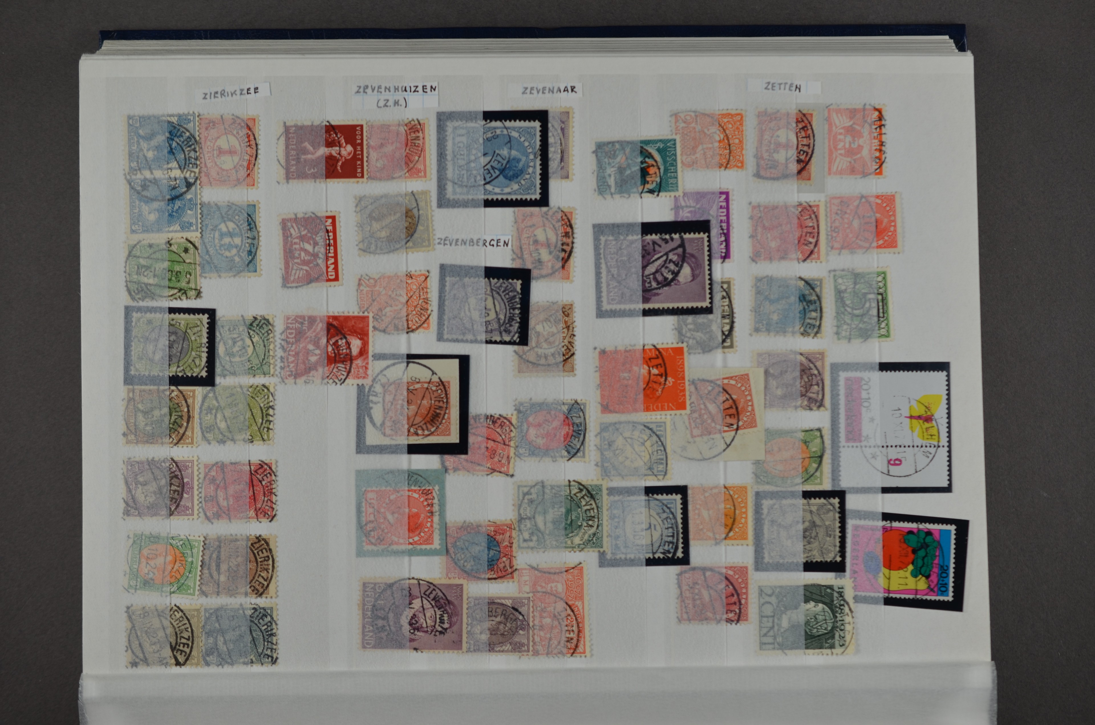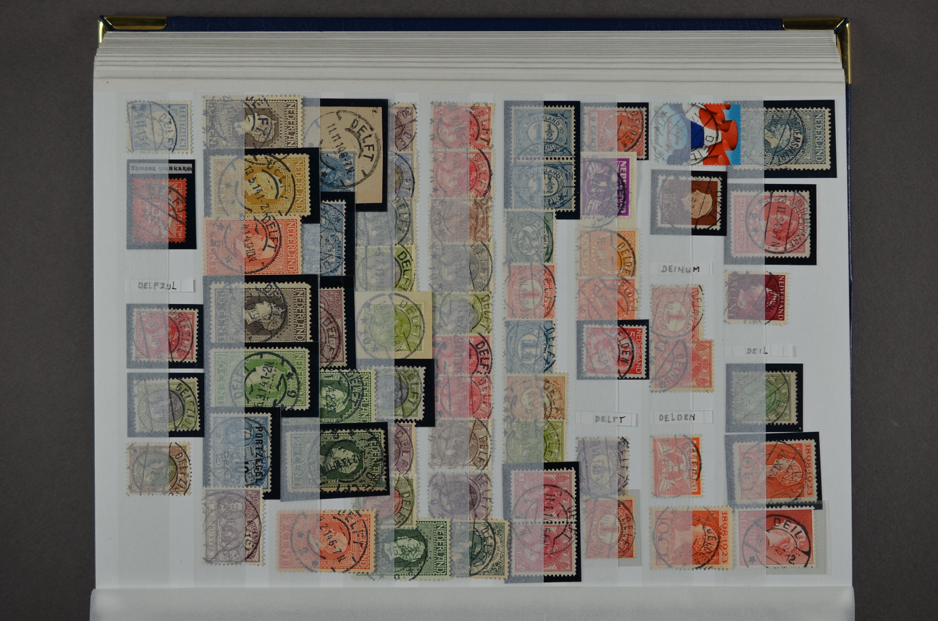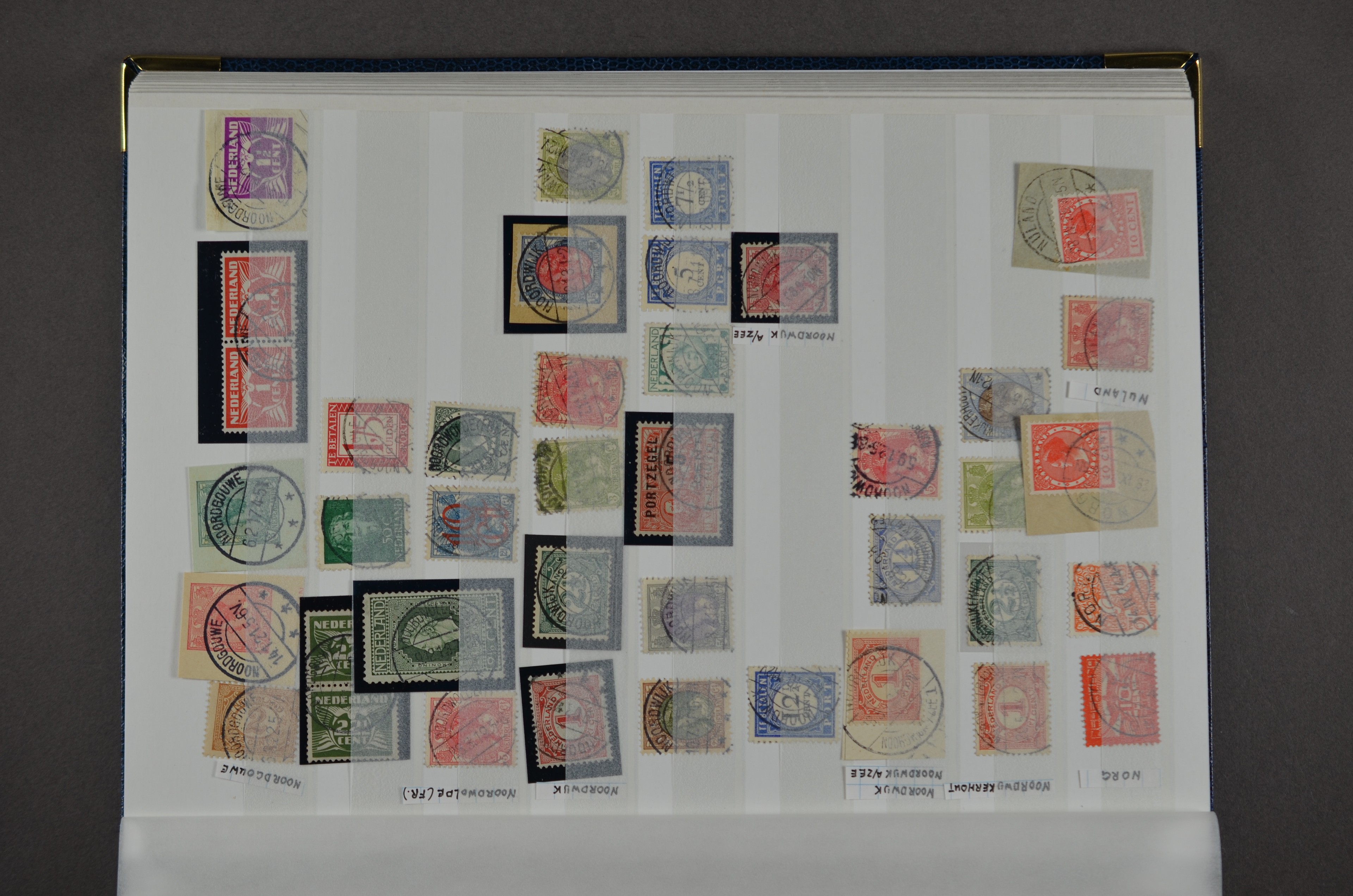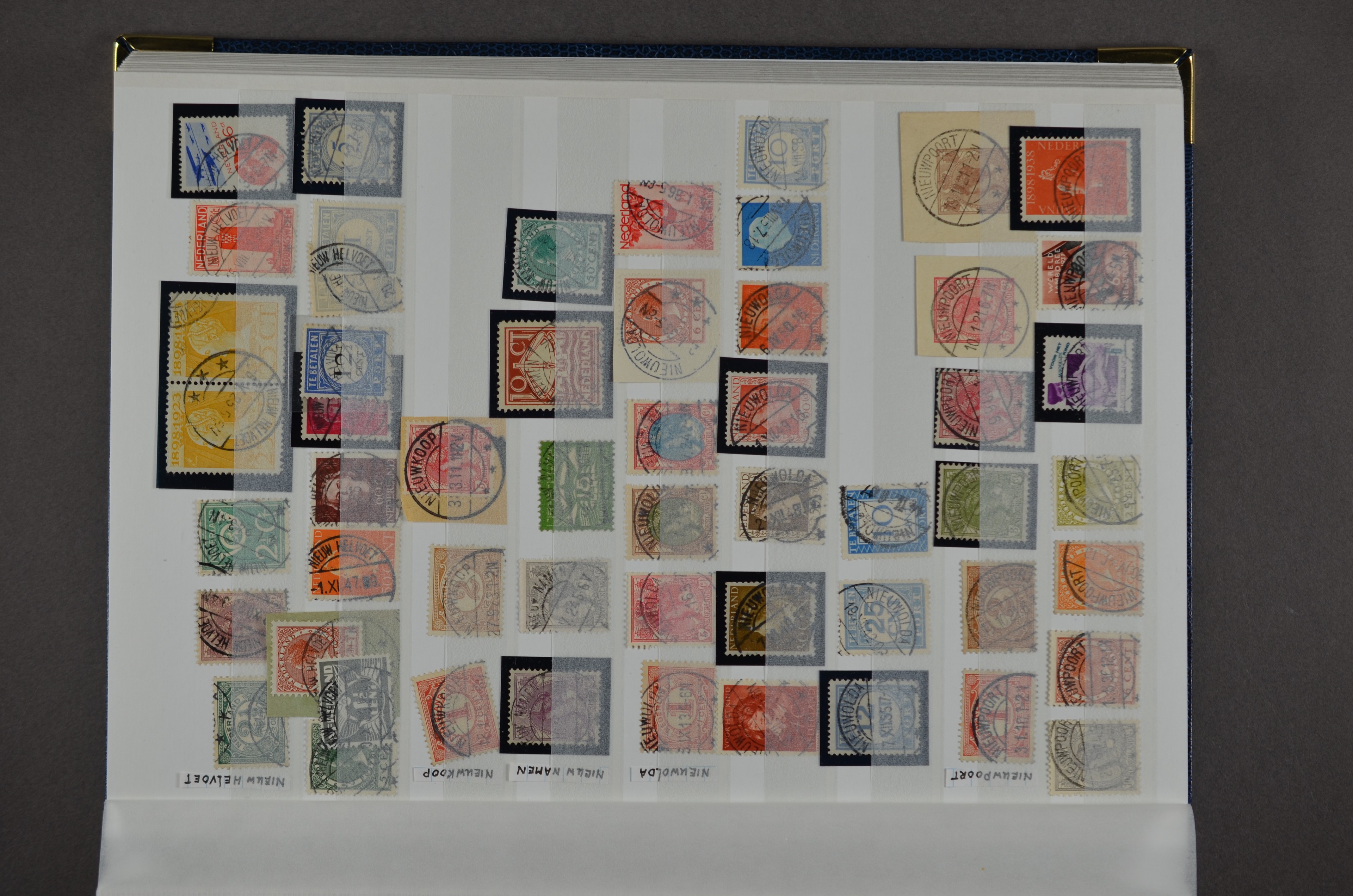 LANGEBALKSTEMPELS, uit Velling type 134/155 op vele, vele honderden losse zegels, merendeels volledige afstempelingen. Het lijken zogenaamd gewone, (semi-)moderne stempels maar in een dergelijke omvang, met zo veel kleine kantoren en in zulke uitzonderlijke kwaliteit nauwelijks meer bijeen te brengen. Voor de liefhebber, op alfabetische volgorde gesorteerd in 3 dikke insteekboeken vol verzamelplezier!