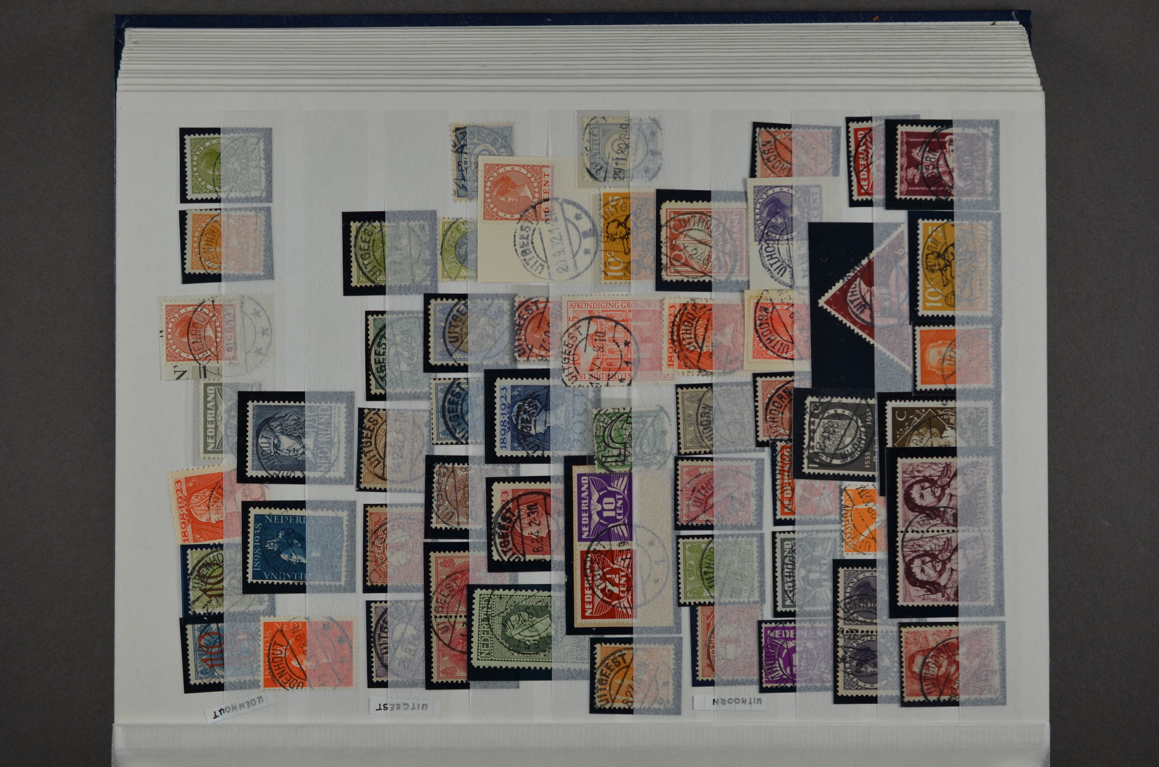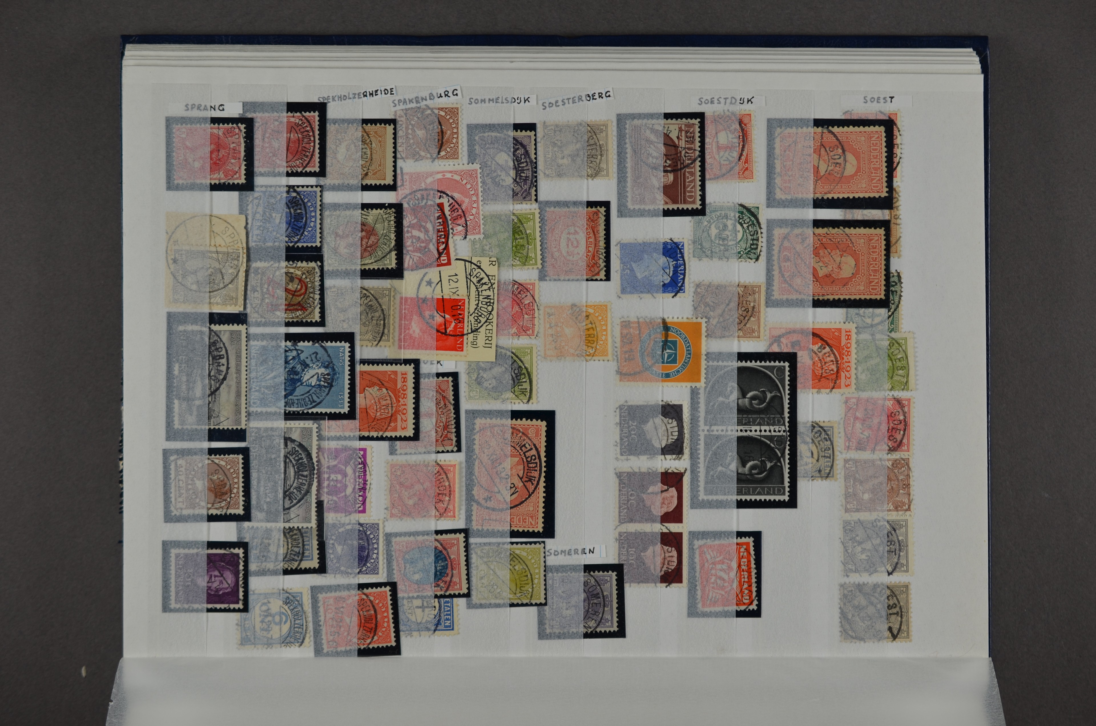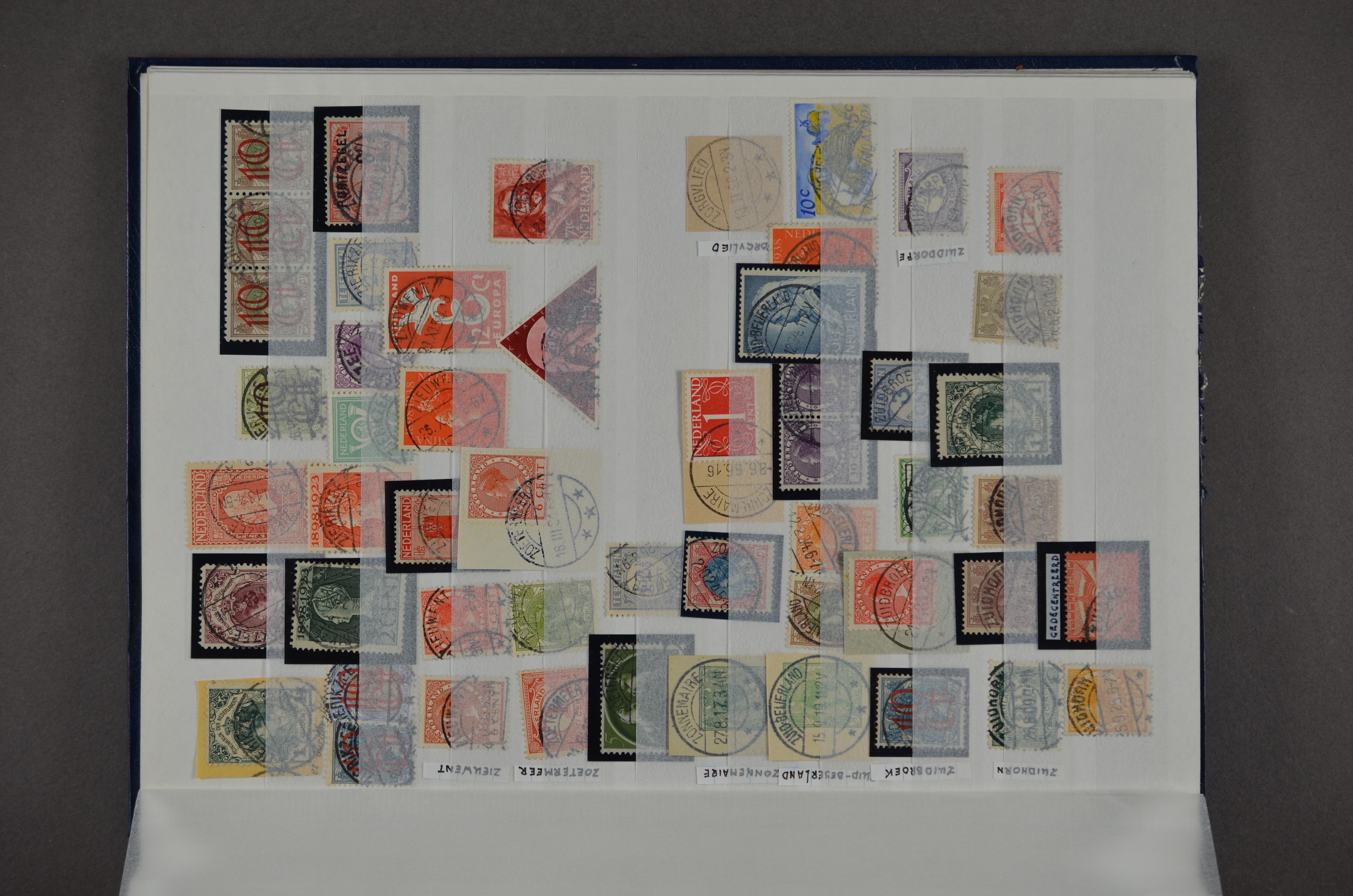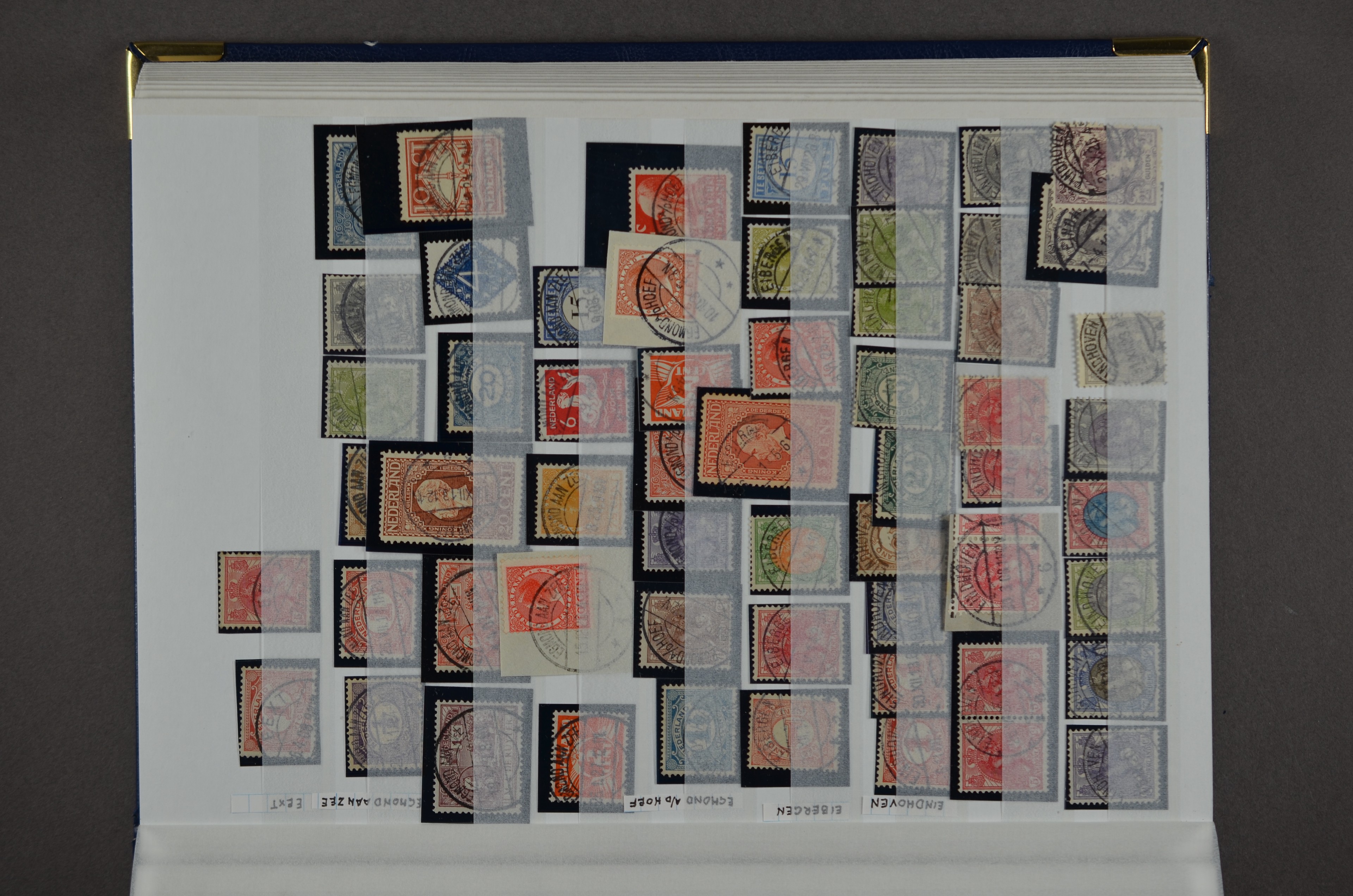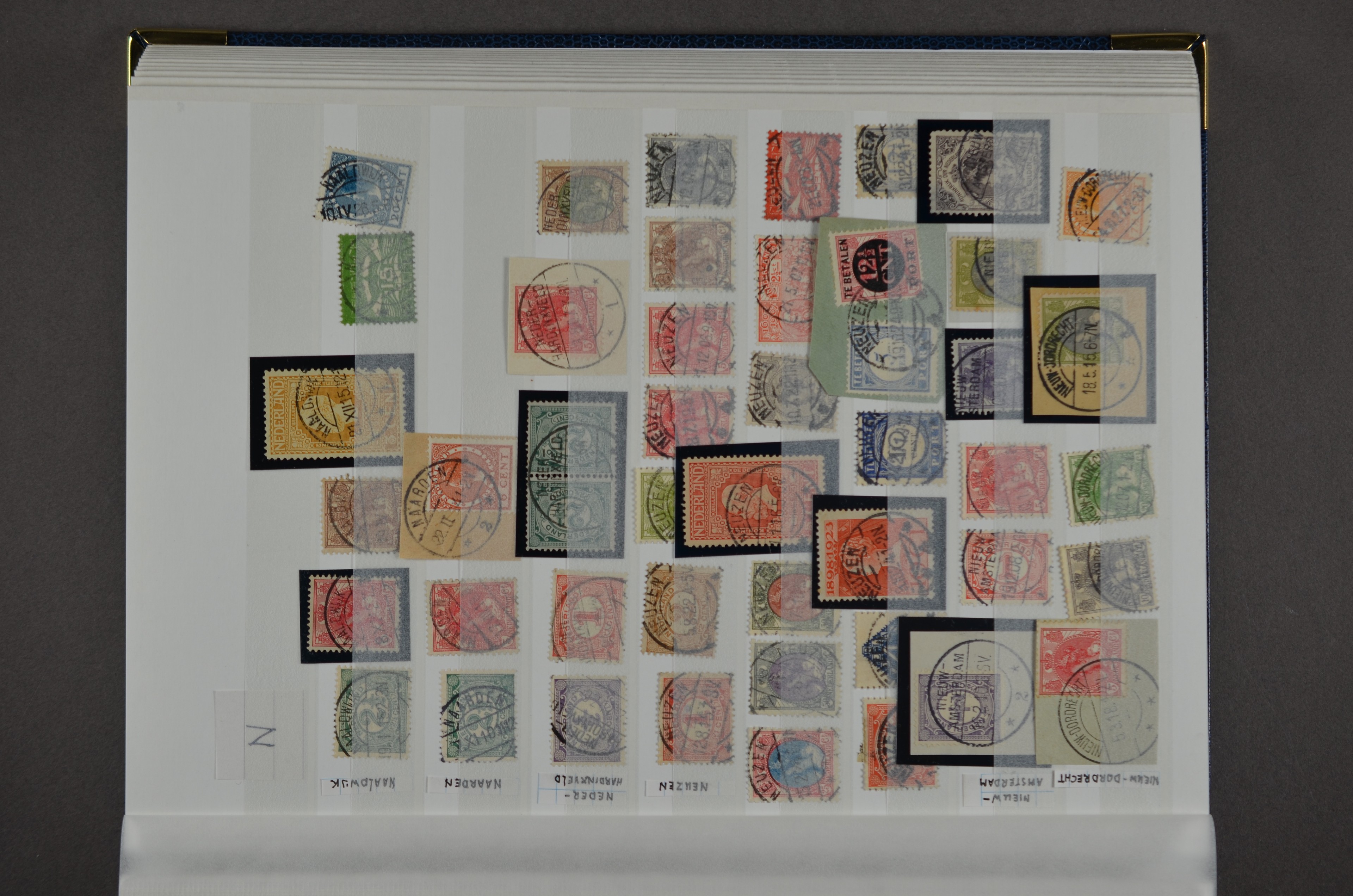 LANGEBALKSTEMPELS, uit Velling type 134/155 op vele, vele honderden losse zegels, merendeels volledige afstempelingen. Het lijken zogenaamd gewone, (semi-)moderne stempels maar in een dergelijke omvang, met zo veel kleine kantoren en in zulke uitzonderlijke kwaliteit nauwelijks meer bijeen te brengen. Voor de liefhebber, op alfabetische volgorde gesorteerd in 3 dikke insteekboeken vol verzamelplezier!
