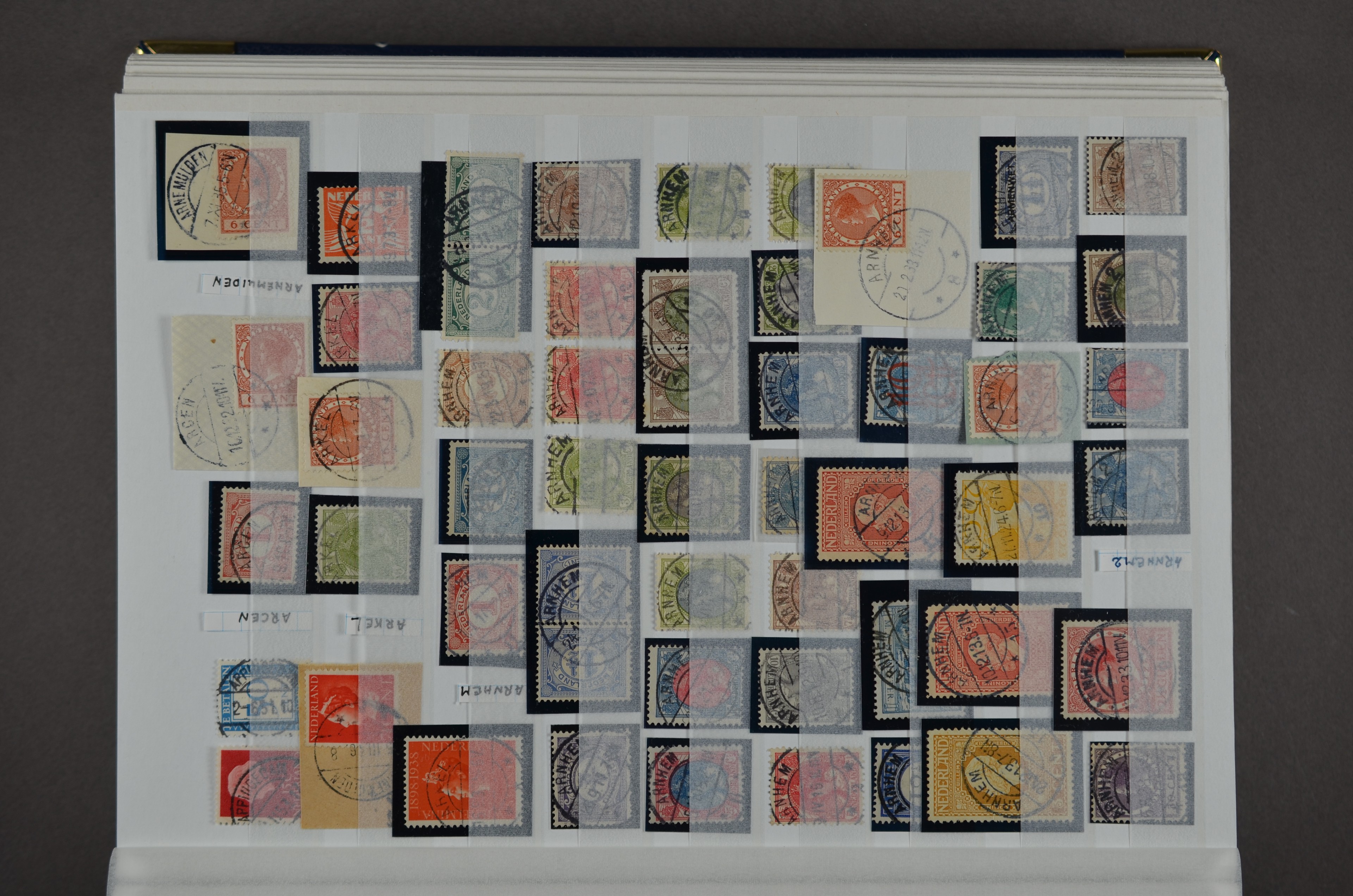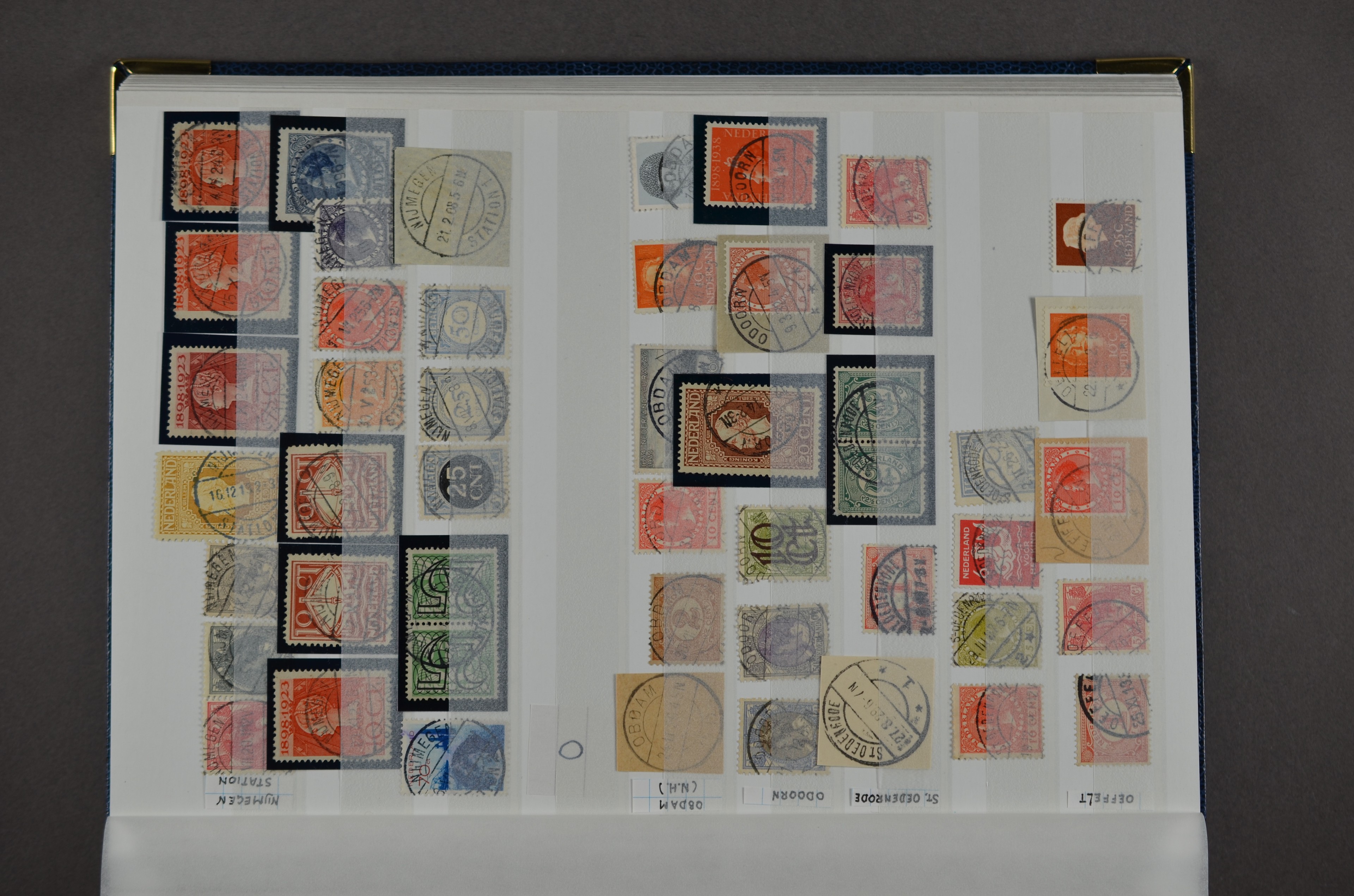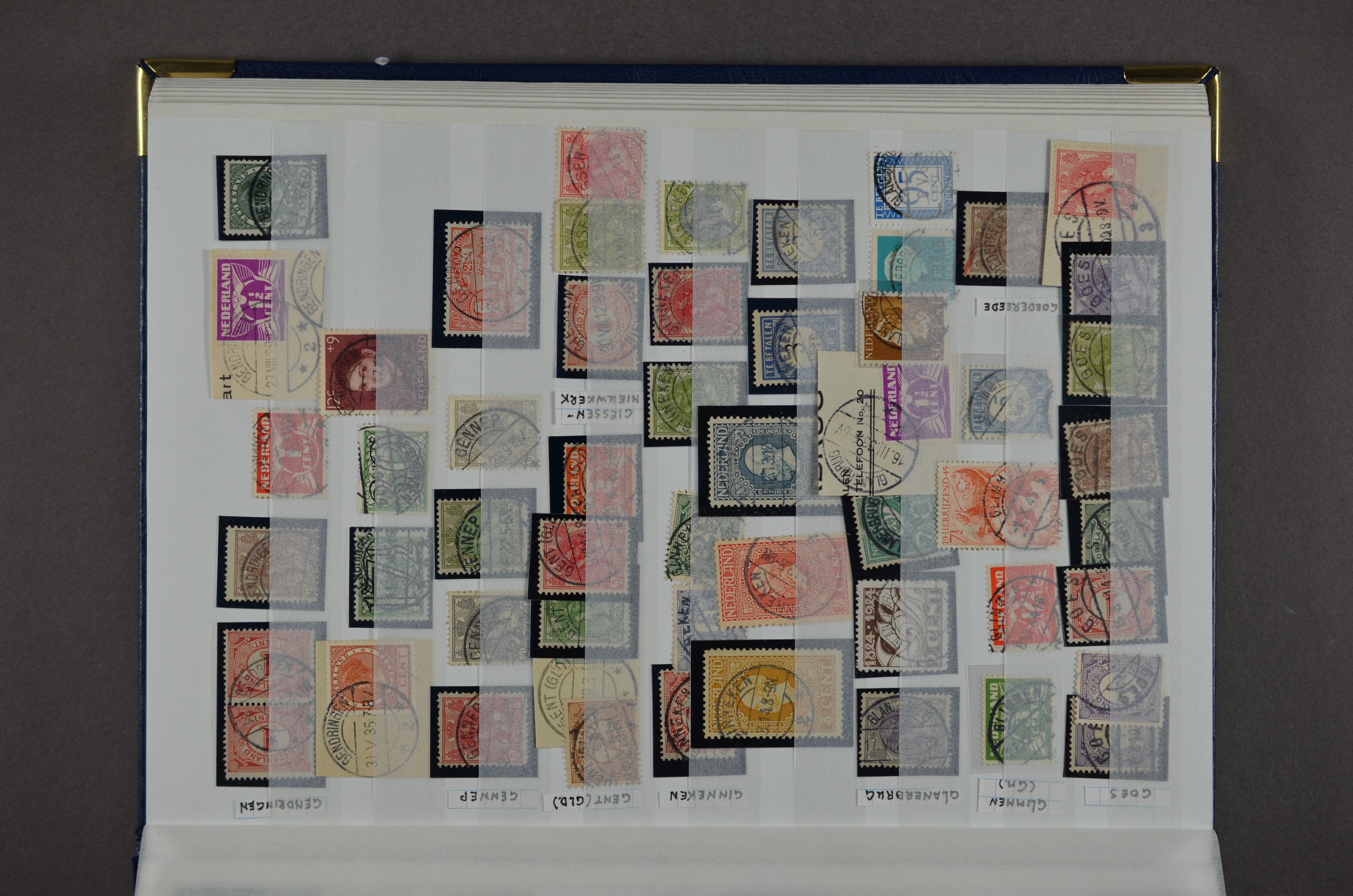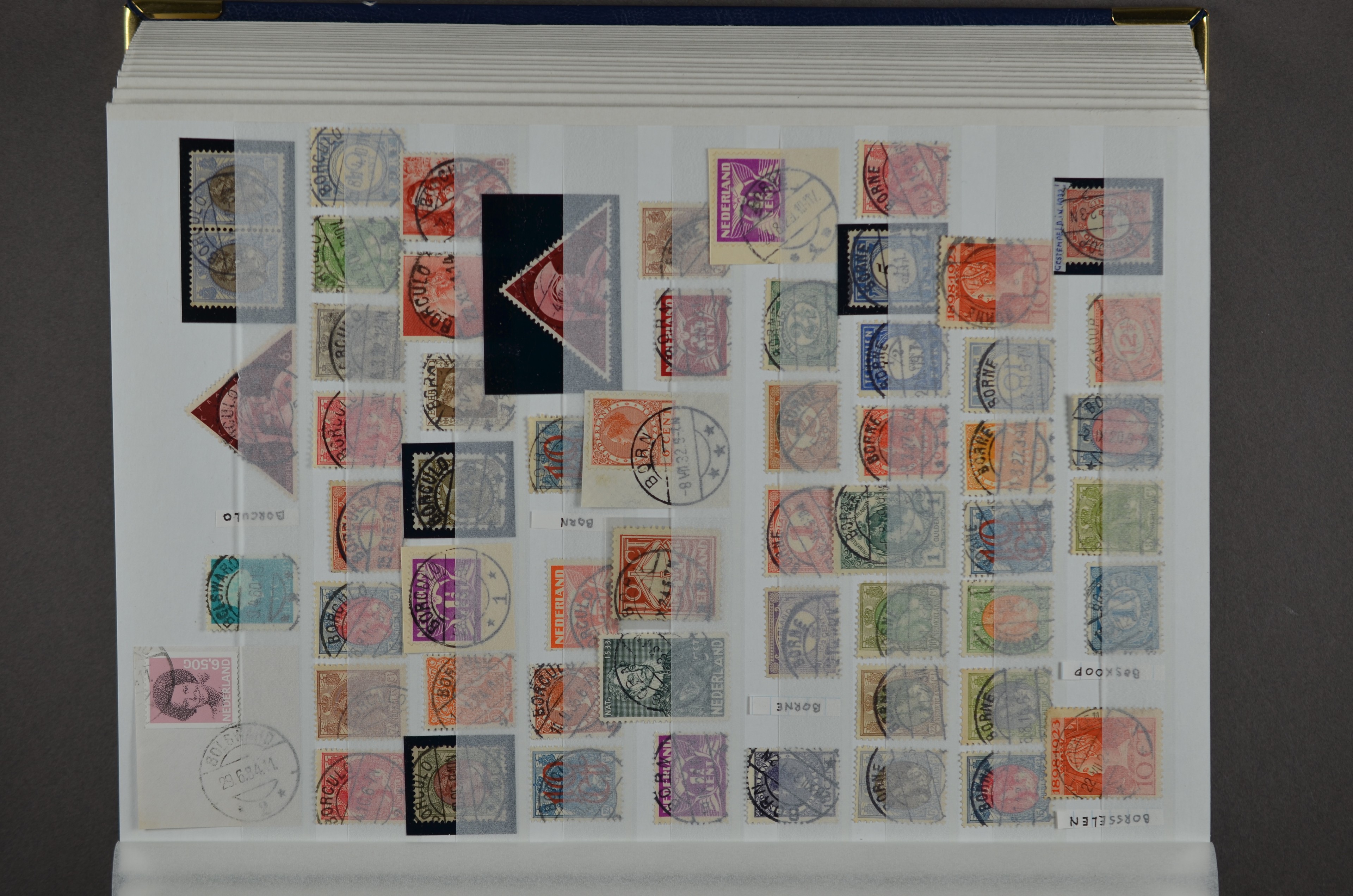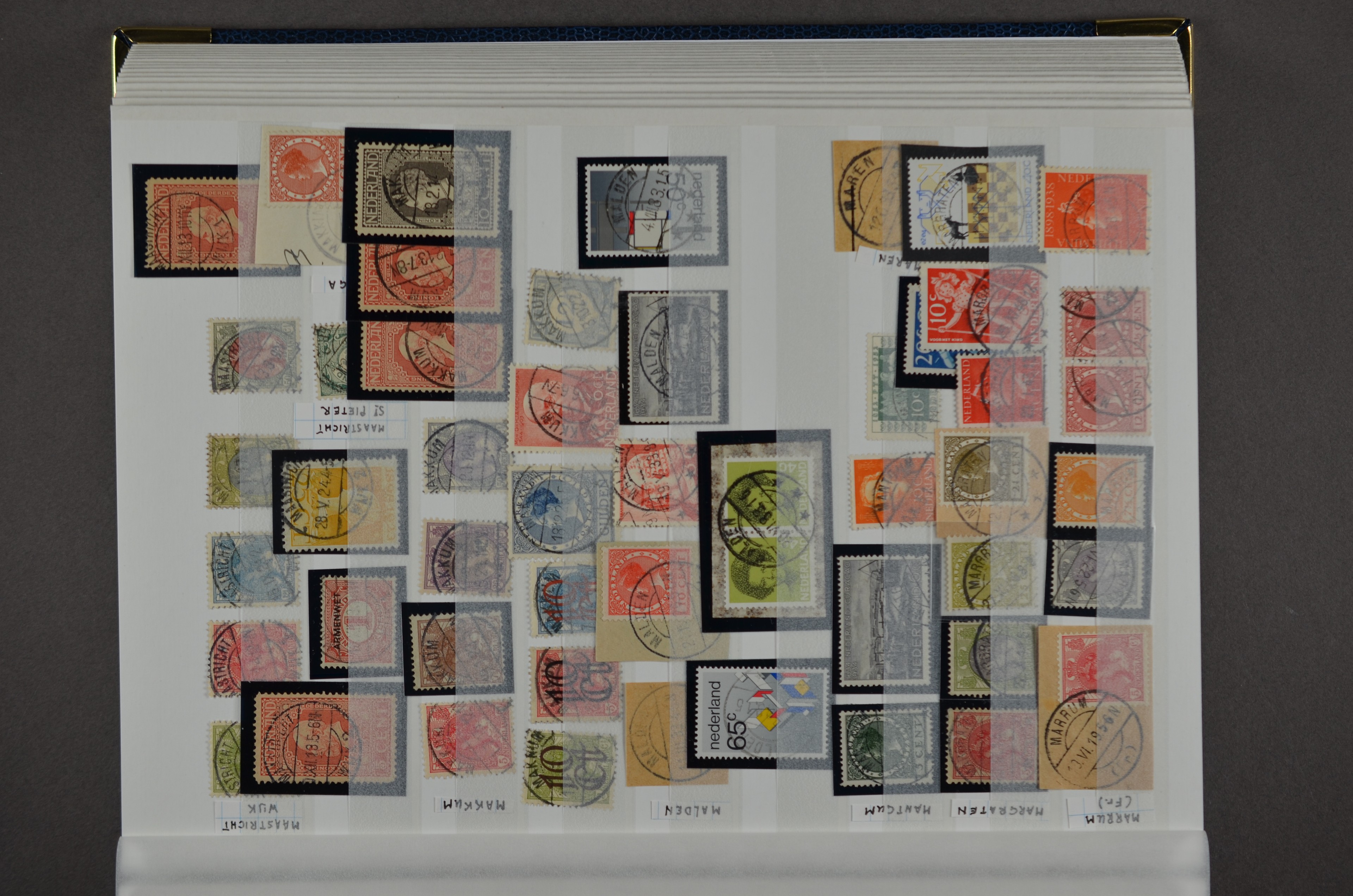 LANGEBALKSTEMPELS, uit Velling type 134/155 op vele, vele honderden losse zegels, merendeels volledige afstempelingen. Het lijken zogenaamd gewone, (semi-)moderne stempels maar in een dergelijke omvang, met zo veel kleine kantoren en in zulke uitzonderlijke kwaliteit nauwelijks meer bijeen te brengen. Voor de liefhebber, op alfabetische volgorde gesorteerd in 3 dikke insteekboeken vol verzamelplezier!