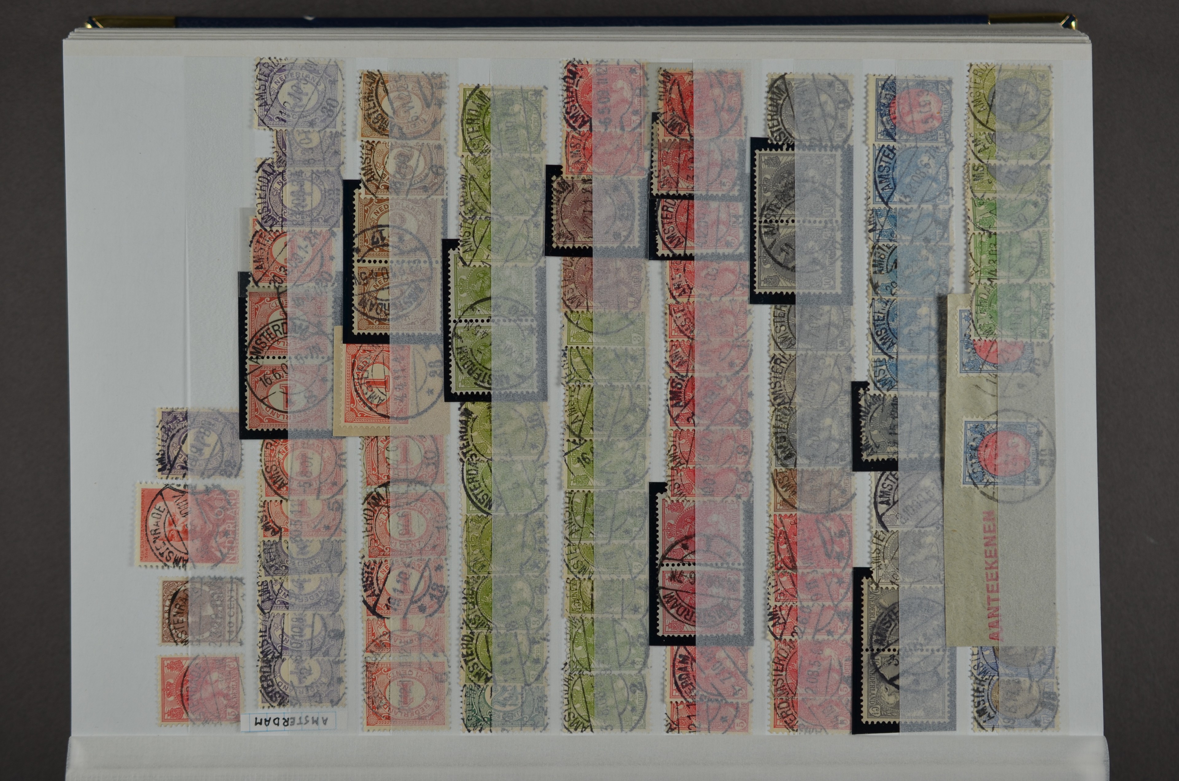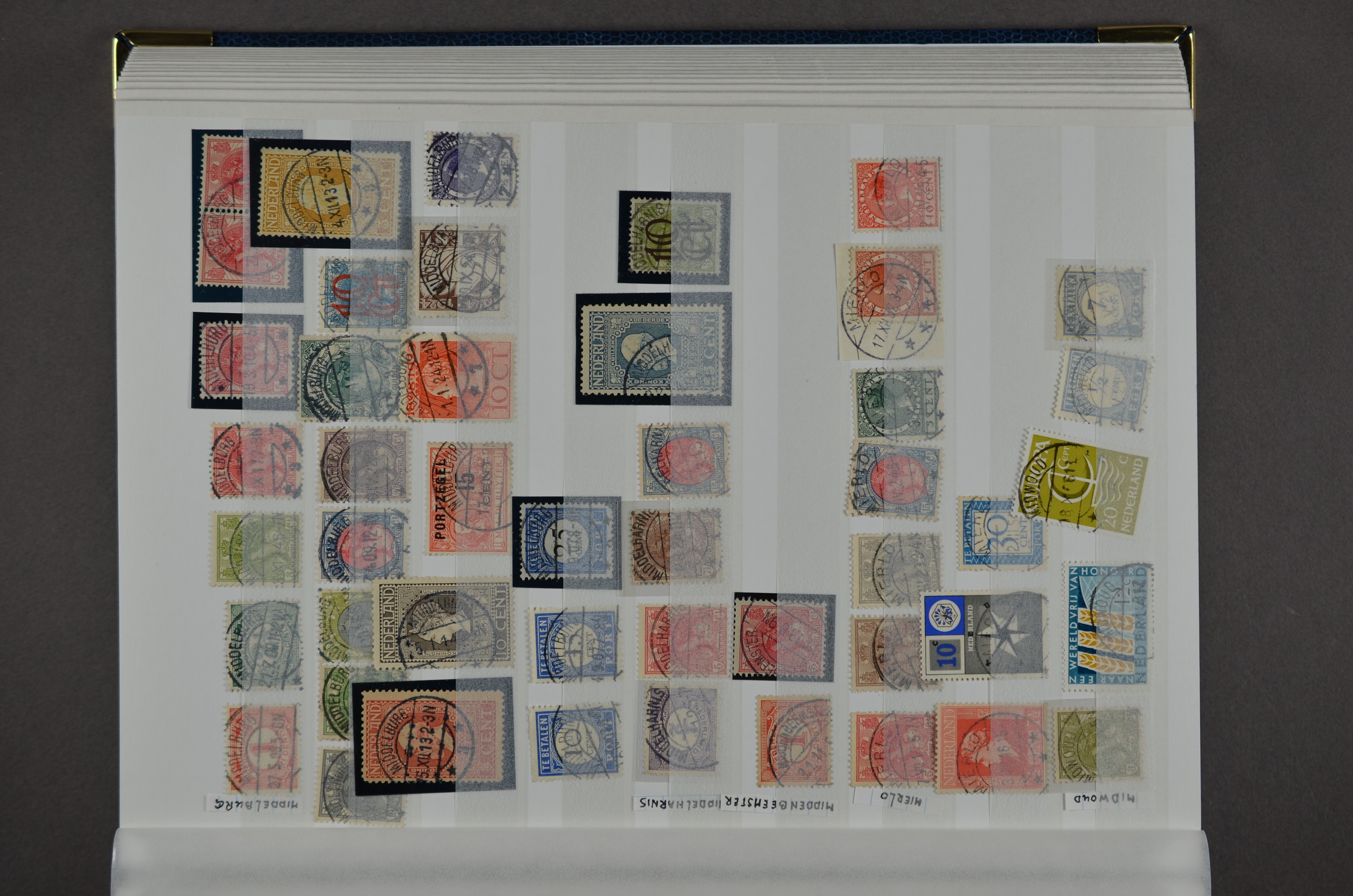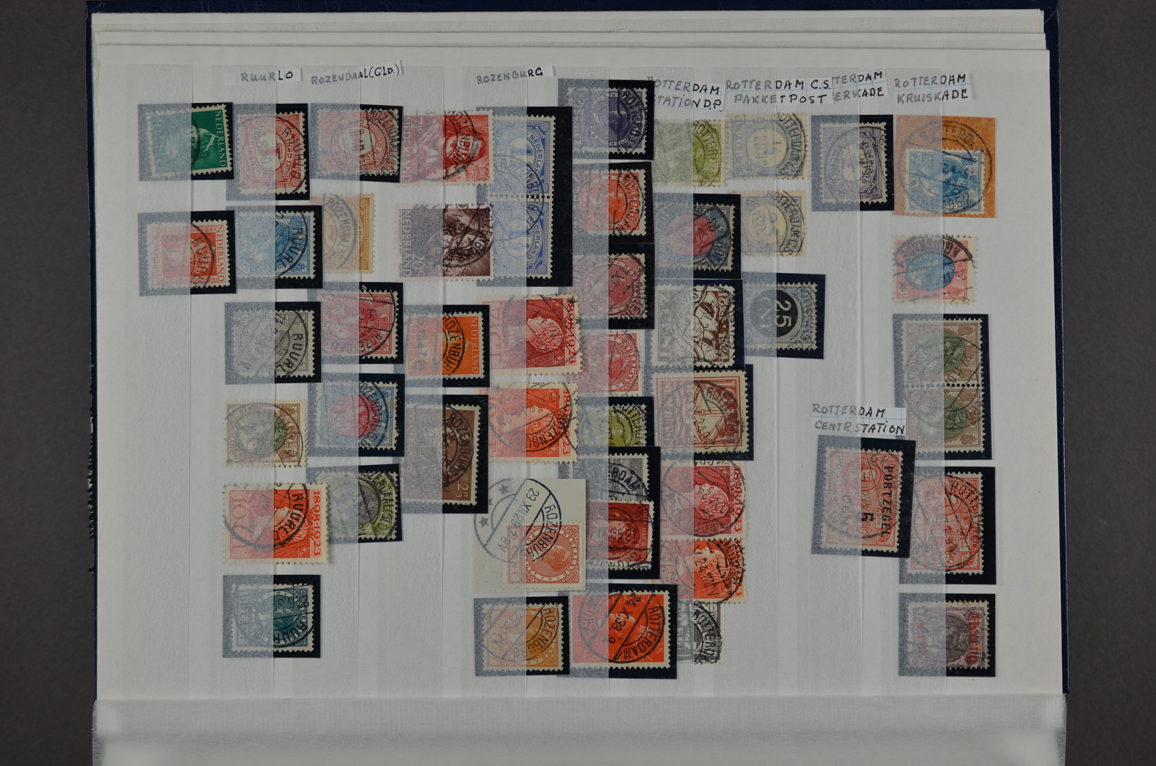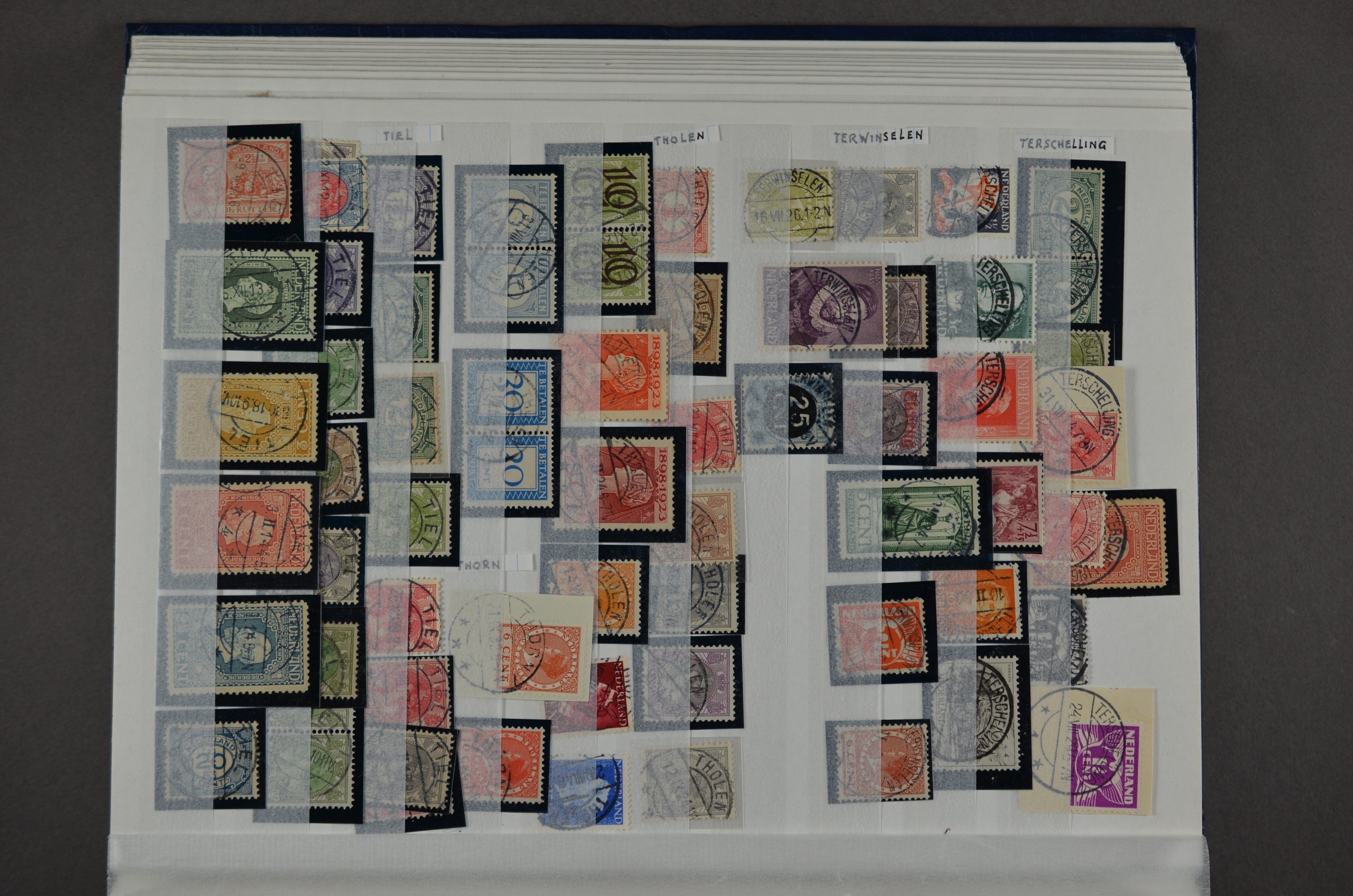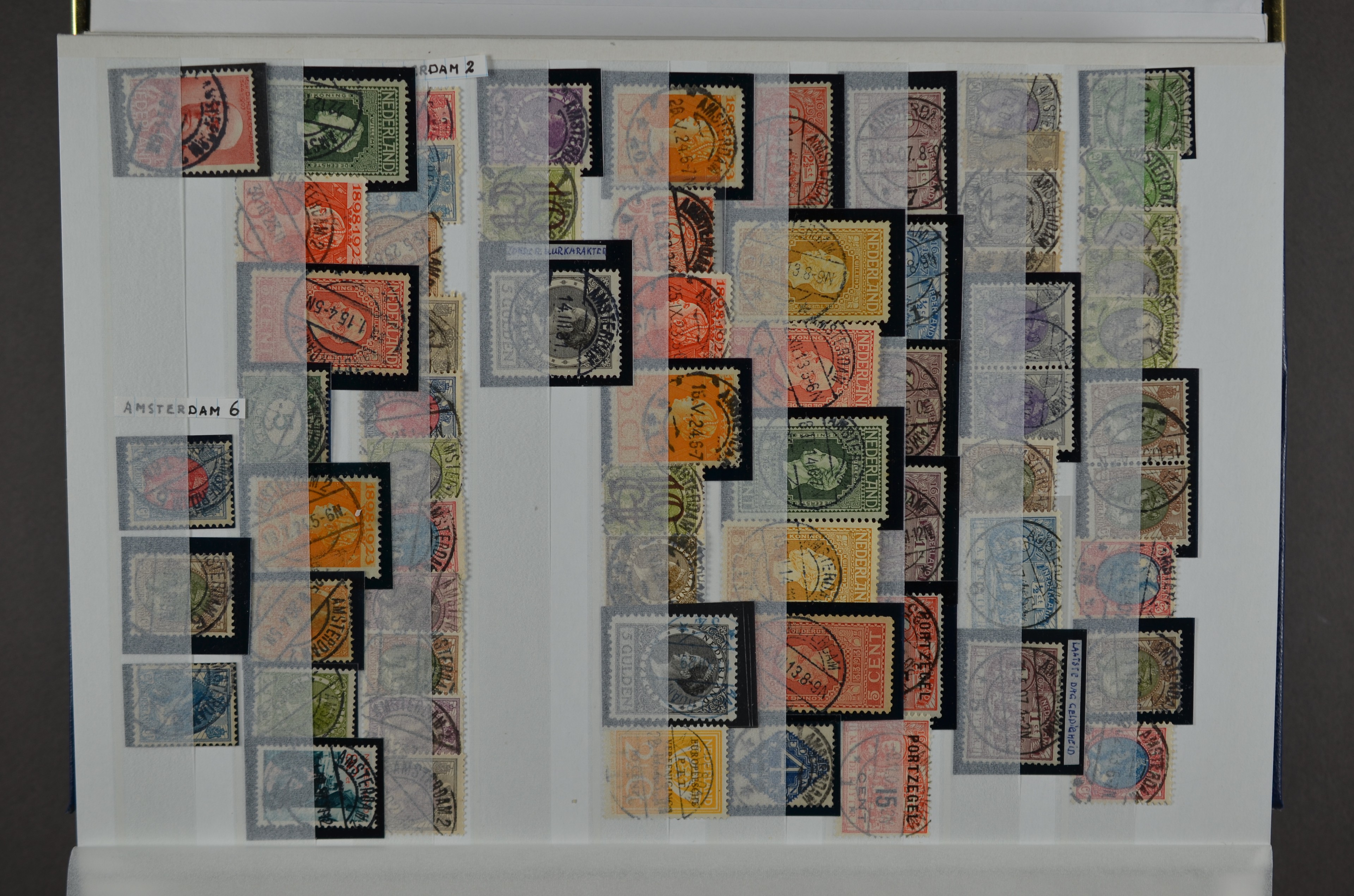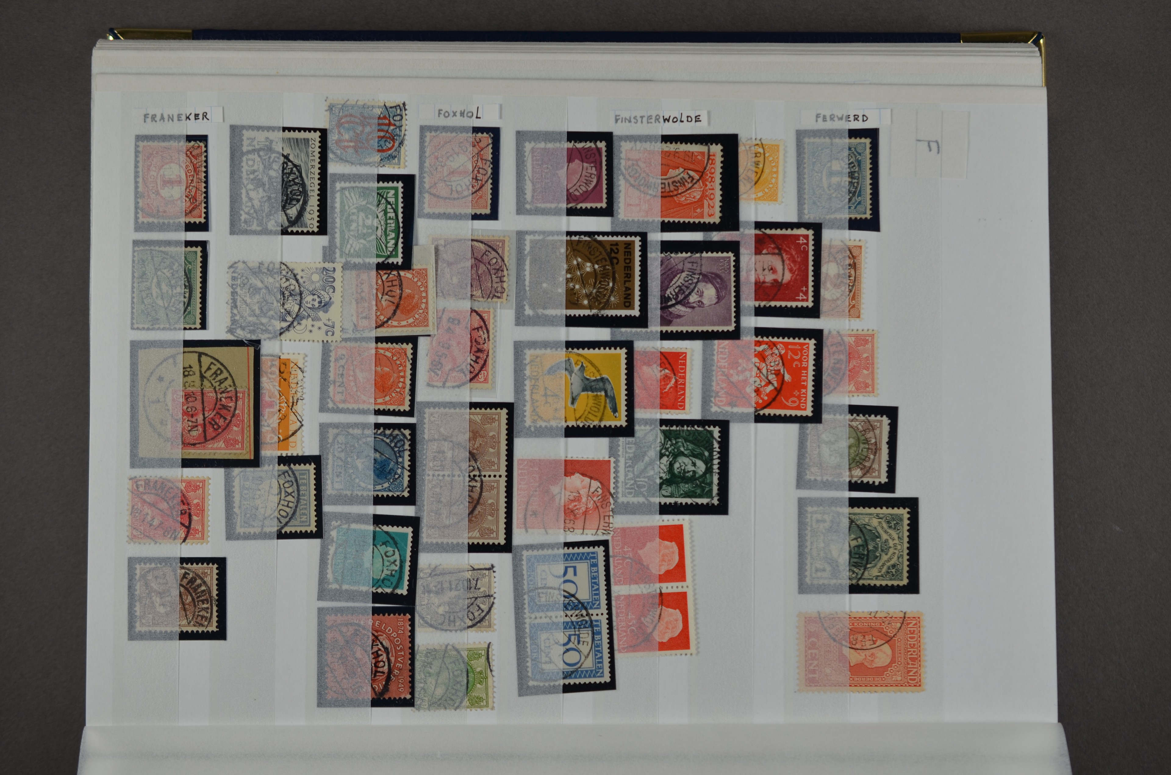 LANGEBALKSTEMPELS, uit Velling type 134/155 op vele, vele honderden losse zegels, merendeels volledige afstempelingen. Het lijken zogenaamd gewone, (semi-)moderne stempels maar in een dergelijke omvang, met zo veel kleine kantoren en in zulke uitzonderlijke kwaliteit nauwelijks meer bijeen te brengen. Voor de liefhebber, op alfabetische volgorde gesorteerd in 3 dikke insteekboeken vol verzamelplezier!