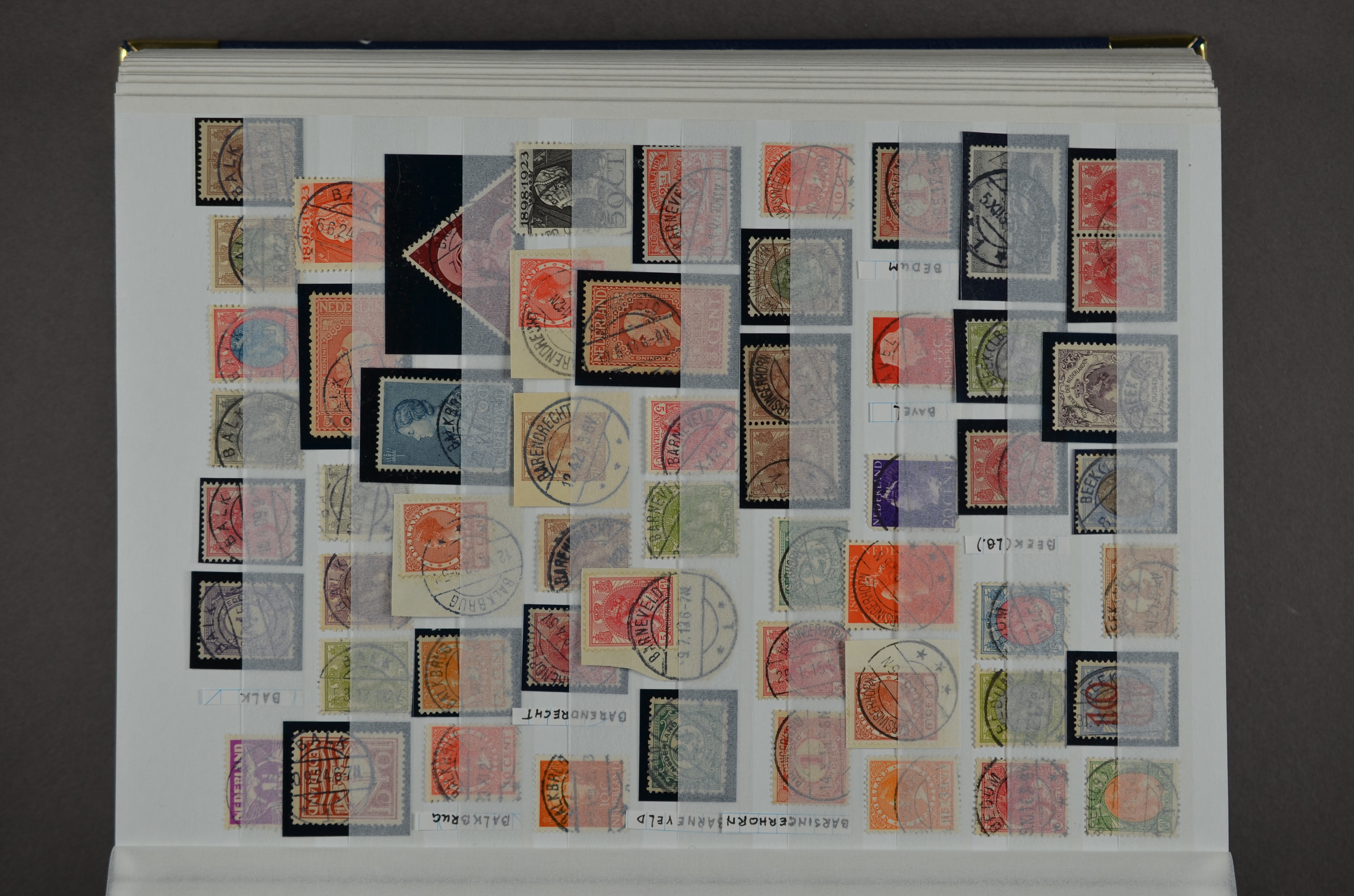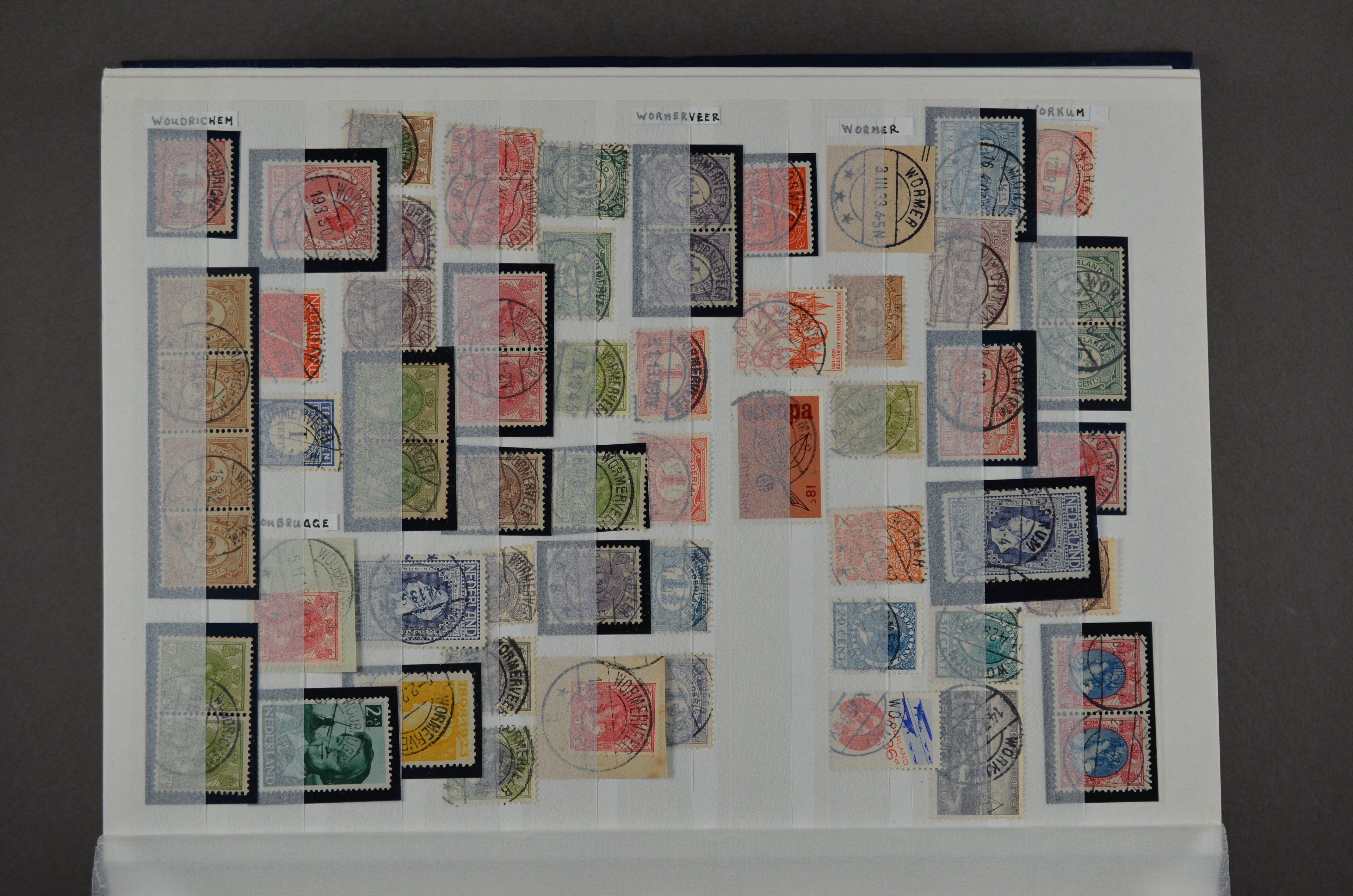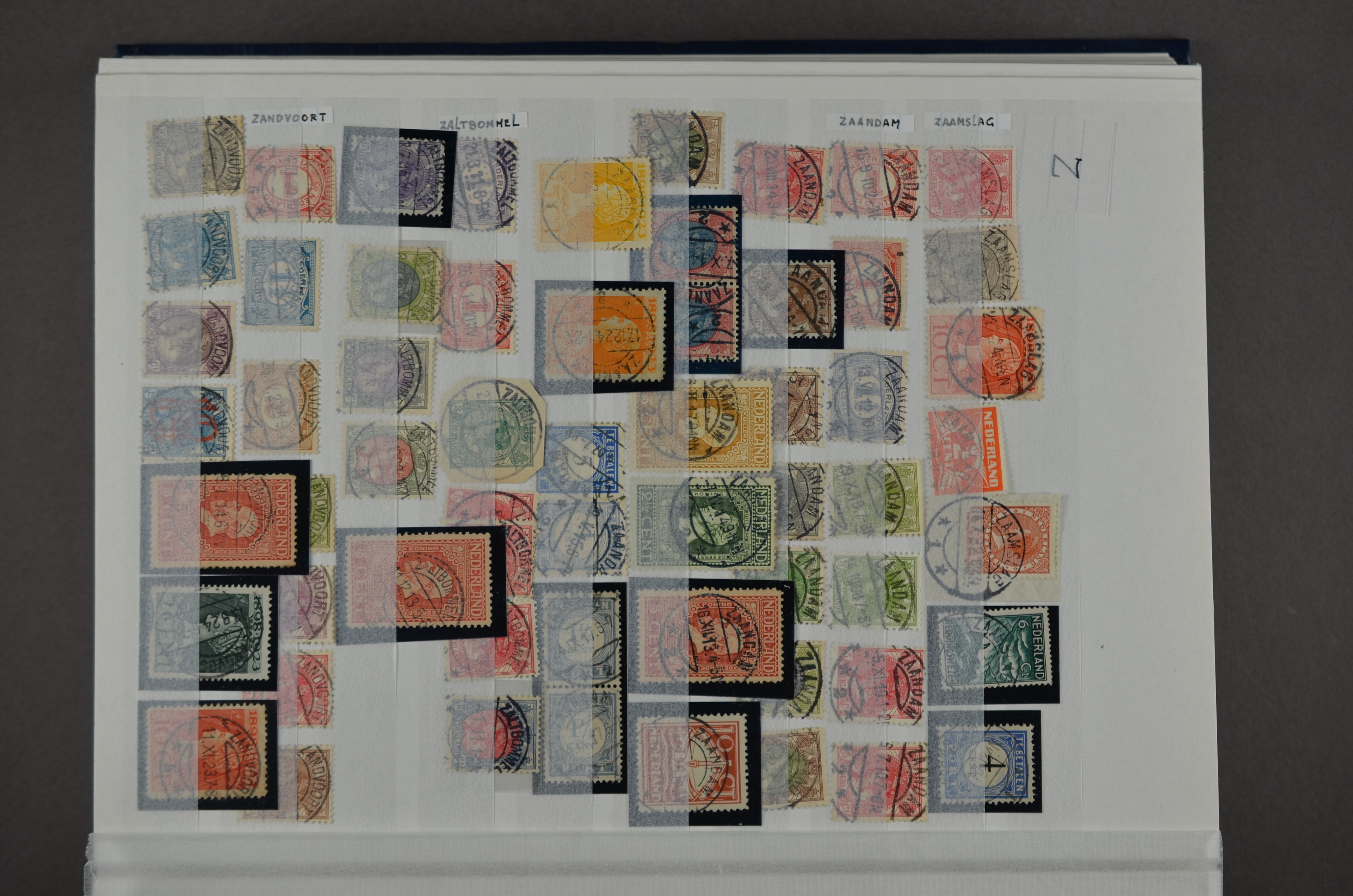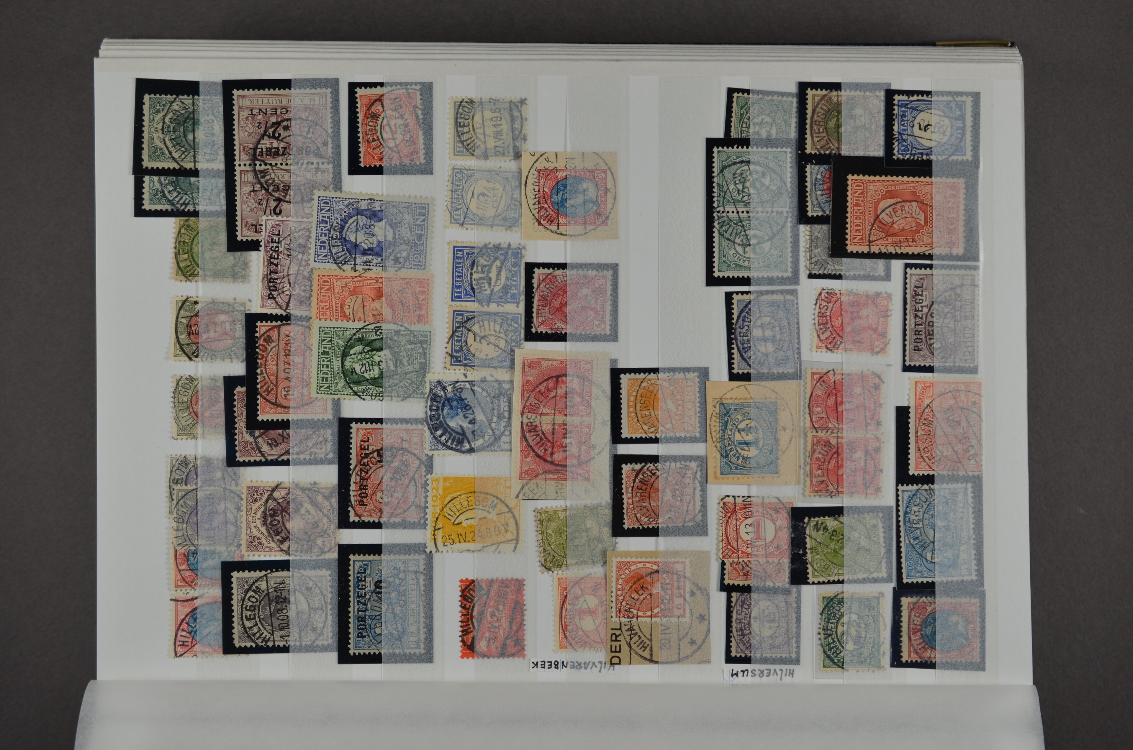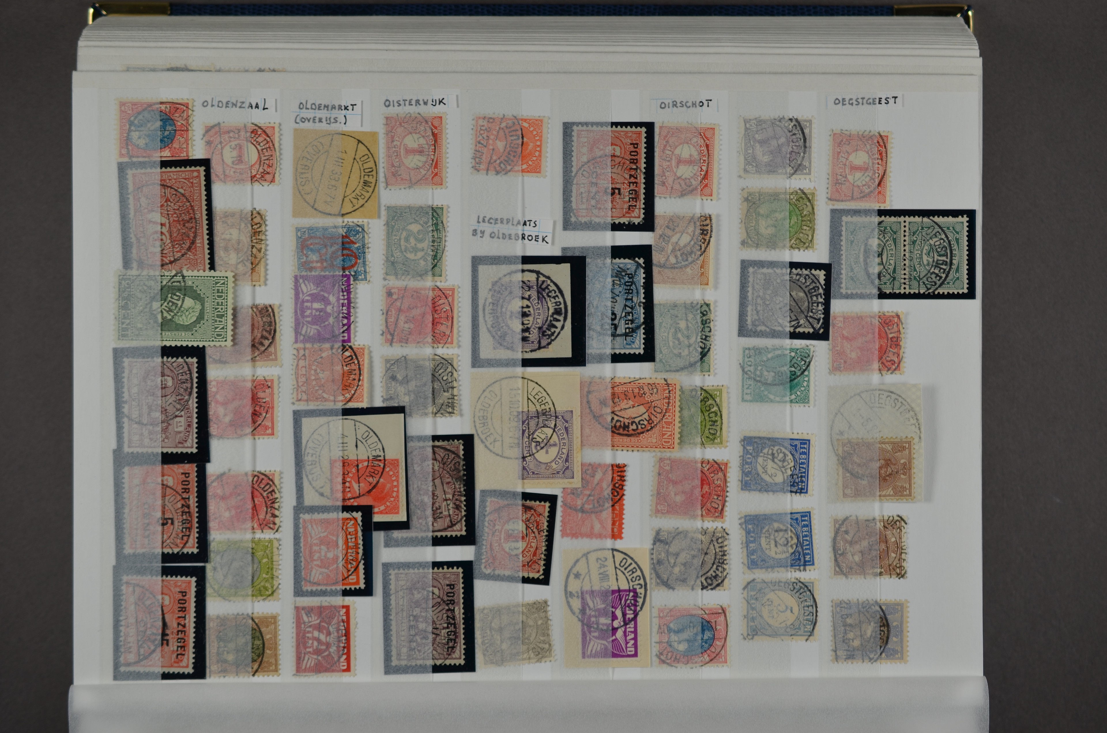 LANGEBALKSTEMPELS, uit Velling type 134/155 op vele, vele honderden losse zegels, merendeels volledige afstempelingen. Het lijken zogenaamd gewone, (semi-)moderne stempels maar in een dergelijke omvang, met zo veel kleine kantoren en in zulke uitzonderlijke kwaliteit nauwelijks meer bijeen te brengen. Voor de liefhebber, op alfabetische volgorde gesorteerd in 3 dikke insteekboeken vol verzamelplezier!