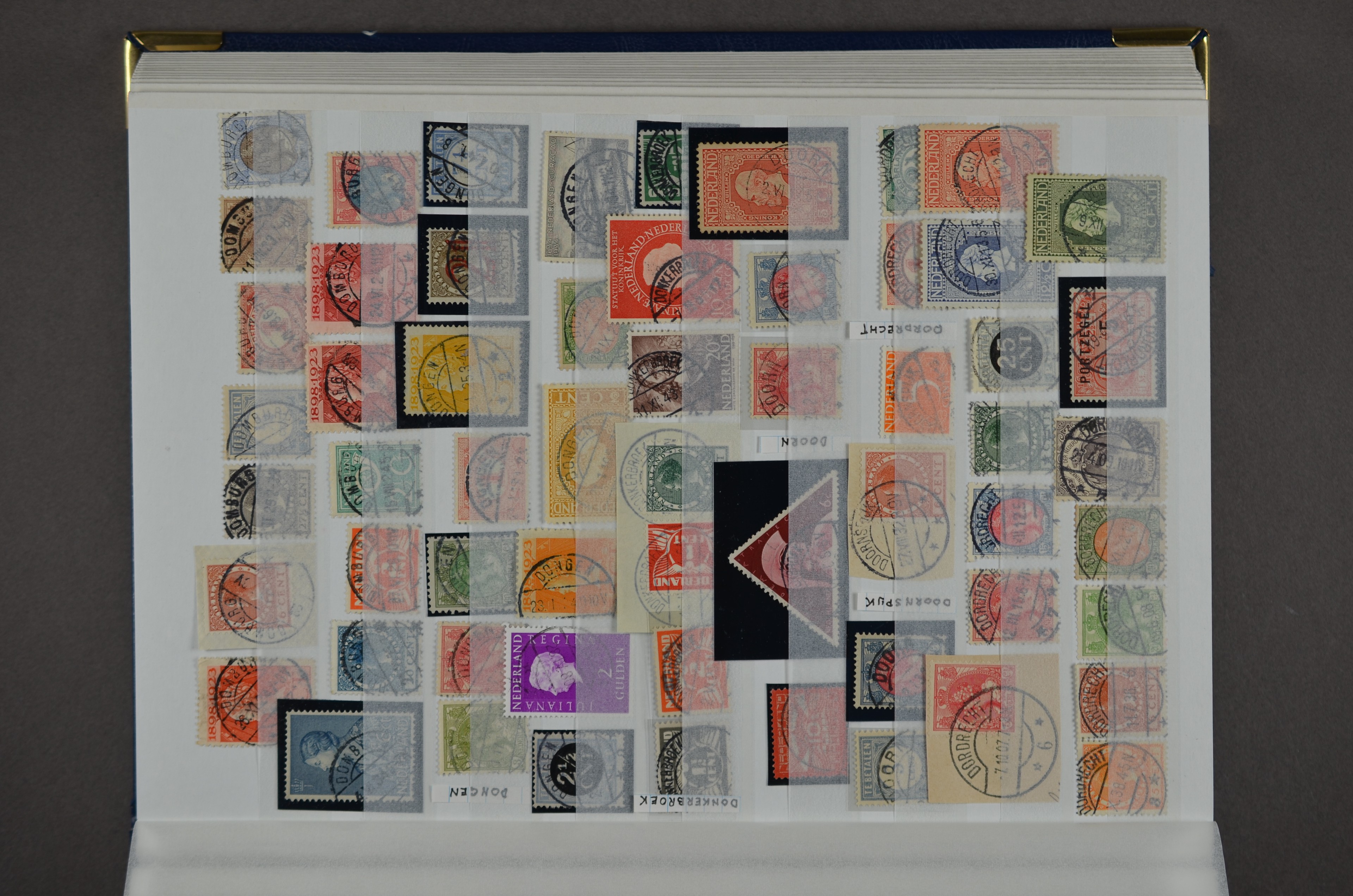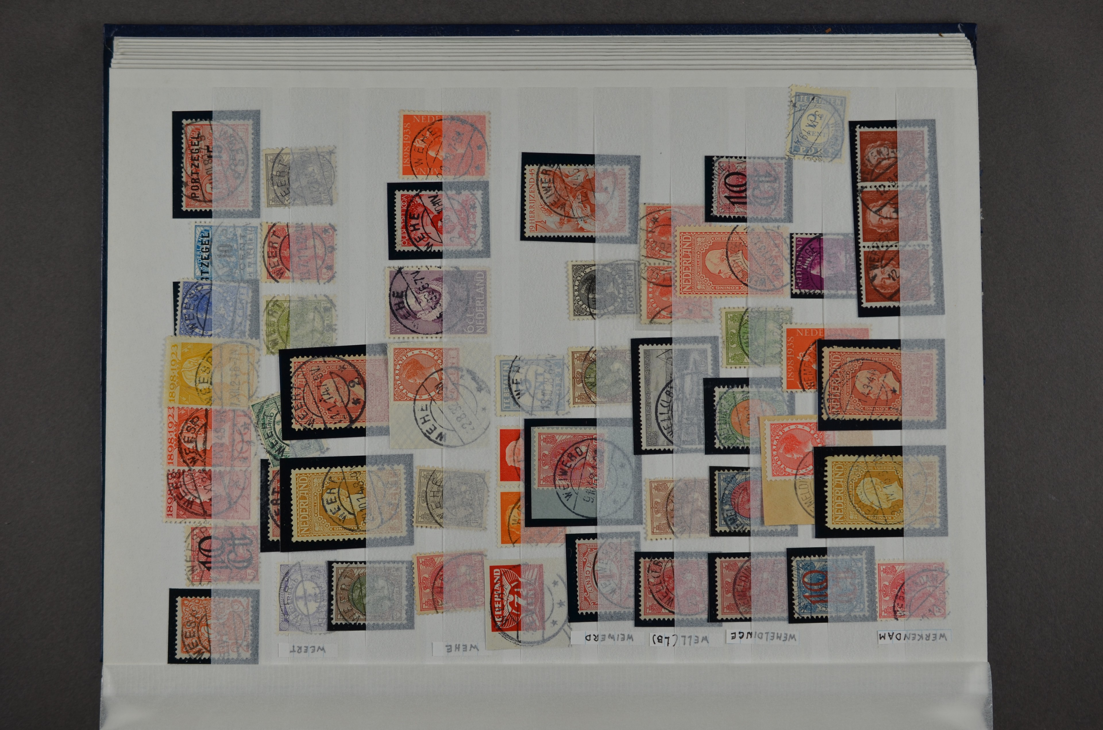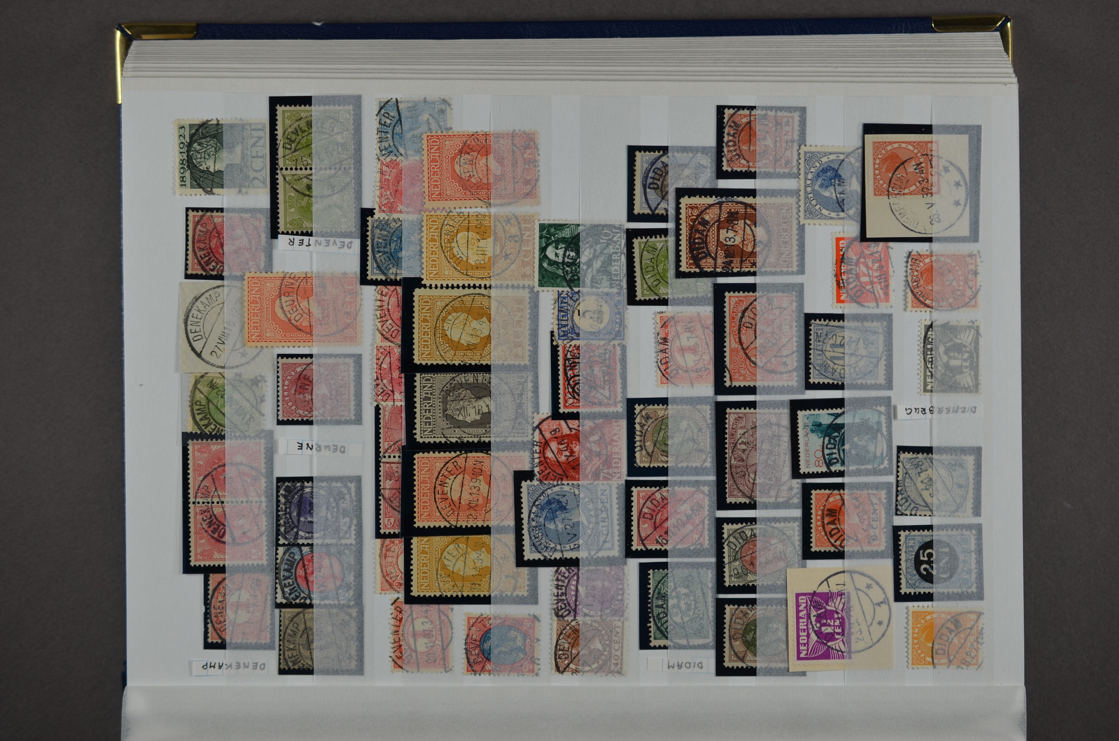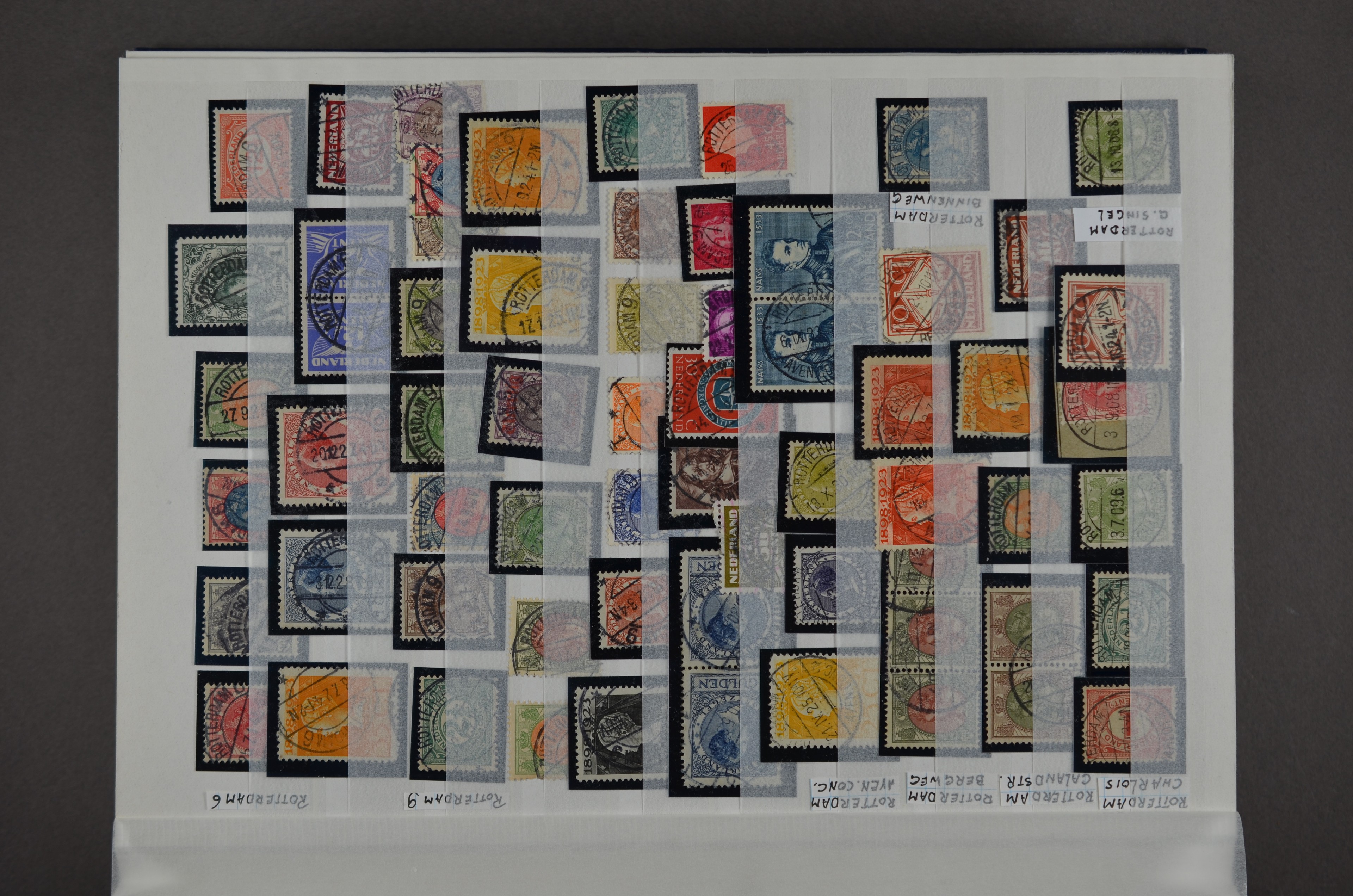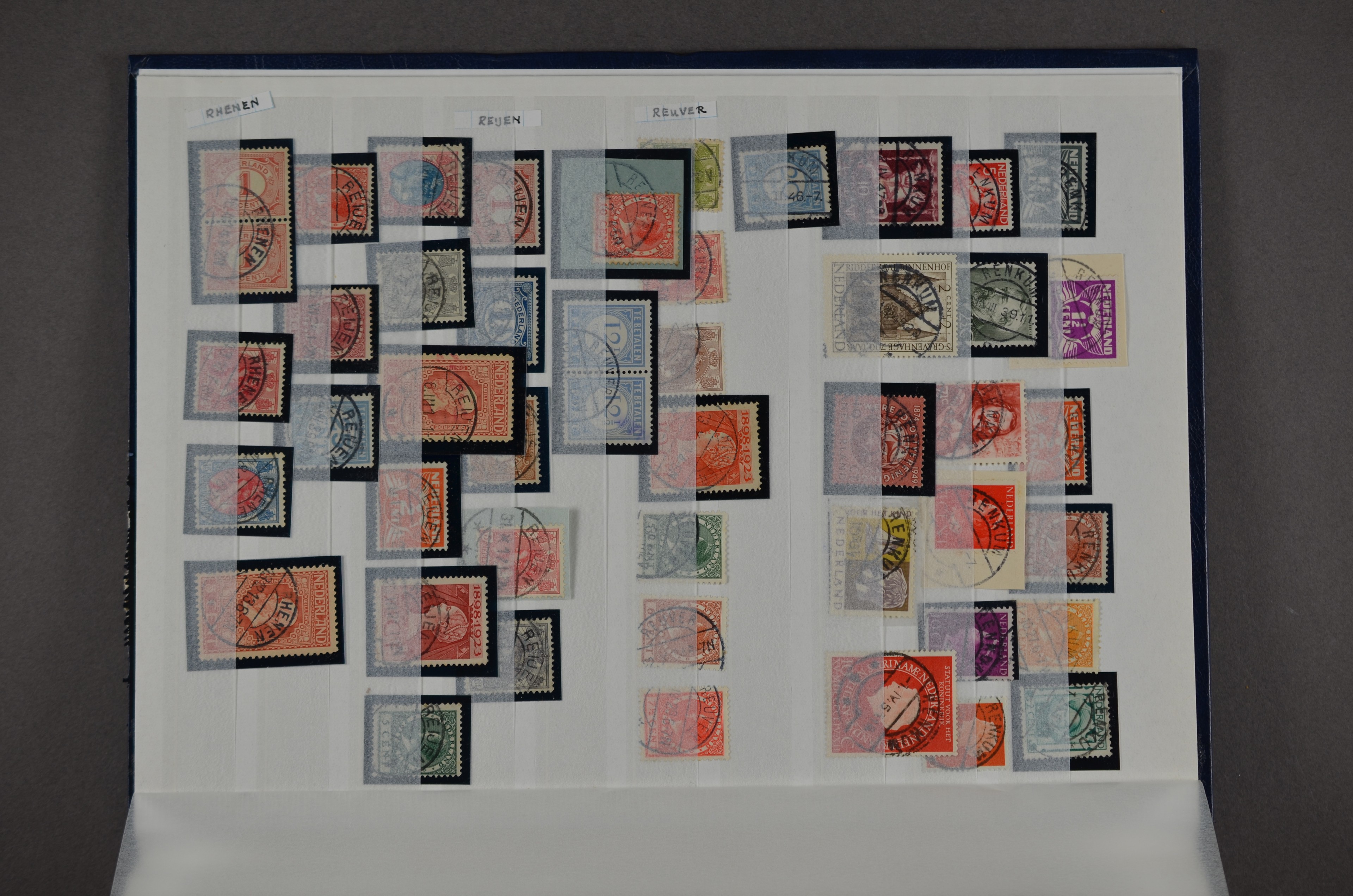 LANGEBALKSTEMPELS, uit Velling type 134/155 op vele, vele honderden losse zegels, merendeels volledige afstempelingen. Het lijken zogenaamd gewone, (semi-)moderne stempels maar in een dergelijke omvang, met zo veel kleine kantoren en in zulke uitzonderlijke kwaliteit nauwelijks meer bijeen te brengen. Voor de liefhebber, op alfabetische volgorde gesorteerd in 3 dikke insteekboeken vol verzamelplezier!