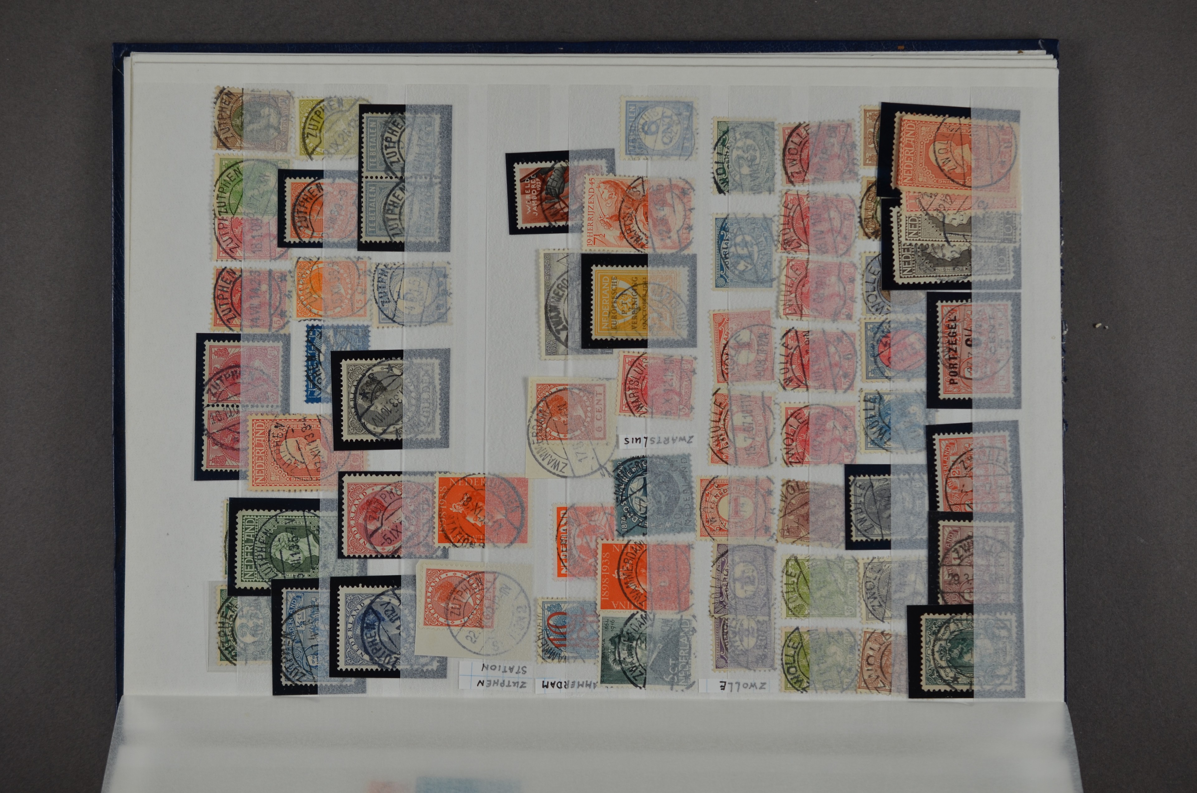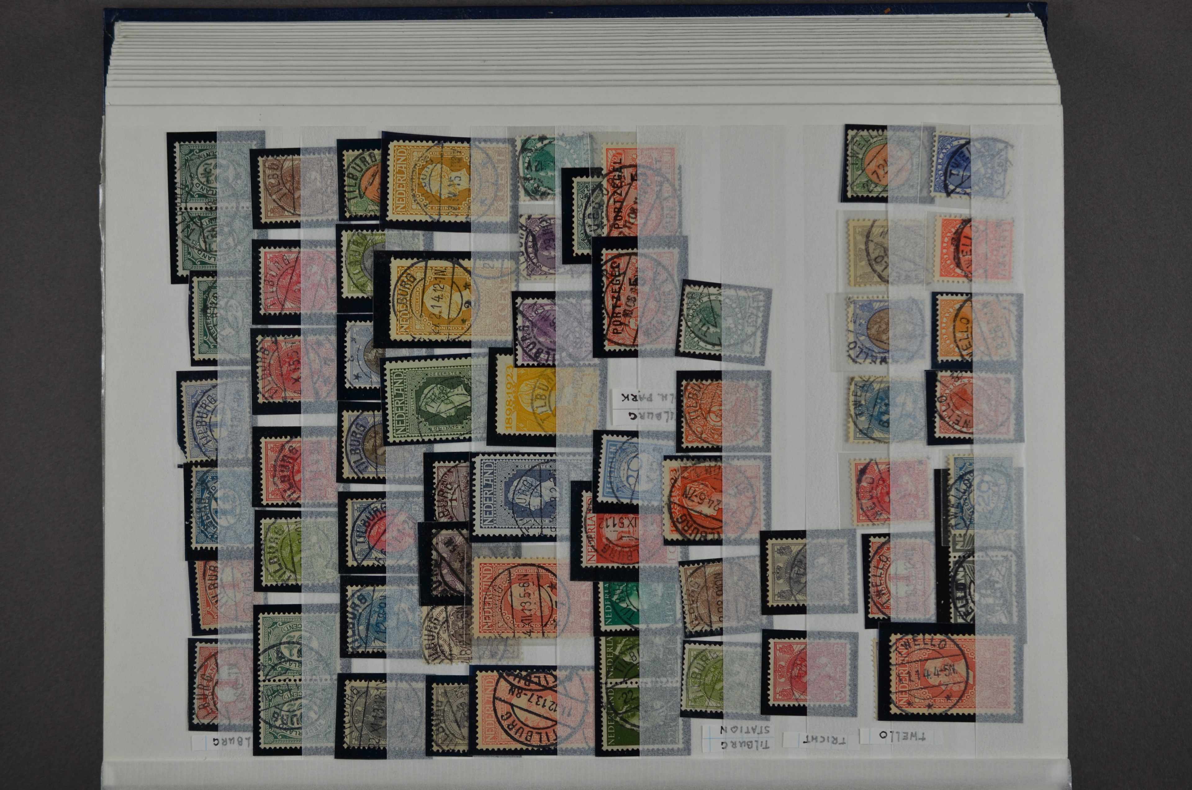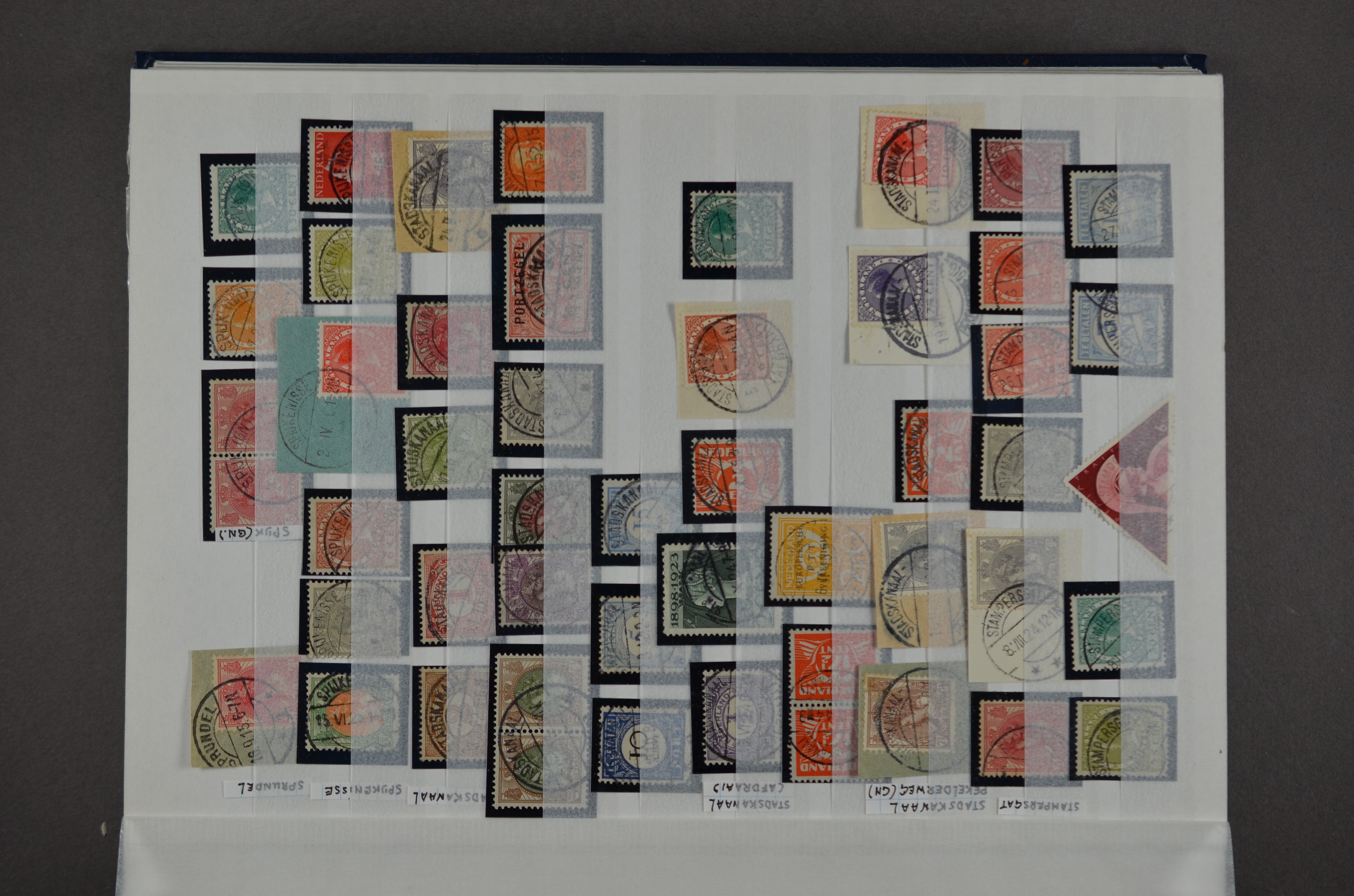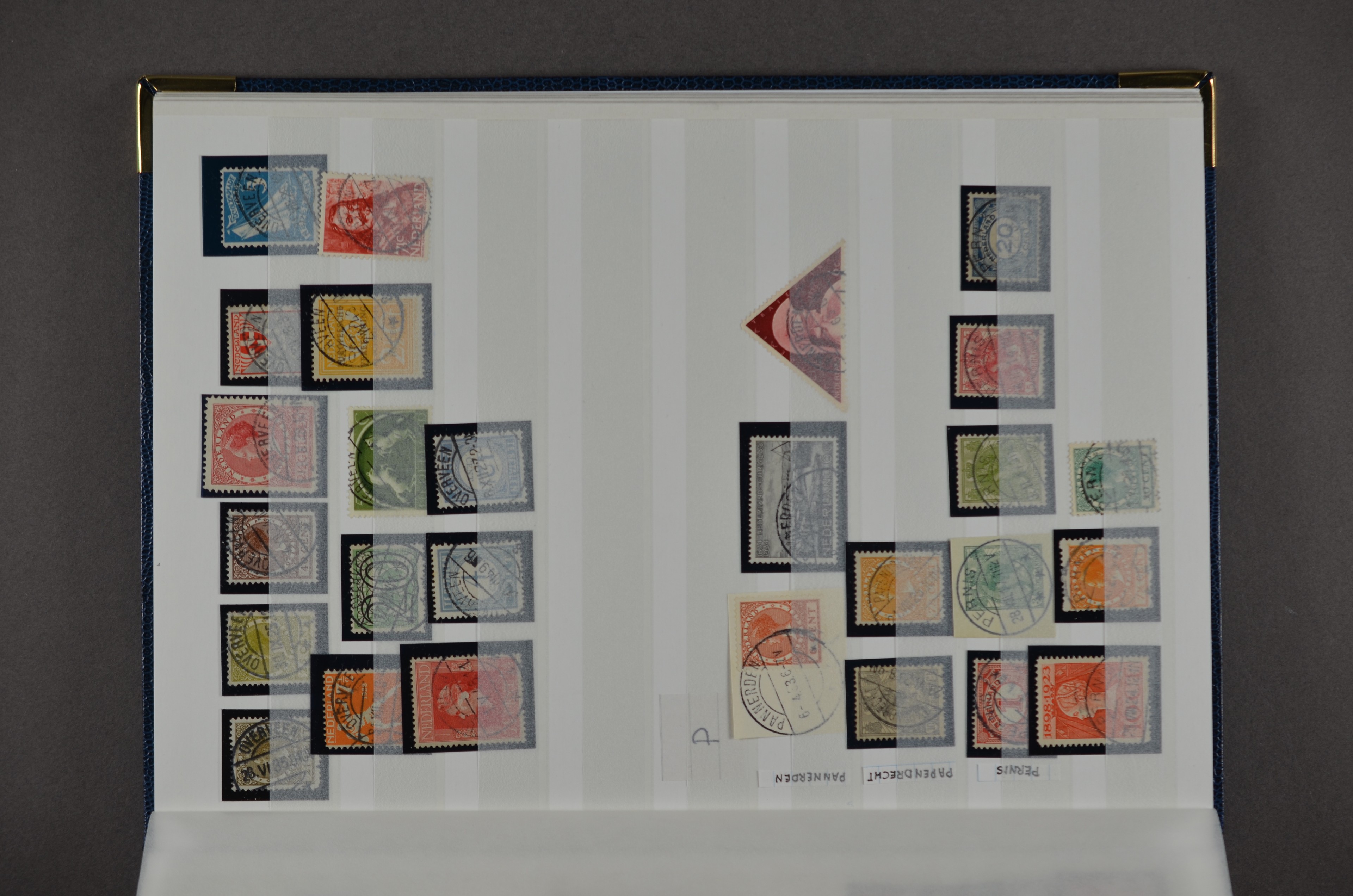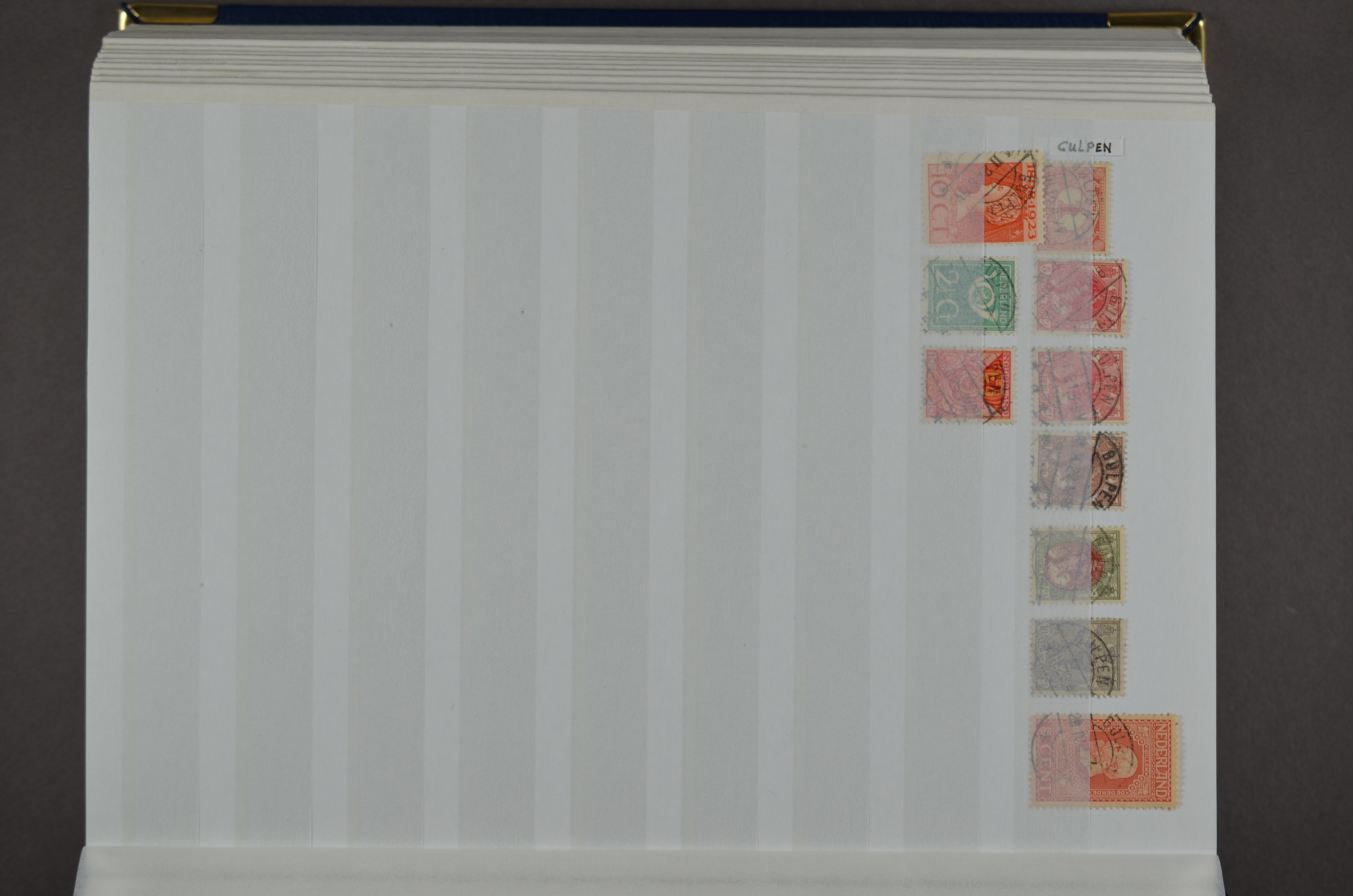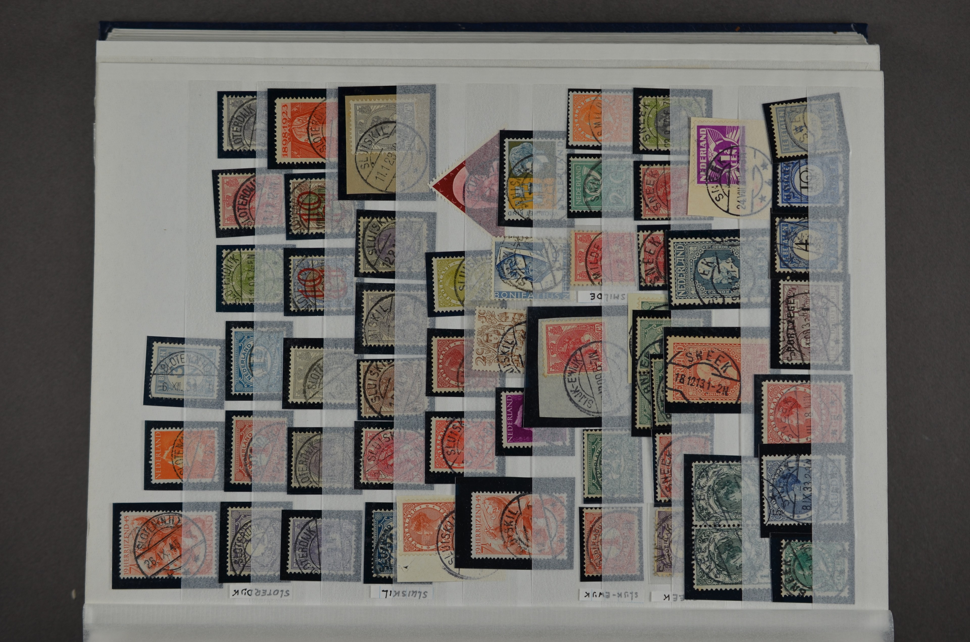 LANGEBALKSTEMPELS, uit Velling type 134/155 op vele, vele honderden losse zegels, merendeels volledige afstempelingen. Het lijken zogenaamd gewone, (semi-)moderne stempels maar in een dergelijke omvang, met zo veel kleine kantoren en in zulke uitzonderlijke kwaliteit nauwelijks meer bijeen te brengen. Voor de liefhebber, op alfabetische volgorde gesorteerd in 3 dikke insteekboeken vol verzamelplezier!
