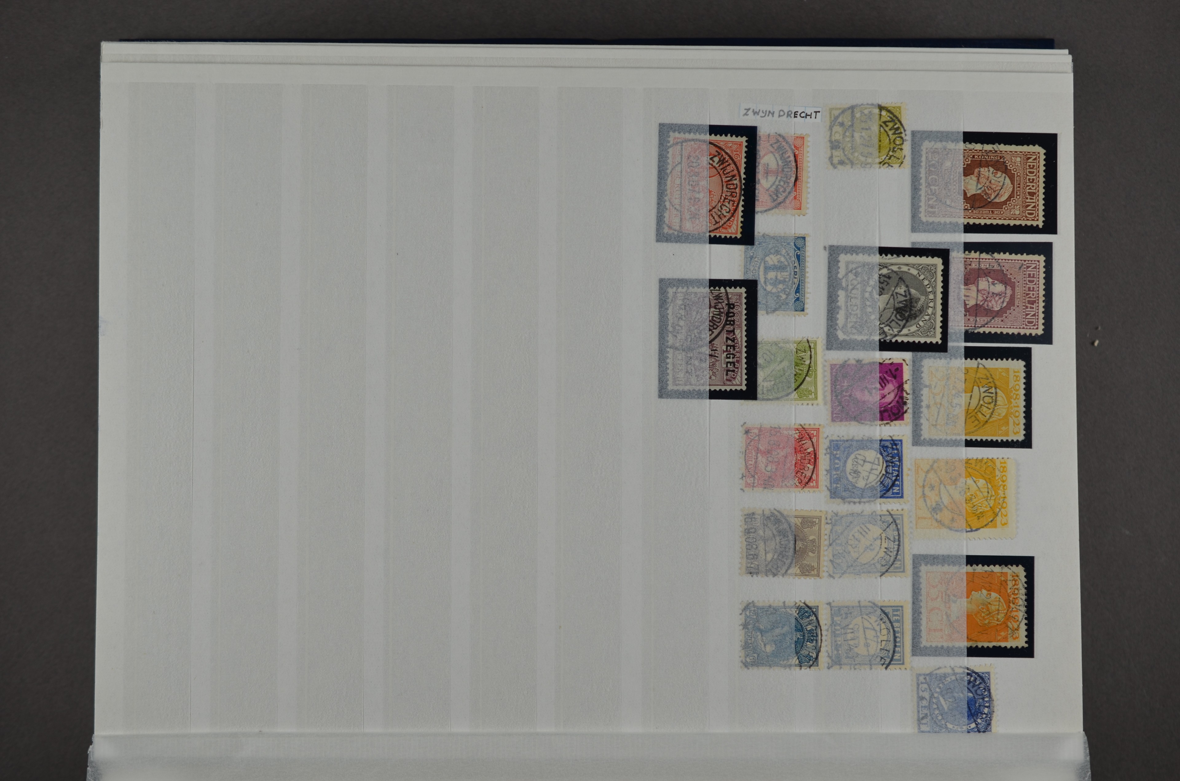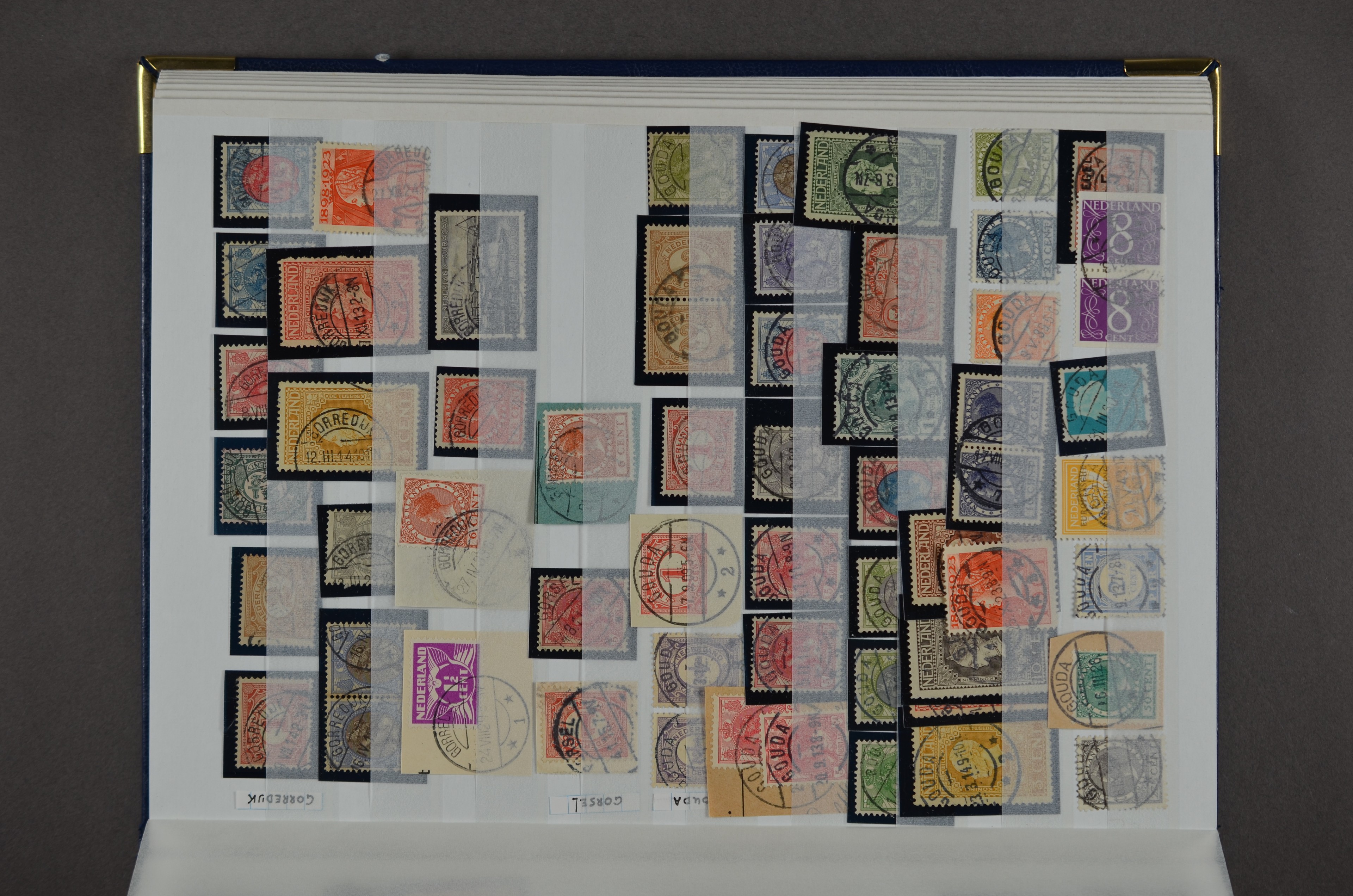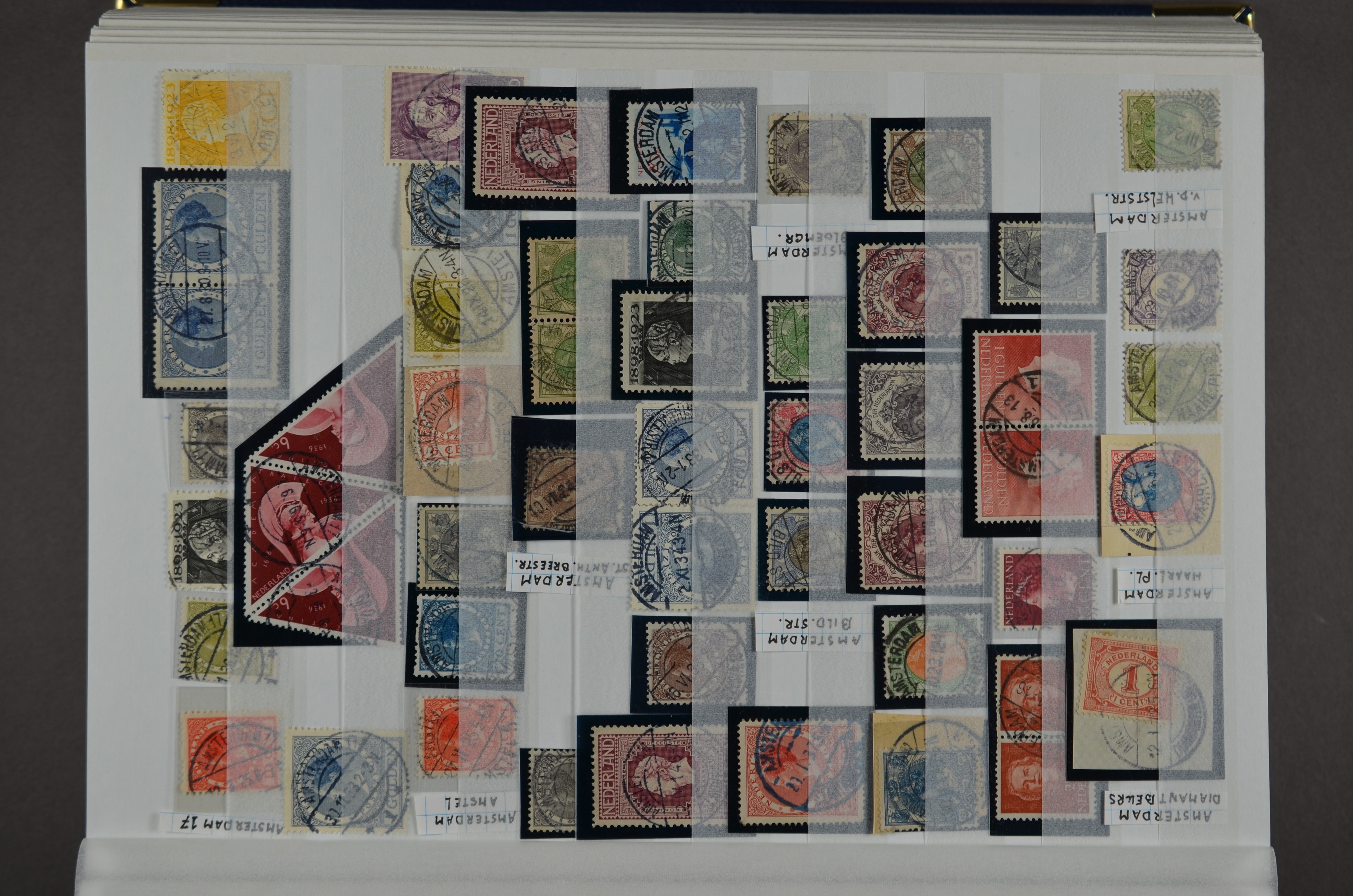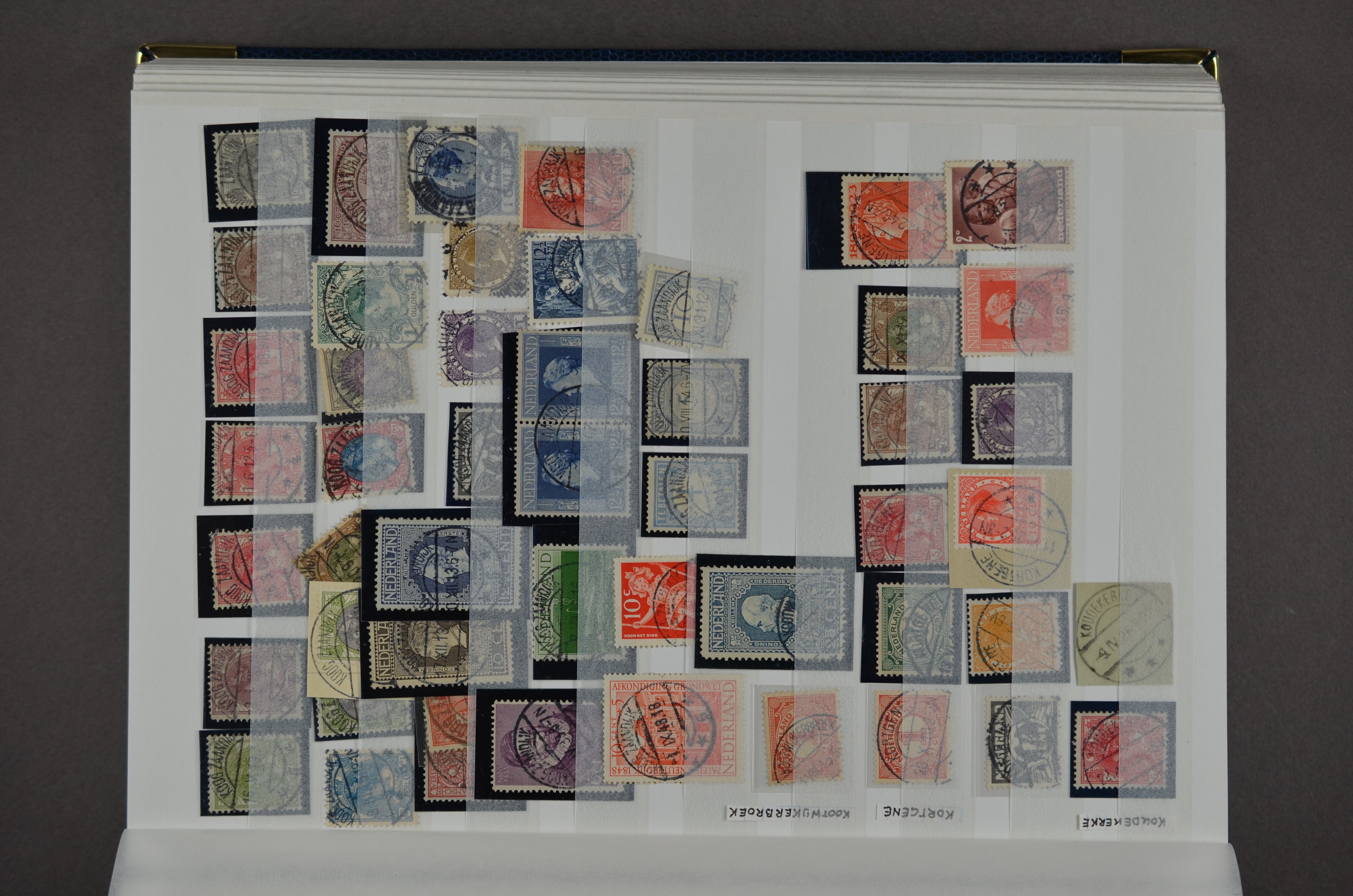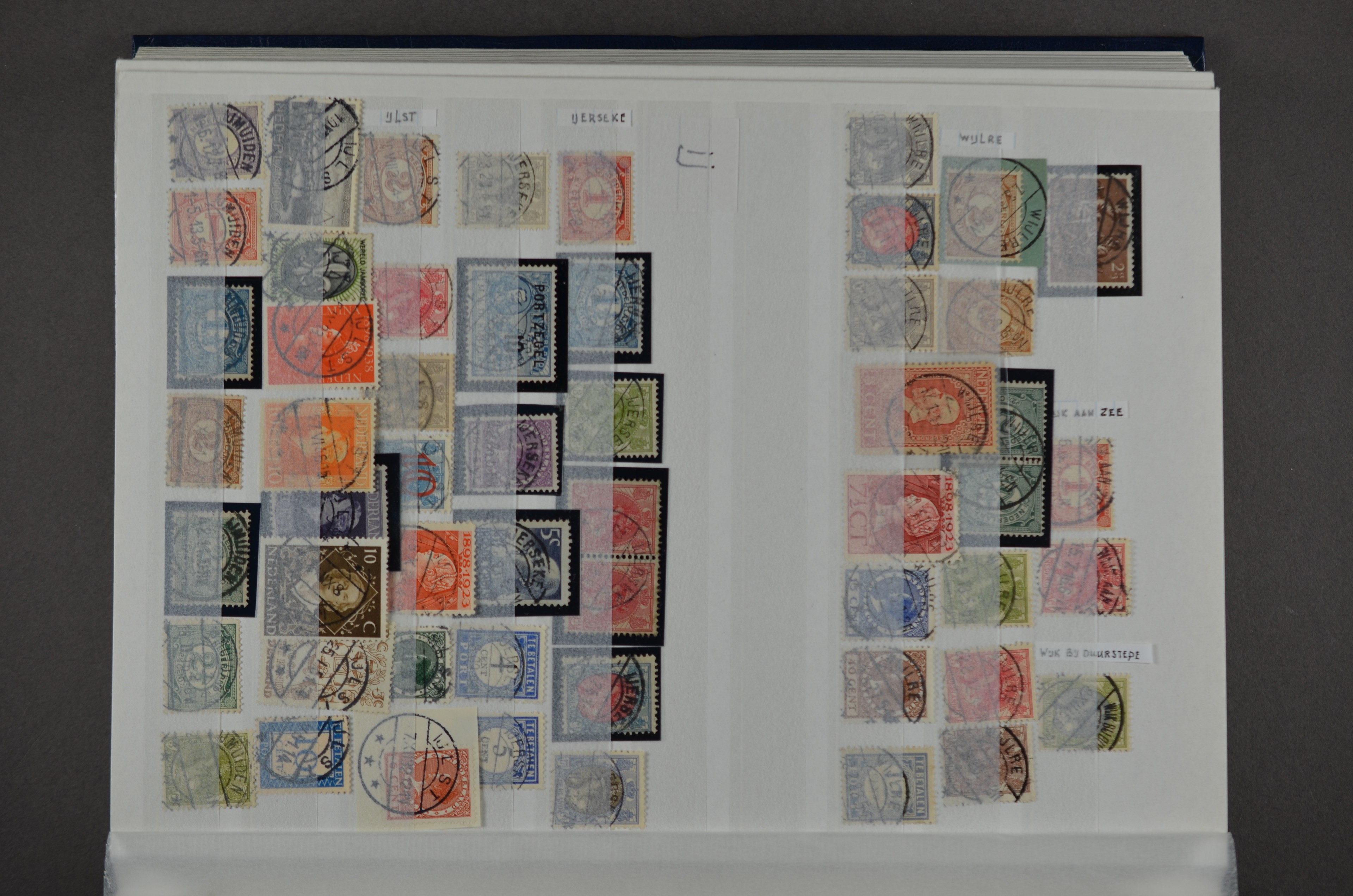 LANGEBALKSTEMPELS, uit Velling type 134/155 op vele, vele honderden losse zegels, merendeels volledige afstempelingen. Het lijken zogenaamd gewone, (semi-)moderne stempels maar in een dergelijke omvang, met zo veel kleine kantoren en in zulke uitzonderlijke kwaliteit nauwelijks meer bijeen te brengen. Voor de liefhebber, op alfabetische volgorde gesorteerd in 3 dikke insteekboeken vol verzamelplezier!
