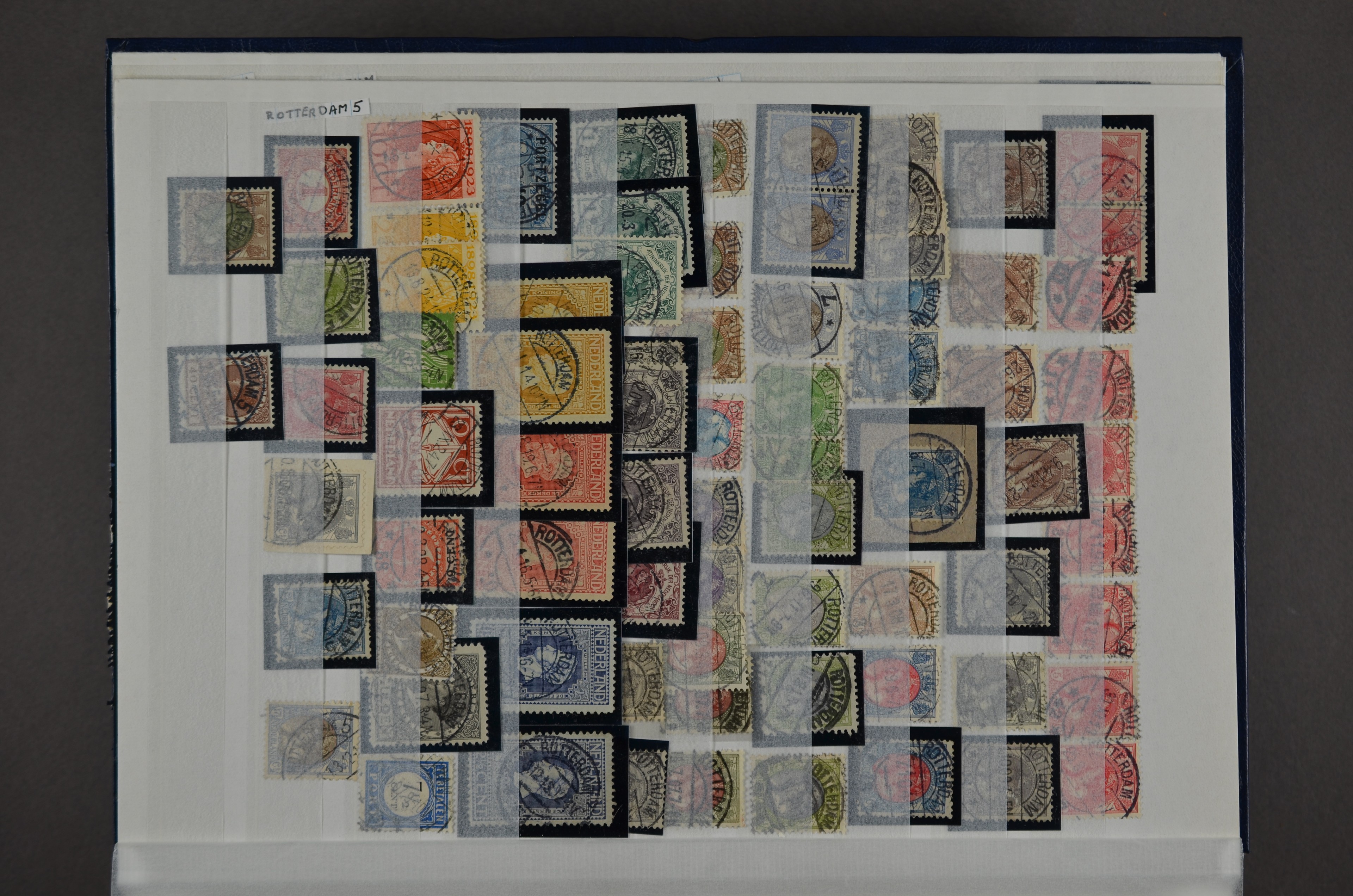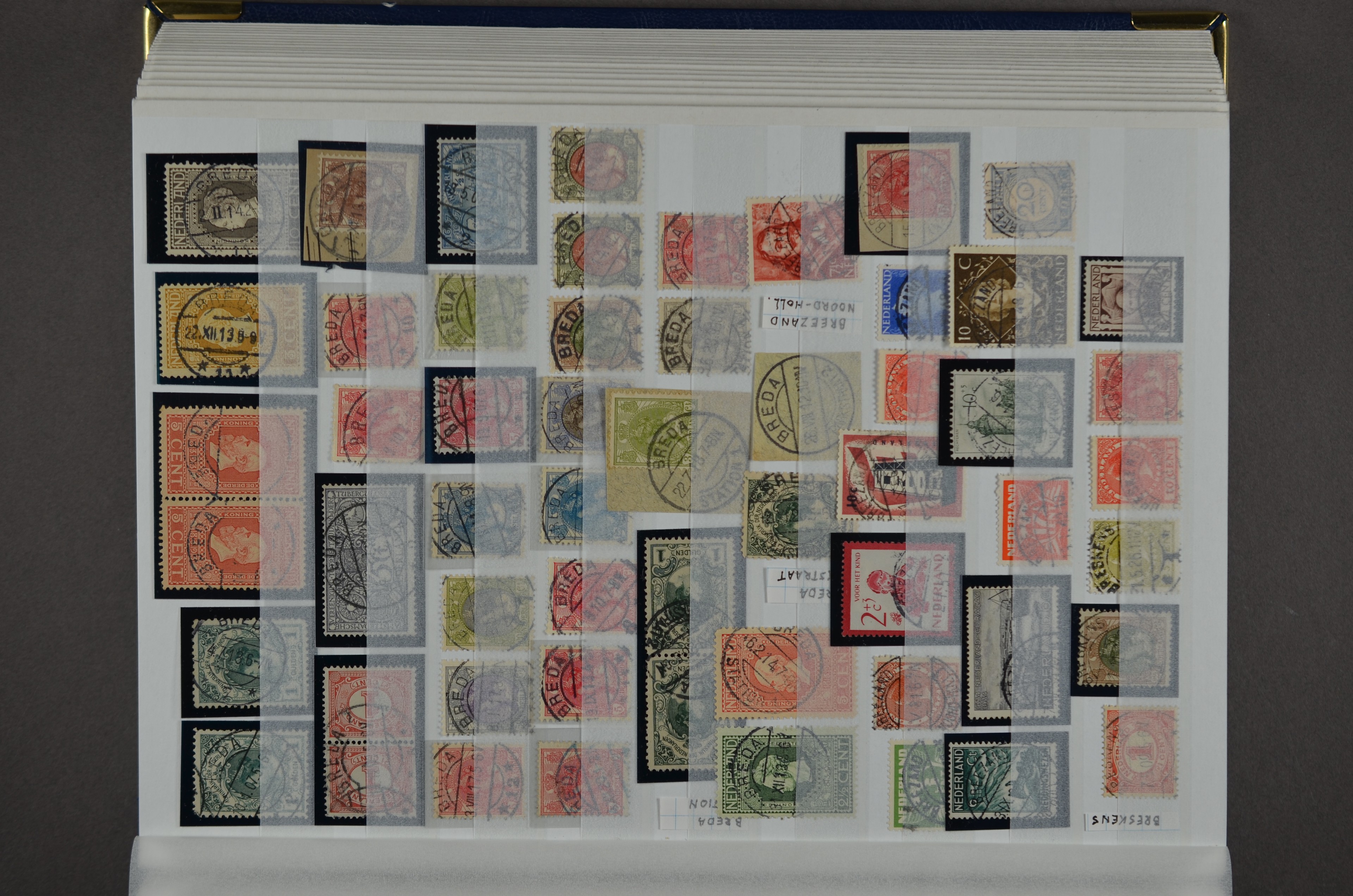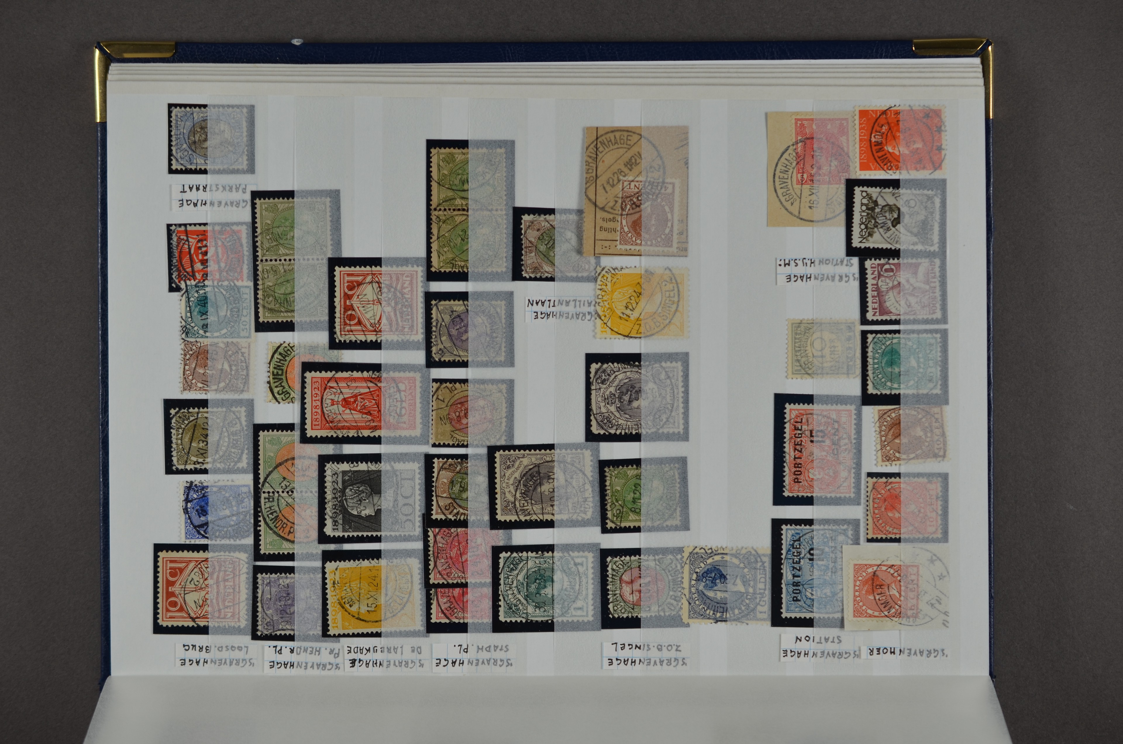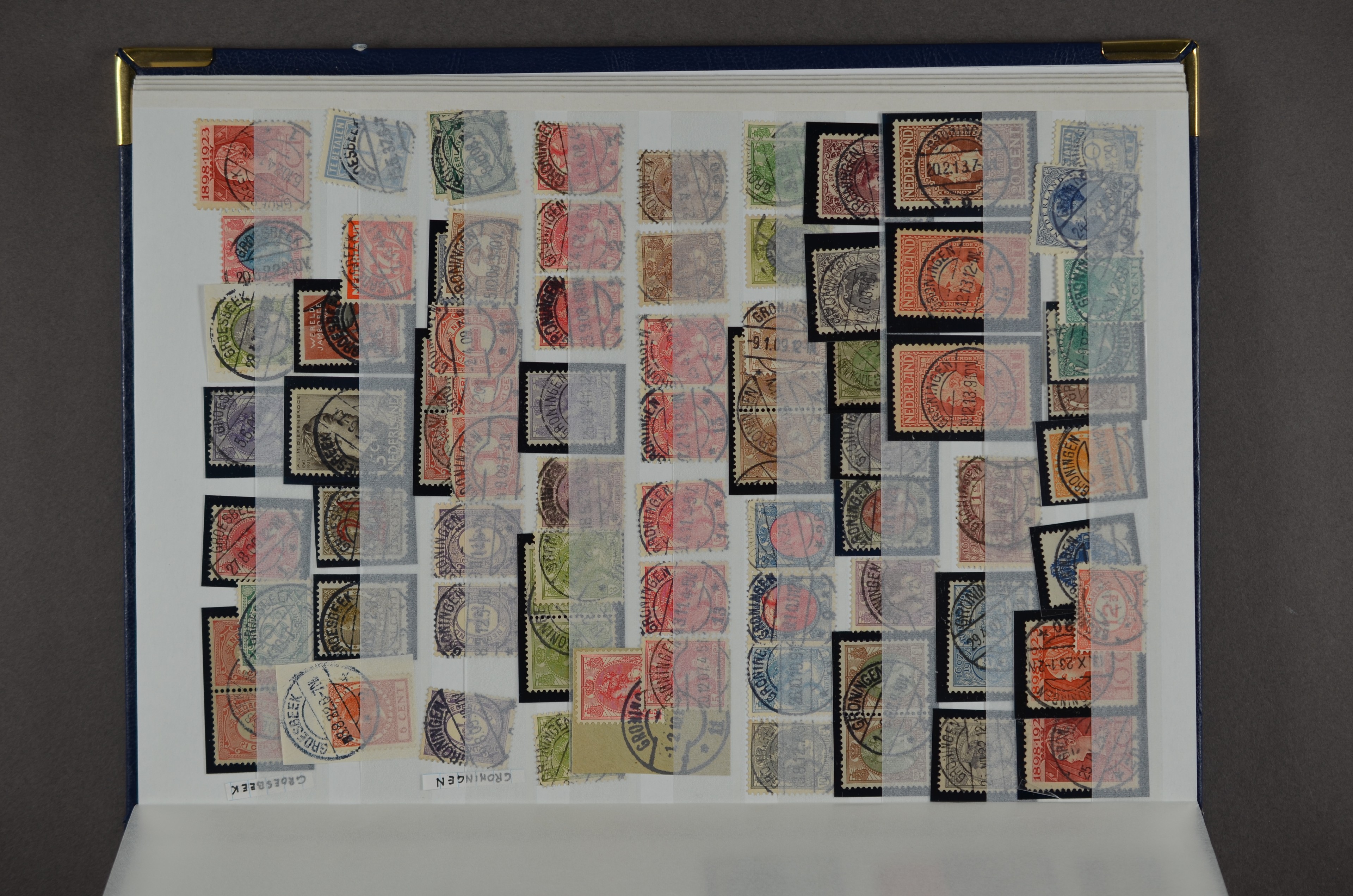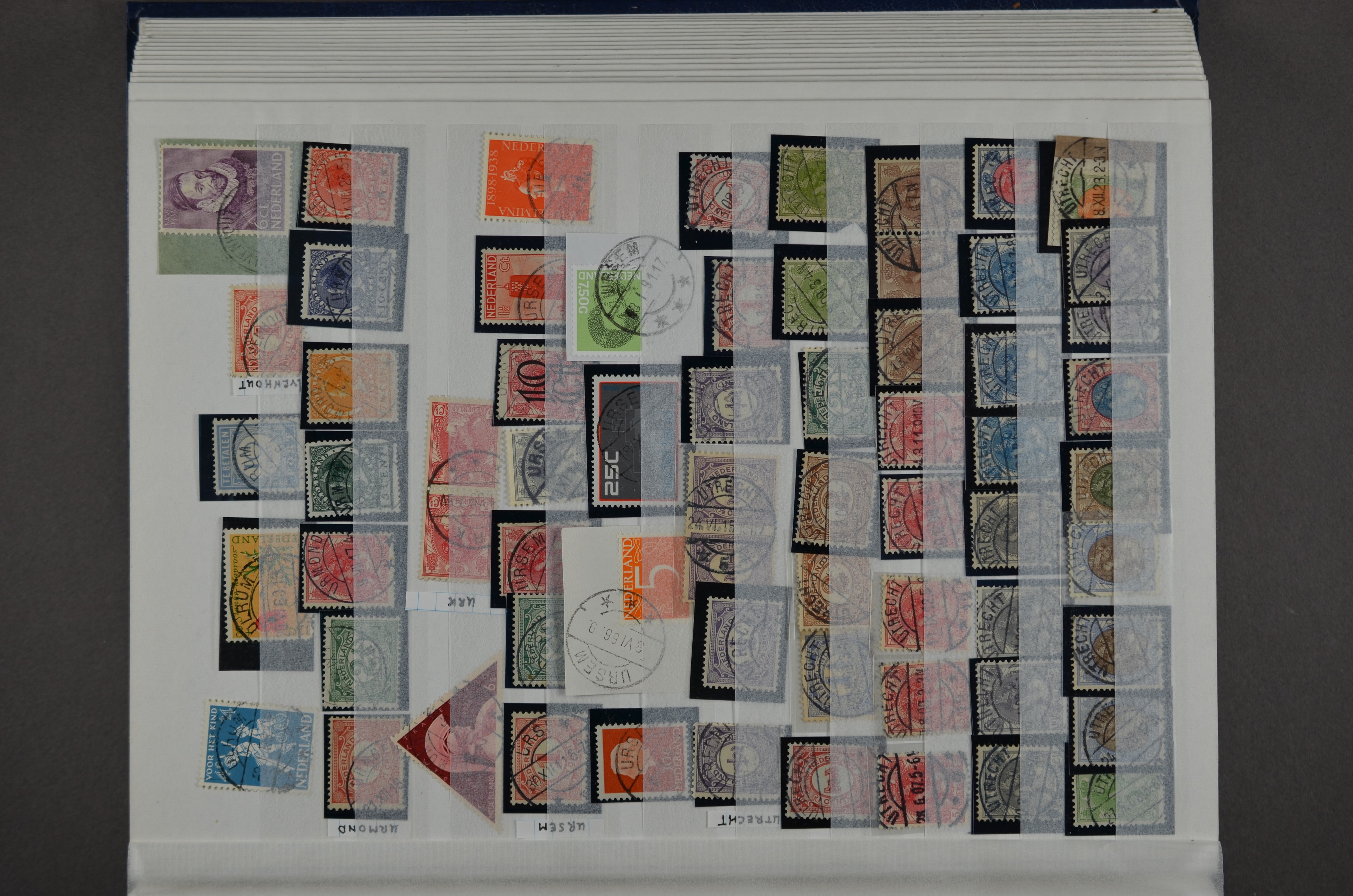 LANGEBALKSTEMPELS, uit Velling type 134/155 op vele, vele honderden losse zegels, merendeels volledige afstempelingen. Het lijken zogenaamd gewone, (semi-)moderne stempels maar in een dergelijke omvang, met zo veel kleine kantoren en in zulke uitzonderlijke kwaliteit nauwelijks meer bijeen te brengen. Voor de liefhebber, op alfabetische volgorde gesorteerd in 3 dikke insteekboeken vol verzamelplezier!