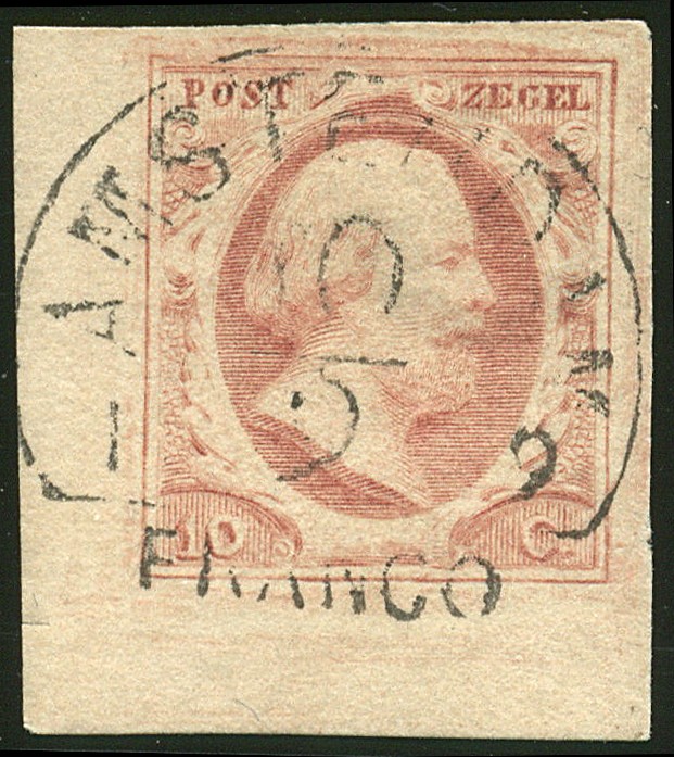 2i-Pl.V-21. Zeer breed gerand schitterend, licht gestempeld hoekstuk met watermerklijn. Luxe!