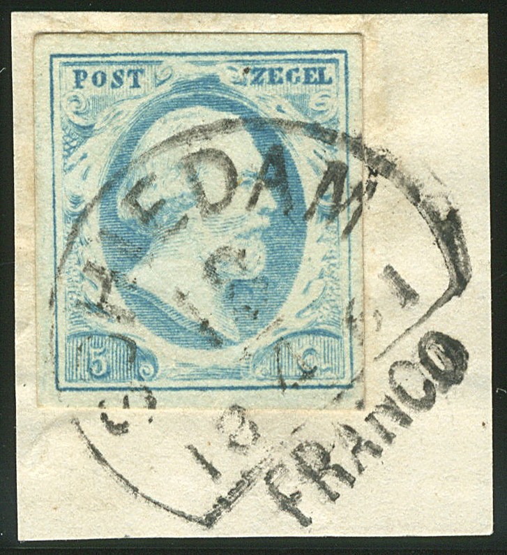 SCHIEDAM C groot (EY.75) op 5 cent nr. 1n-Pl.IV-89. Prachtex. op briefstukje waarop volledige afst. met late daum 18-4-1861
