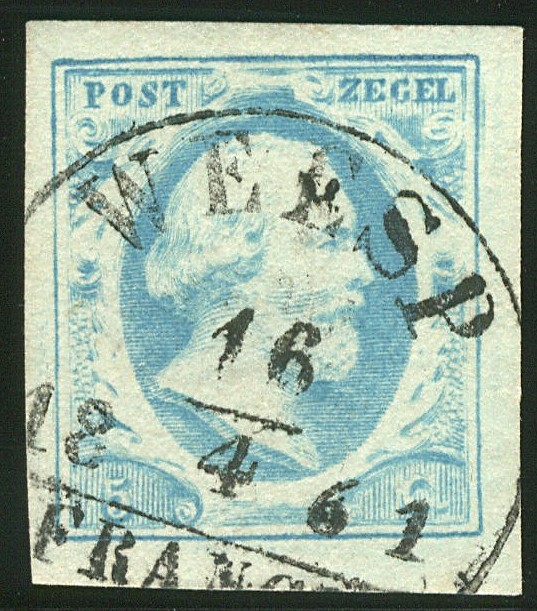 WEESP B (EY.75) op 5 cent nr. 1n-Pl.IV-100. Breed gerand prachtex. met ideale afst. met late datum 16-4-1861
