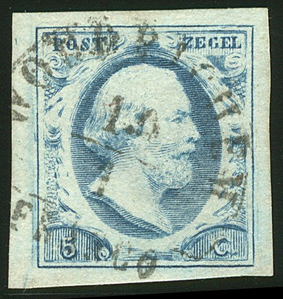 WOUDRICHEM A (EY.900) op 5 cent nr. 1f-Pl.II-56. Luxe zegel met volledige, als gewoonlijk wat licht gevlekte, zeldzame afst.