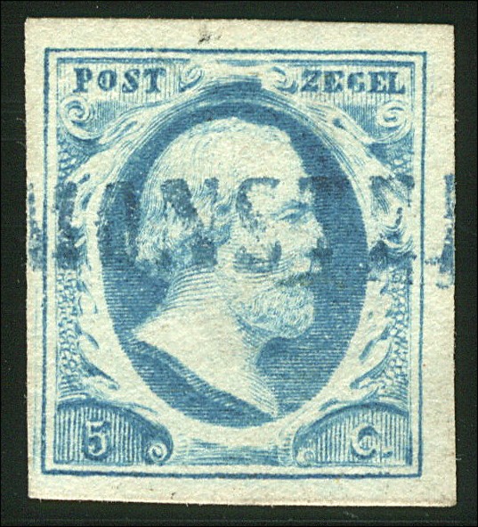 MONSTER in blauw (EY.250) op 5 cent nr. 1q-Pl.VI-52. Prachtex. met bijna volledige, rechtopstaande afst.