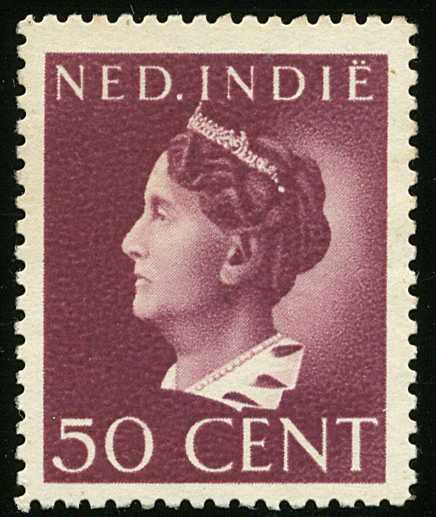 PC.244b, 245/48, Wilhemina type Van Konijnenburg, kleurproeven van de 50 cent in donkerlila, 60 en 80 cent, 1 en 2 gulden, getand 13¼, ongegomd papier, alle prachtex.