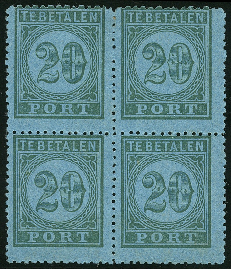 P2/3C, ongebruikte prachtex. (gom 15 cent ingedroogd) en P4A in ongebruikt vrijwel prachtblok van vier zonder gom. [? 560]