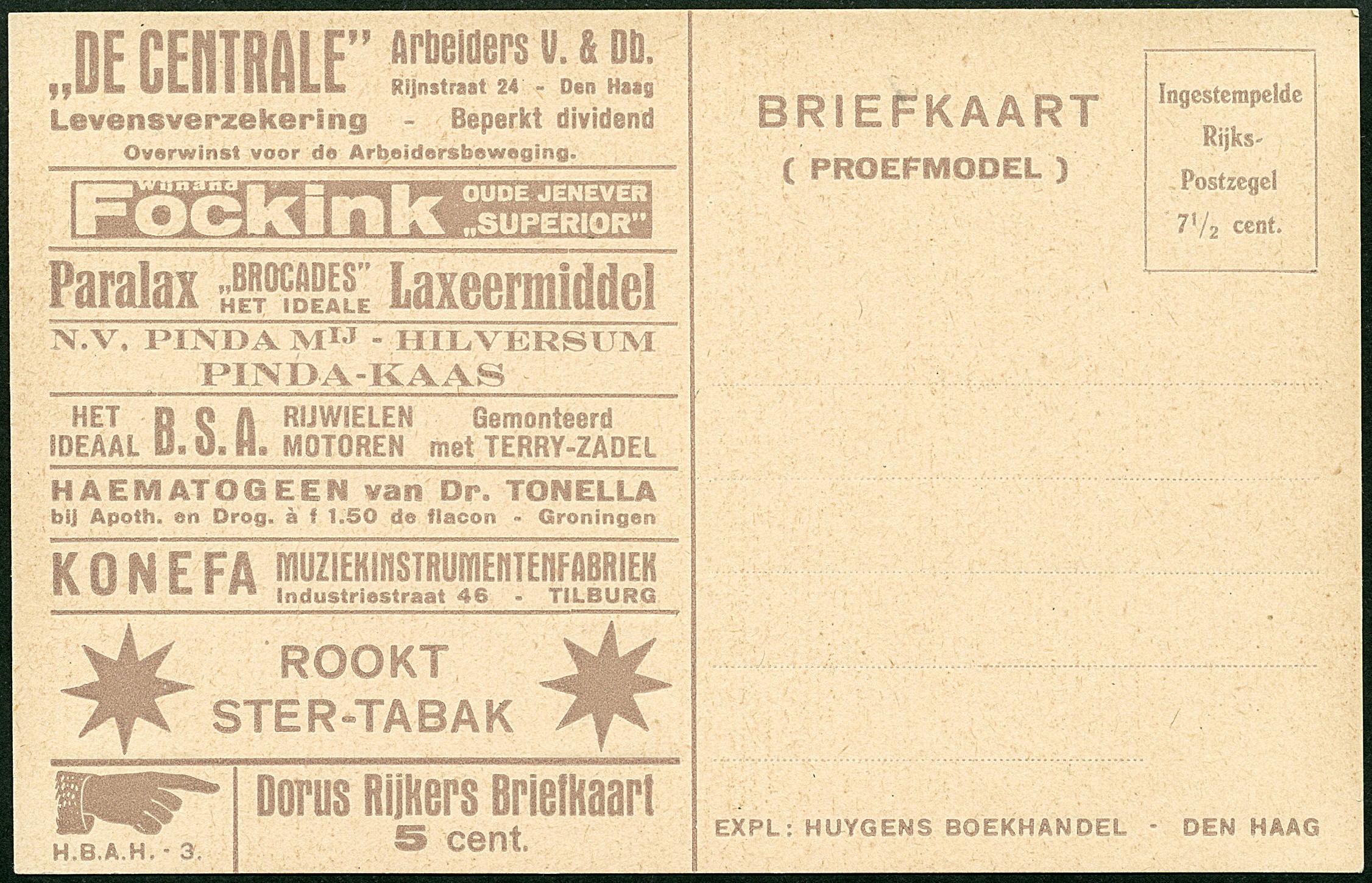 Particulier bedrukte bk. Dorus Rijkers proefmodel DR. Niet gecatalogiseerde prachtkaart