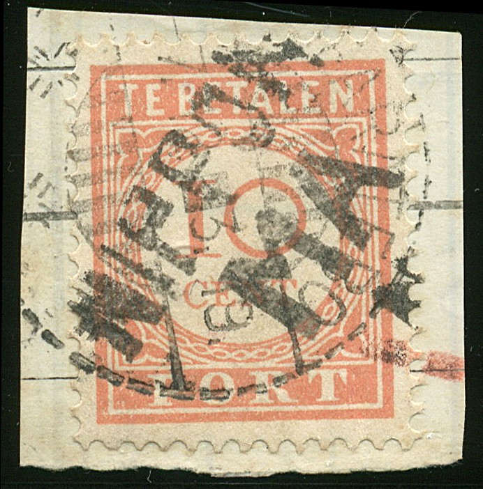 Sumatra. Djambi. 10 Cent postage due with black overprint NIPPON/MA no. 431z-82a on piece, cancelled Moearatebo