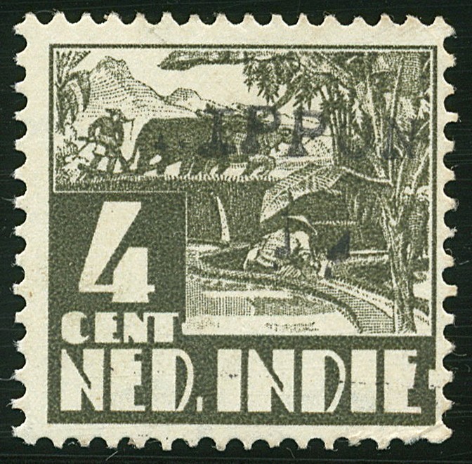 Sumatra. Djambi. 4 Cent Kreisler with black overprint NIPPON/MA no. 433z-20b, unused. Signed Boekema