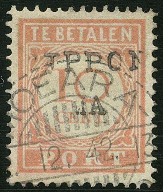 Sumatra. Djambi. 10 Cent postage due with black overprint NIPPON/MA no. 433z-82a, cancelled Moeara-/Boengo