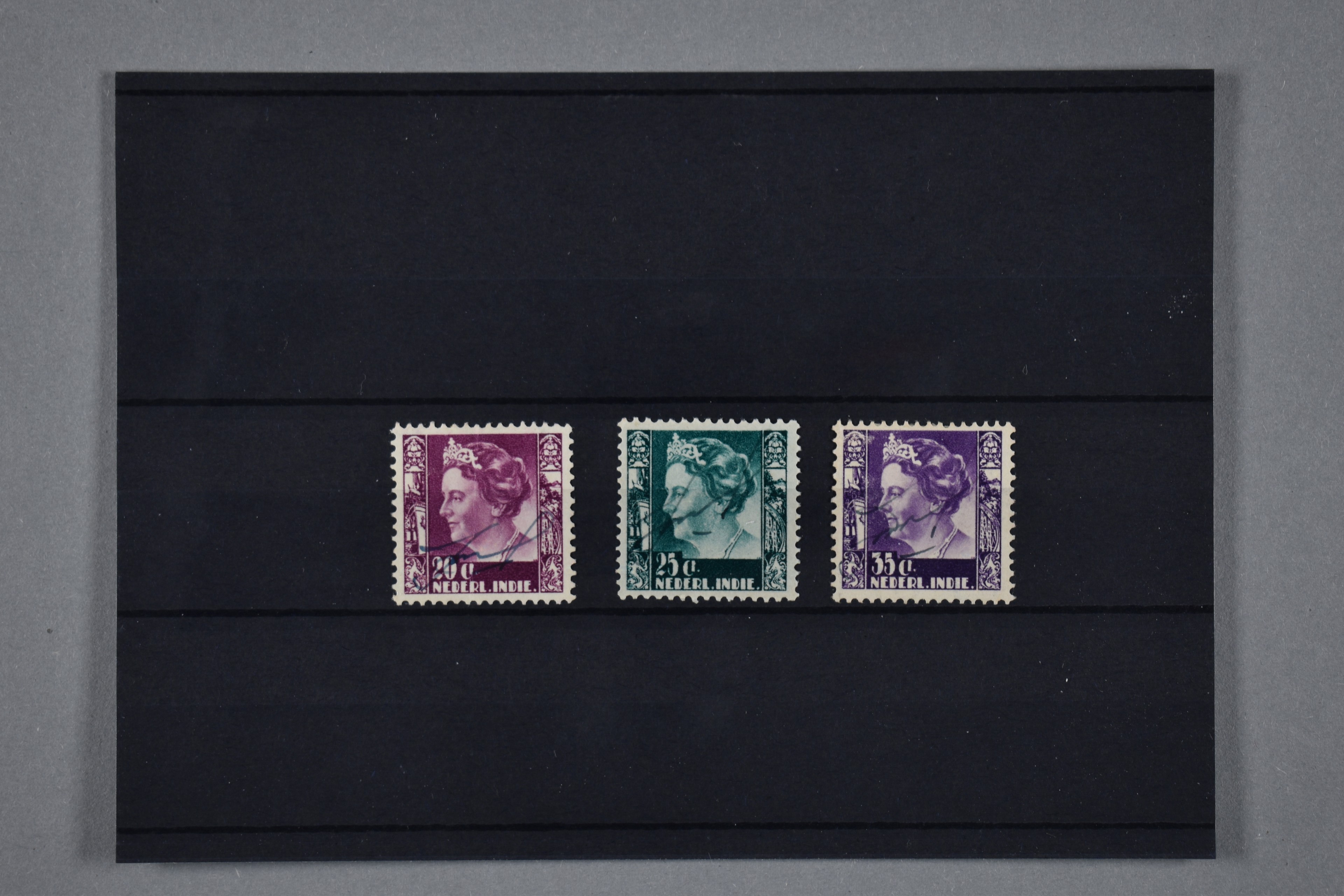 Sumatra. Palembang. Signature of postmaster Madjid in bluish black ink, used locally in Pagaralam, on 20, 25 and 35 cent Kreisler nos. 513z-27b, 28a and 31b, all unused