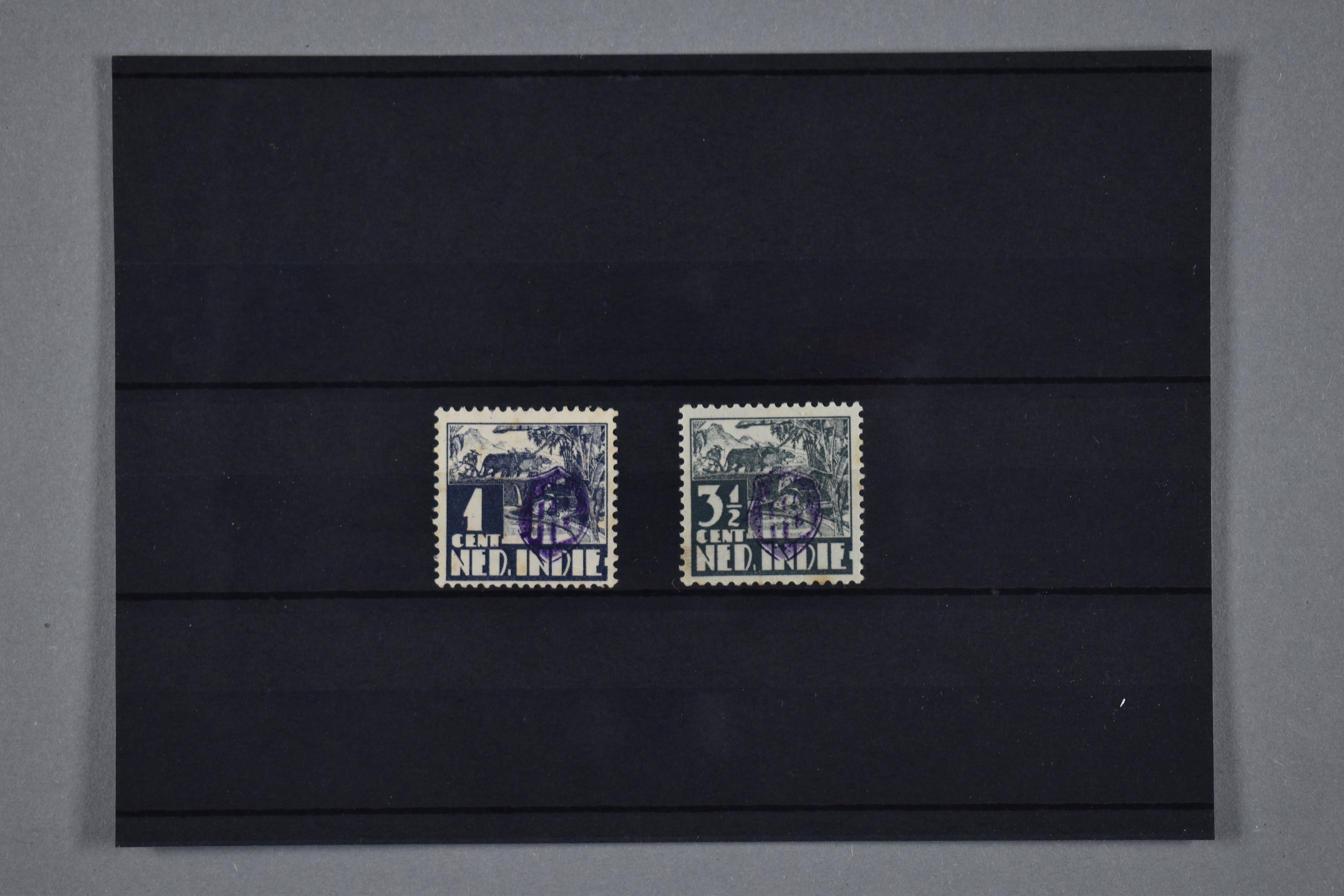 Sumatra. Palembang. Signet ring overprint IPL of postmaster I.P. Lengkong in violet on 1 and 3½ cent Kreisler nos. 522v-15b and 19a (brown spot), unused. 1 Cent signed Boekema