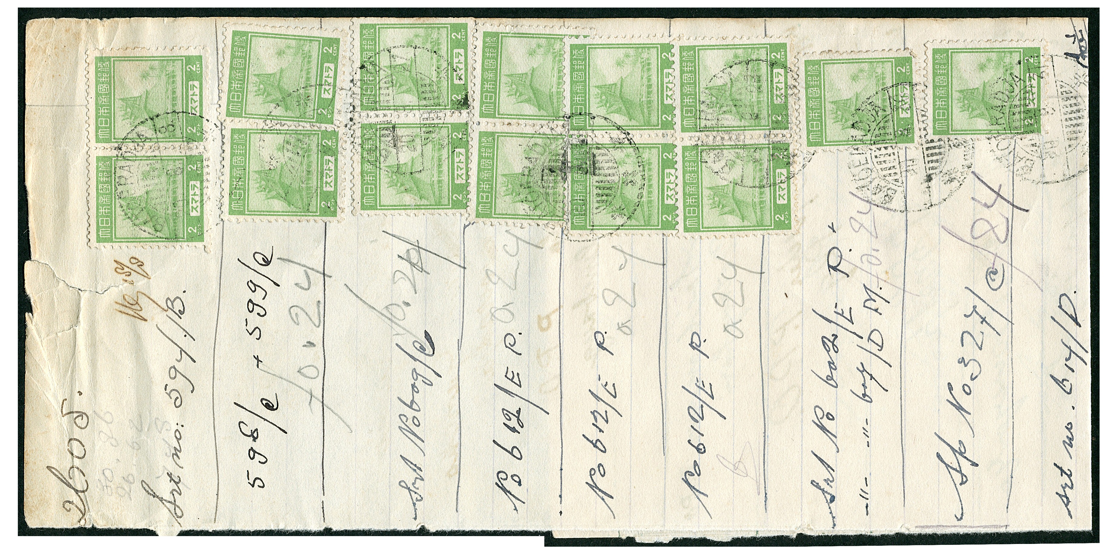 Sumatra. Palembang. 2 Cent definitive issue for Sumatra, 16 stamps on a provisional form for registered items cancelled Batoeradja between 20.8.18 and 20.9.10 (the fee was 2 cent per letter)